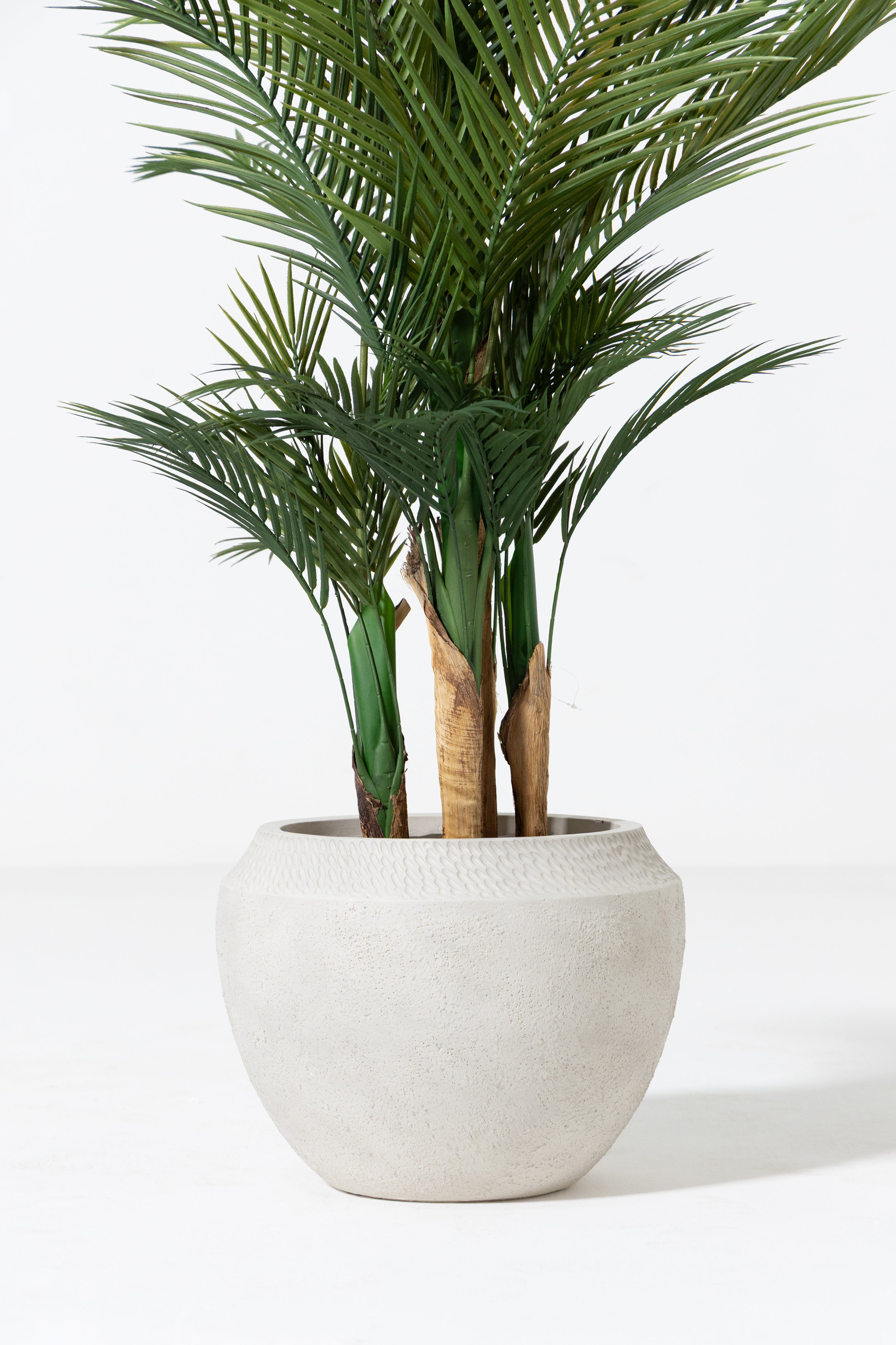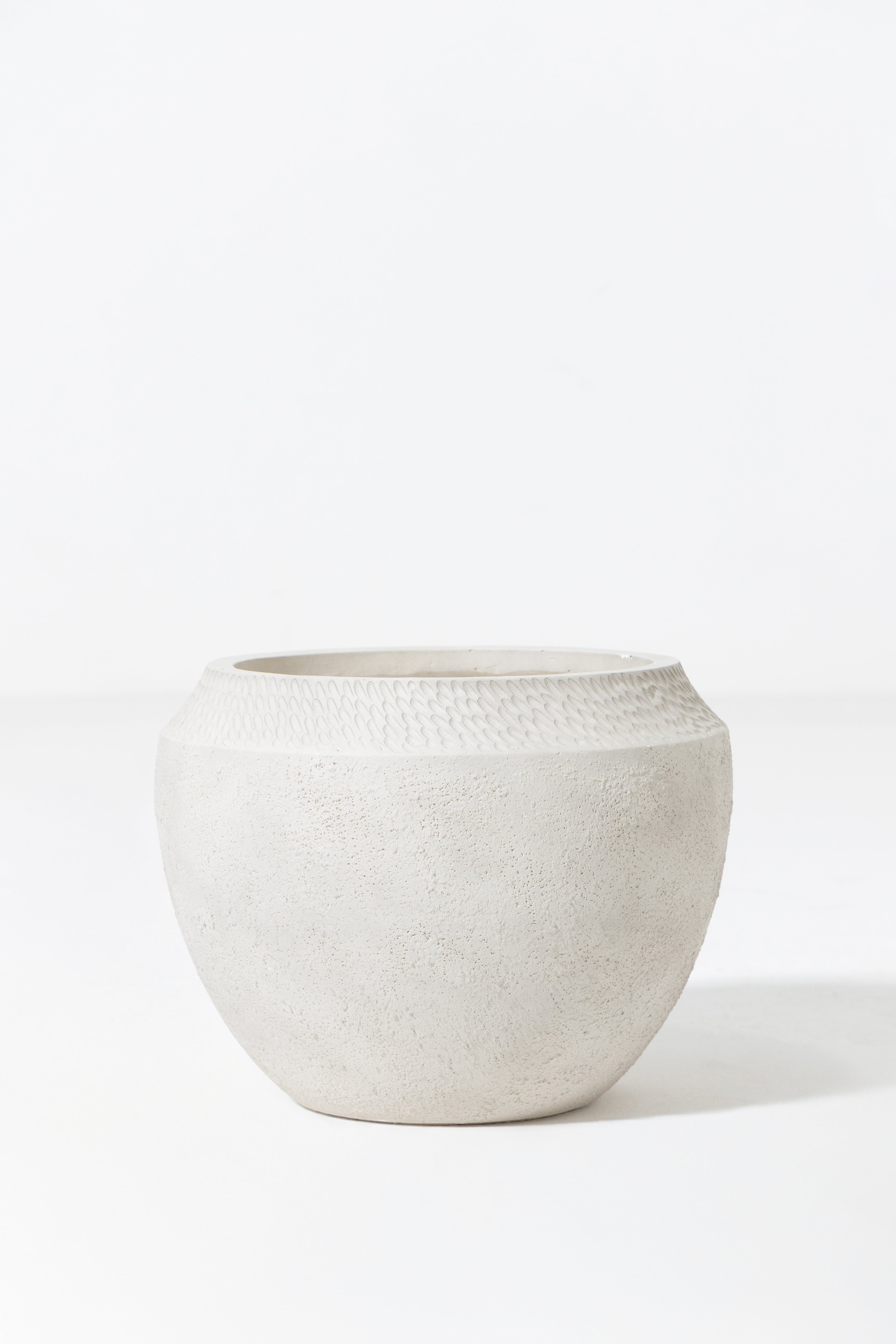 Finished in an off white textured surface, this fiberglass pot brings subtle detail and sculptural softness to modern interiors. The gently rounded form is complemented by a refined rim texture, adding depth while maintaining a calm and balanced presence. Lightweight yet durable, it offers effortless versatility for styling greenery in living spaces, entryways, or curated corners. Designed to blend seamlessly with neutral palettes, it enhances your space with quiet elegance and timeless appeal.