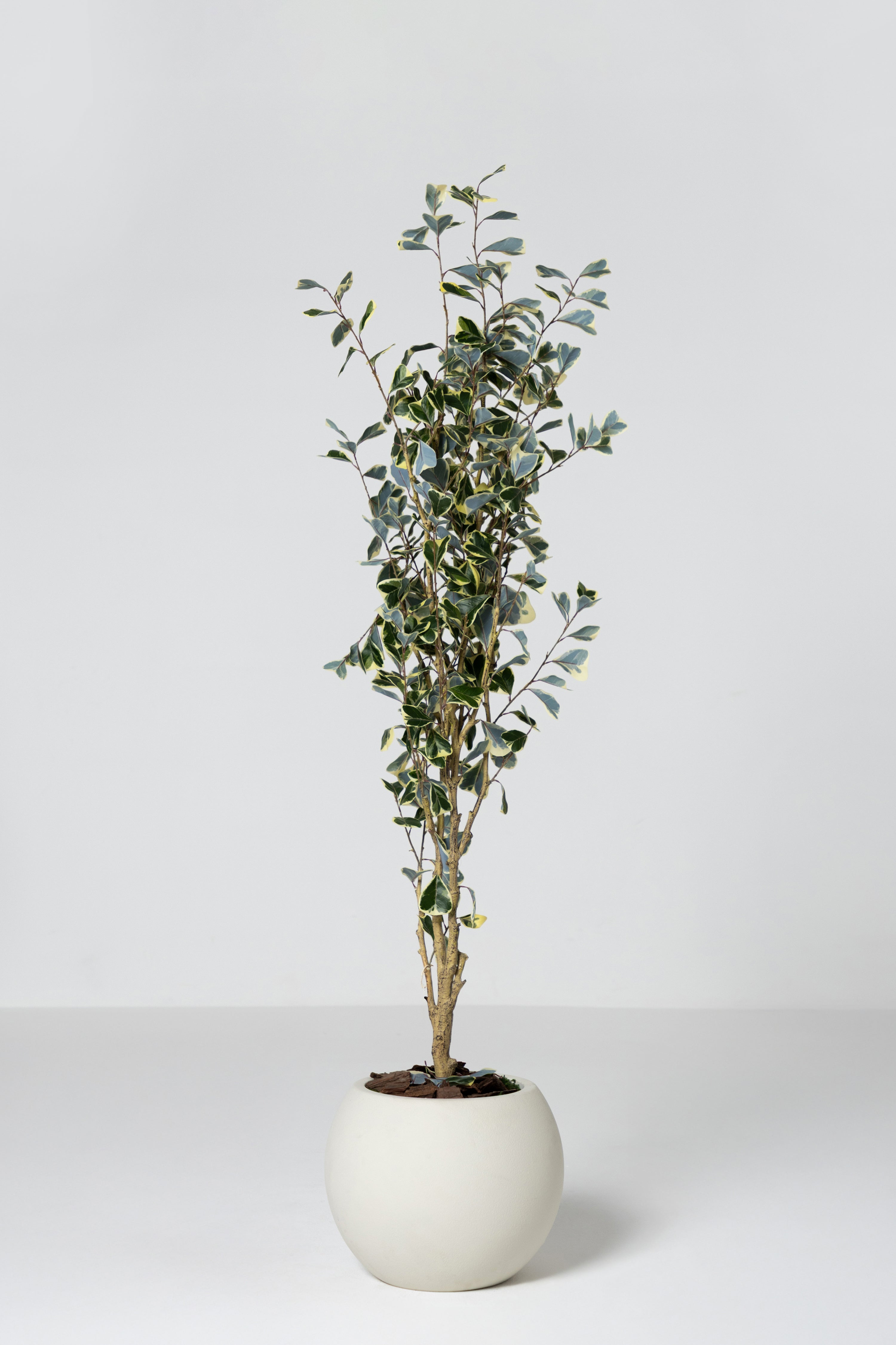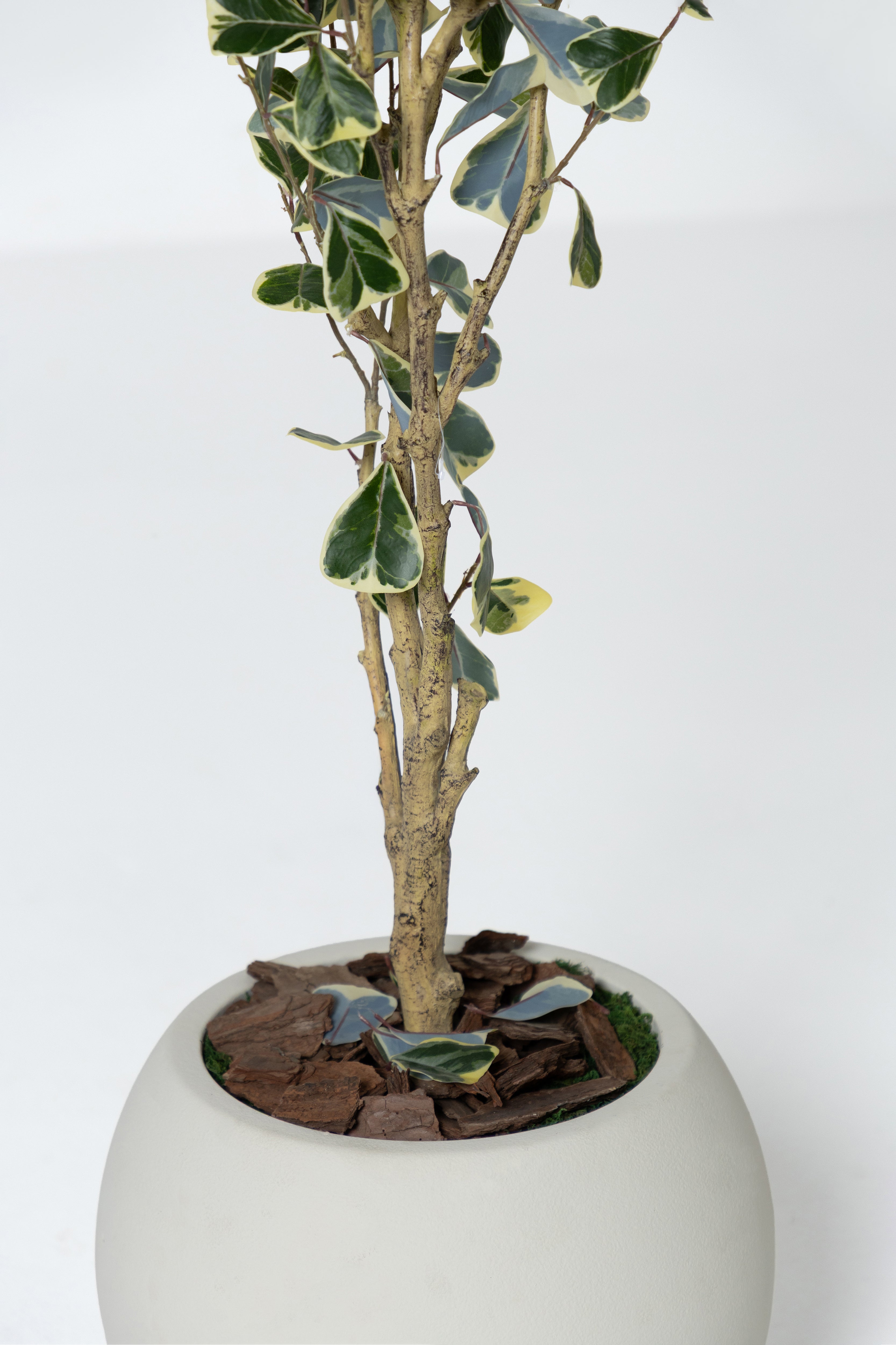 Designed to bring effortless greenery to modern interiors. Featuring distinctive heart-shaped leaves in lush green with creamy white variegated edges, this lifelike faux plant mimics the texture and shape of real foliage with stunning precision. The slender, sculptural branches rise gracefully from a natural-looking trunk, set in a minimalist matte white round pot that complements any decor style—be it Scandinavian, contemporary, or boho-chic. Perfect for brightening up corners, entryways, or office spaces, it gives you the beauty of nature without the maintenance. You’re not just decorating—you’re curating serenity.