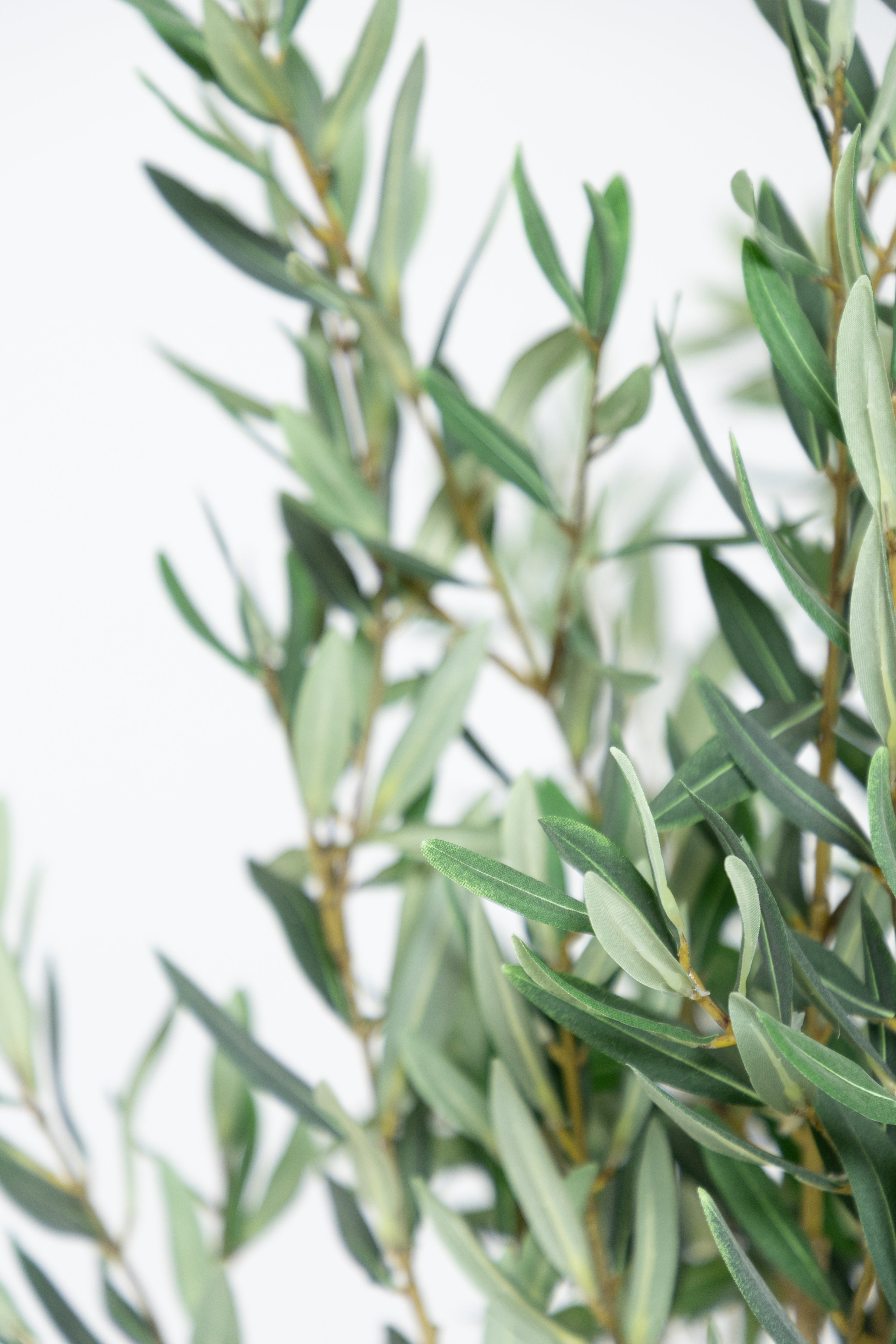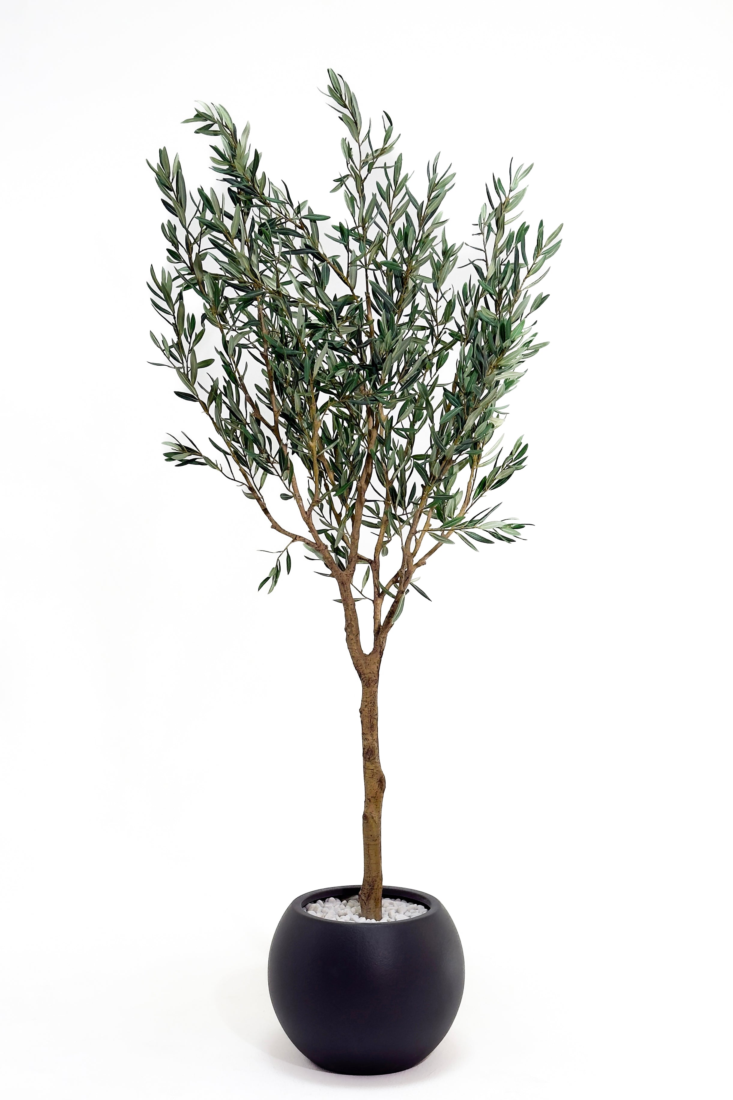A stunning centerpiece that brings the tranquility of the Mediterranean to your living space. This lifelike faux olive tree, with its realistic bark texture and naturalistic shape, features a lush canopy of sage green leaves, making it a perfect, low-maintenance alternative to a real plant. The deep-hued pot with a polished stone finish provides a striking contrast, allowing you to easily place this beautiful olive topiary in any room to create a sophisticated, nature-inspired focal point. Imagine the timeless elegance and warmth this artificial olive tree will add to your entryway, living room, or office, effortlessly enhancing your decor and inspiring a sense of calm.