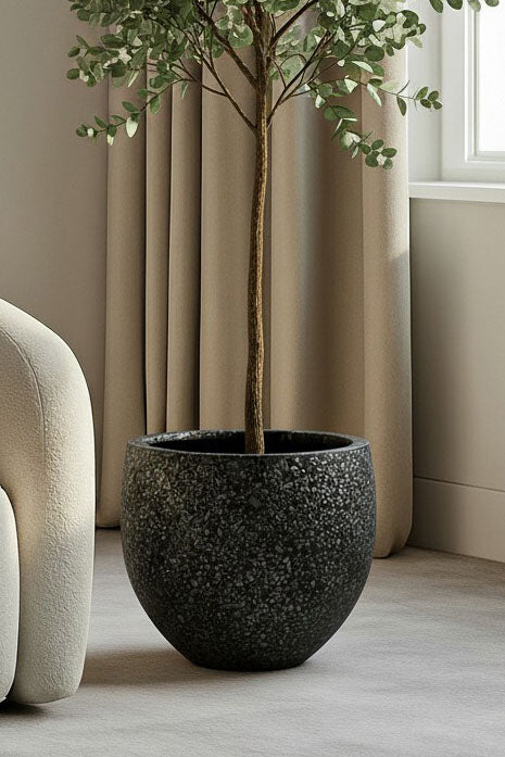 Curate your space with a piece that speaks to your taste for modern refinement and tactile detail. This terrazzo concrete pot features a deep black base enriched with scattered stone speckles, creating a striking contrast that feels both bold and timeless. Its smooth, rounded shape introduces balance, while the textured surface adds visual intrigue, making it perfect for showcasing lush foliage, sculptural succulents or dried arrangements. As you place it in your home, you become the designer choosing a vessel that blends durability with artistic allure, elevating shelves, consoles or window ledges with effortless sophistication. Ideal for contemporary, minimalist or monochrome interiors, it brings grounded elegance to every corner.