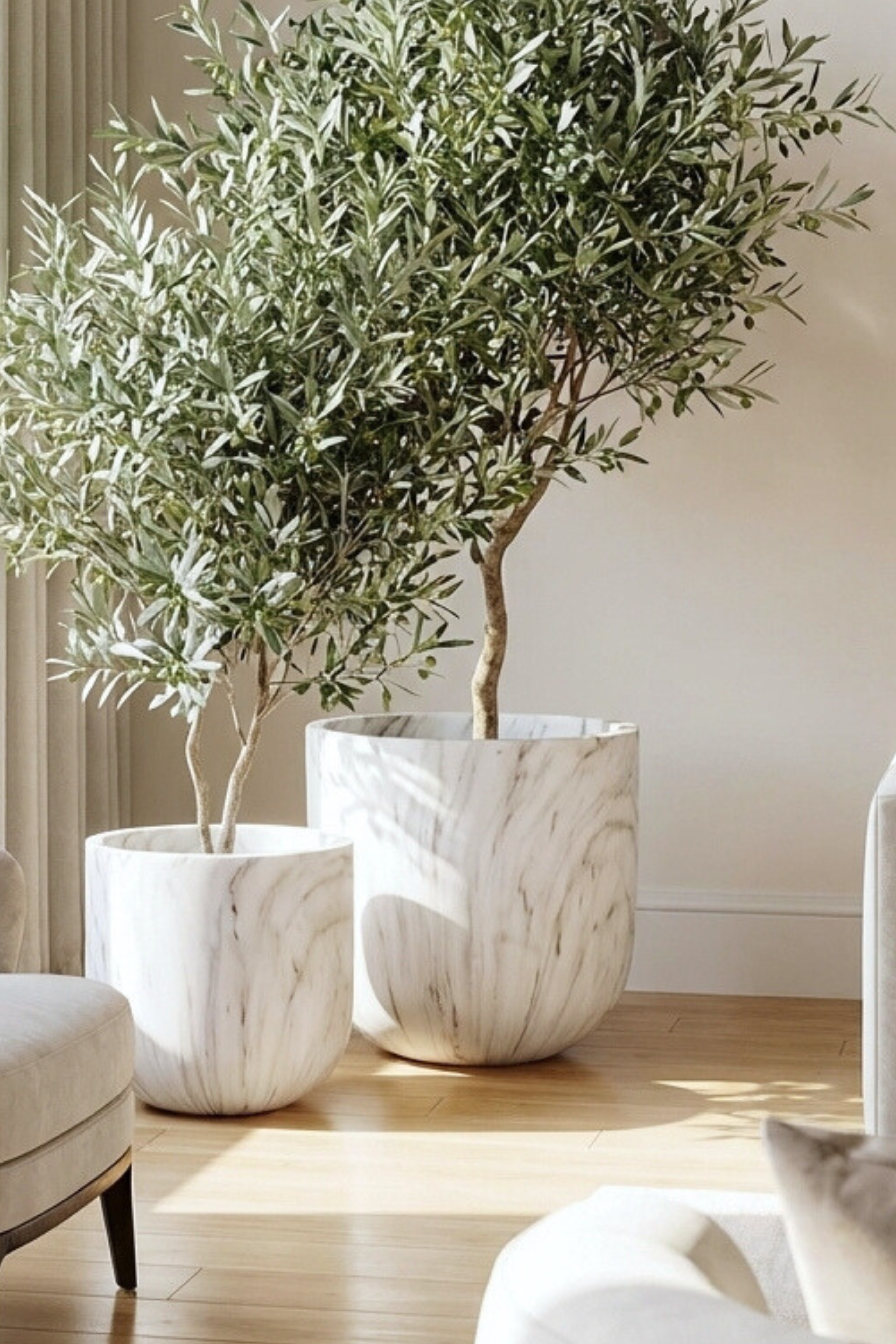 Designed to bring refined calm into your space, this sculptural pot features a soft marble finish with flowing grey veining across a smooth, matte surface. Crafted from durable fibercement, it offers the elegance of natural stone with a lighter, contemporary feel, making it ideal for modern interiors, terraces, and styled corners where texture, tone, and quiet luxury set the mood.