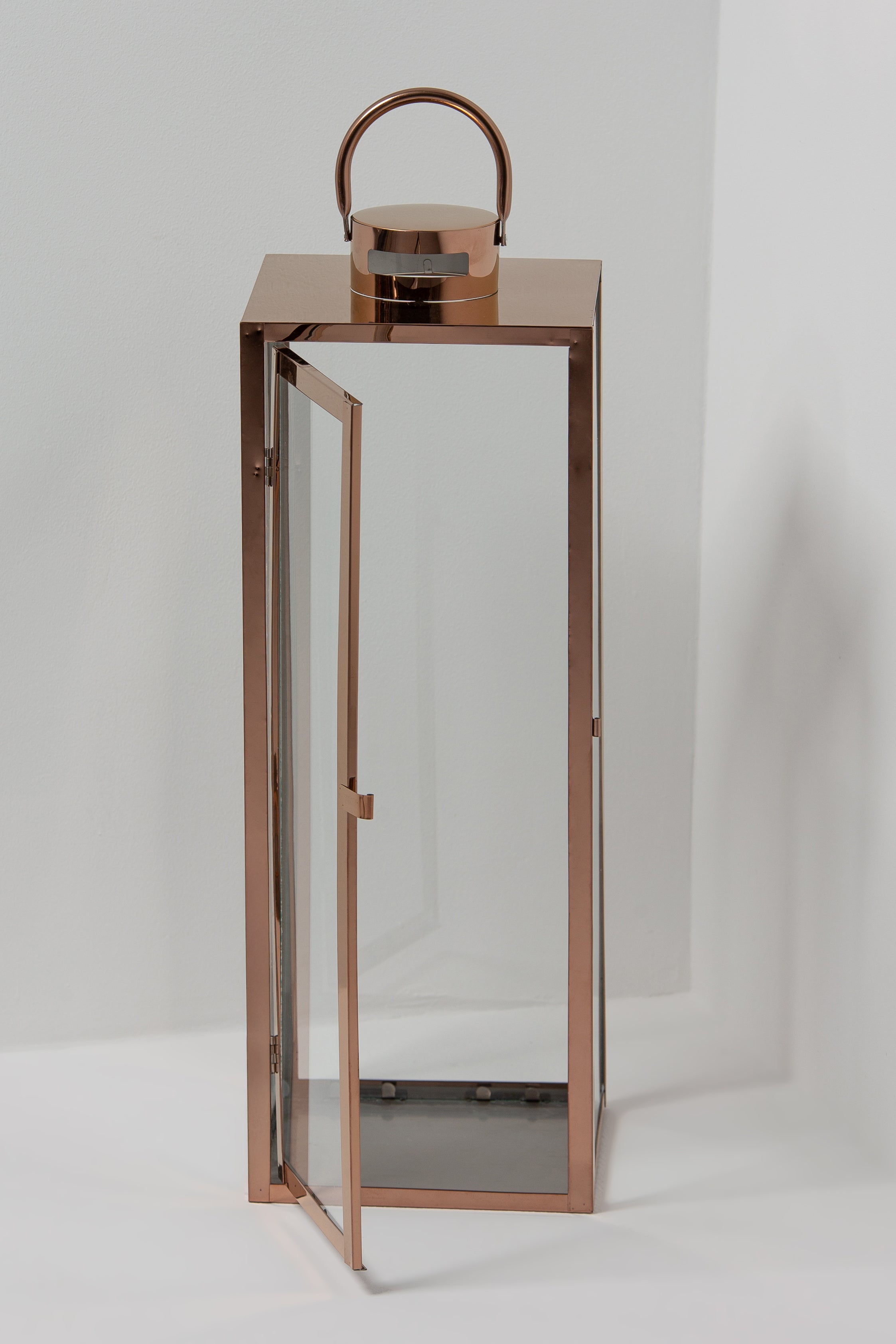 Illuminate your Ramadan and Eid celebrations with the timeless elegance of these sleek lanterns. The polished rose gold finish and crisp glass panels create a radiant glow, casting warm, ambient light in any setting. The structured silhouette, complete with a rounded handle, blends modern refinement with traditional charm—perfect for enhancing your home decor or setting a festive atmosphere for special gatherings. Whether placed indoors or on the patio, these lanterns bring a sophisticated touch to your celebrations.