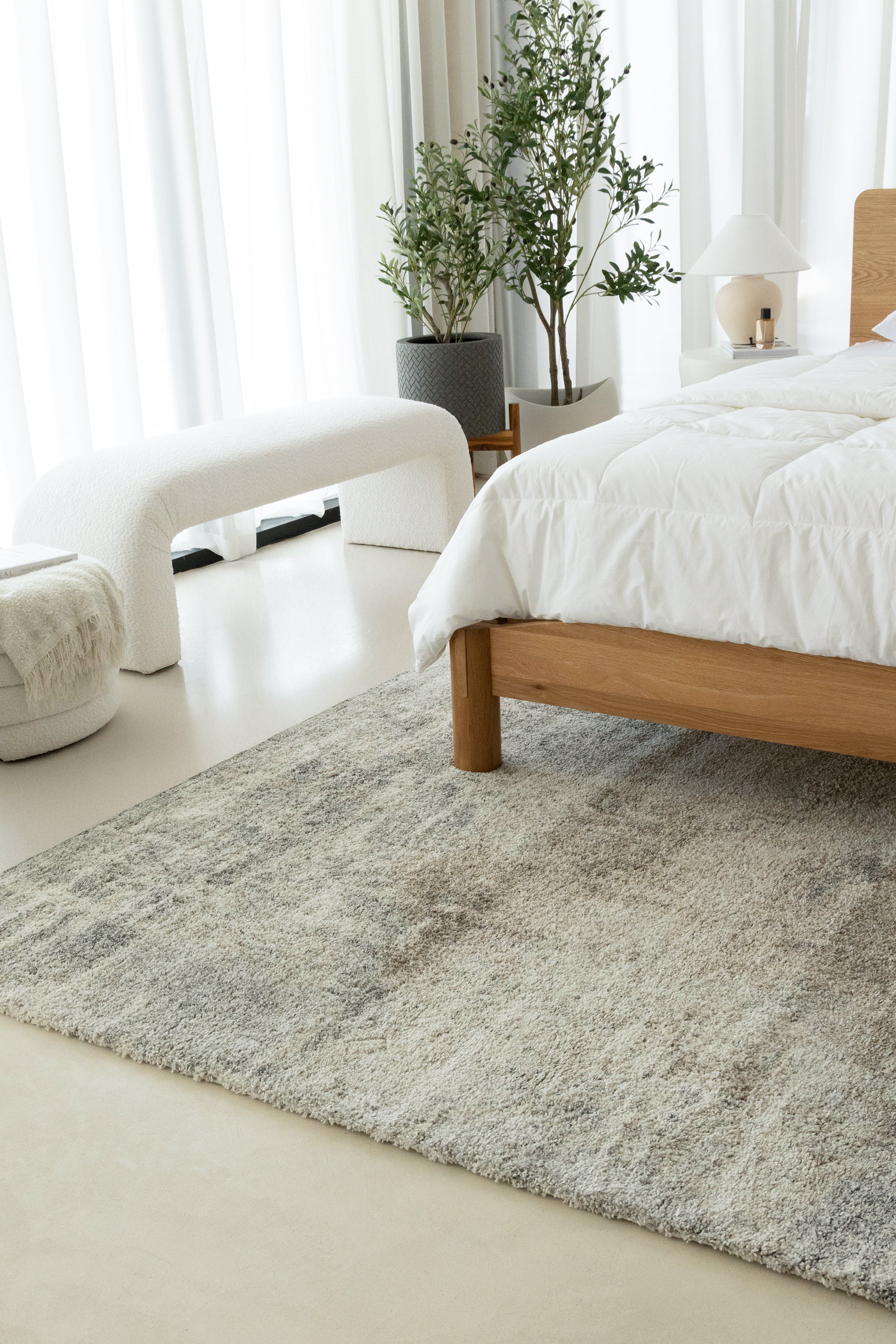 Set the tone for your personal sanctuary with the Adelis Abstract Rug, featuring a subtle blend of cool greys, warm beiges, and creamy accents. Its distressed, faded design offers an elegantly aged look, while the inviting texture provides comfort underfoot. The rectangular shape and versatile abstract pattern make it perfect as a centerpiece in a modern minimalist living room, cozy bedroom, or stylish home office.