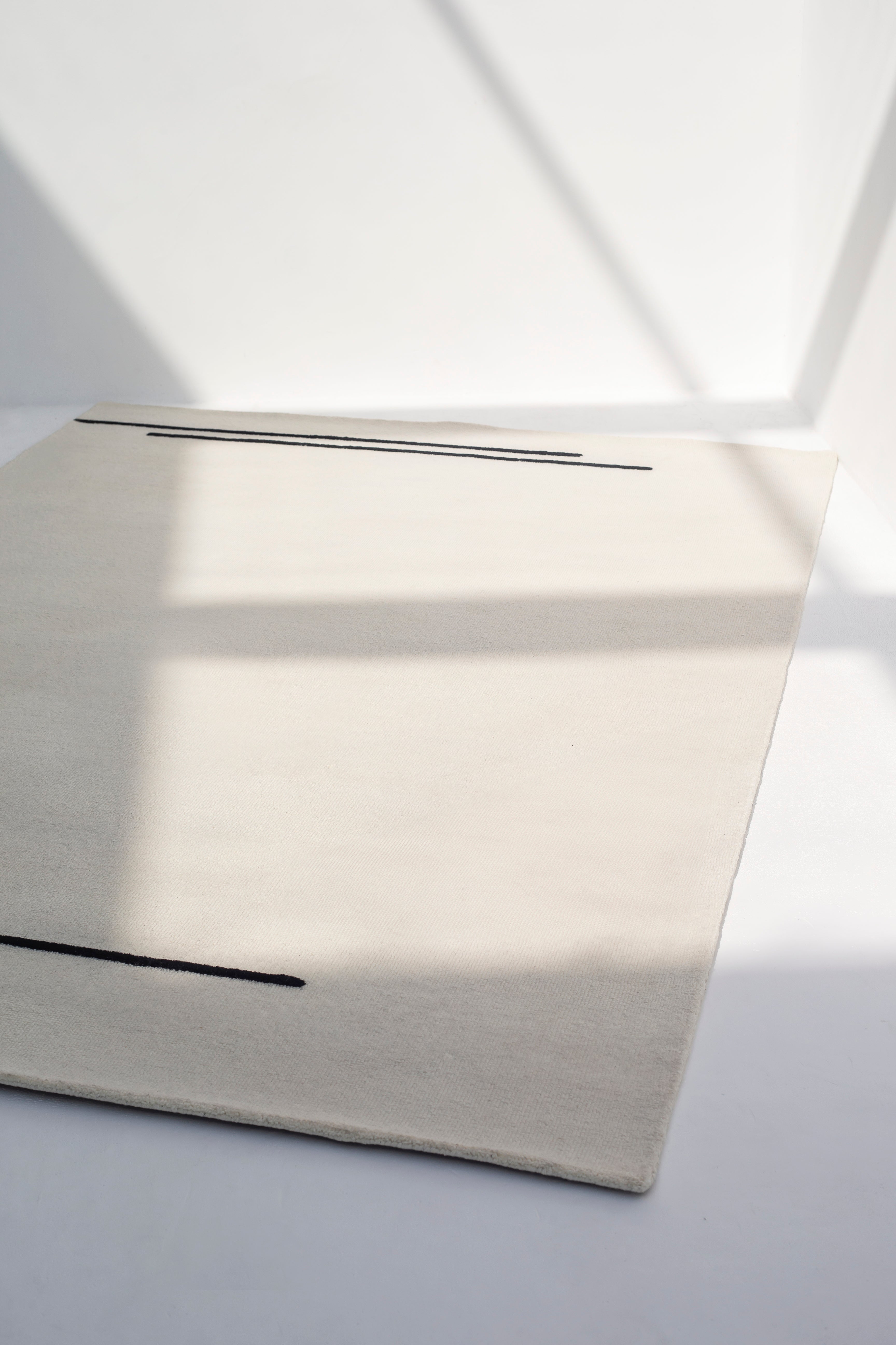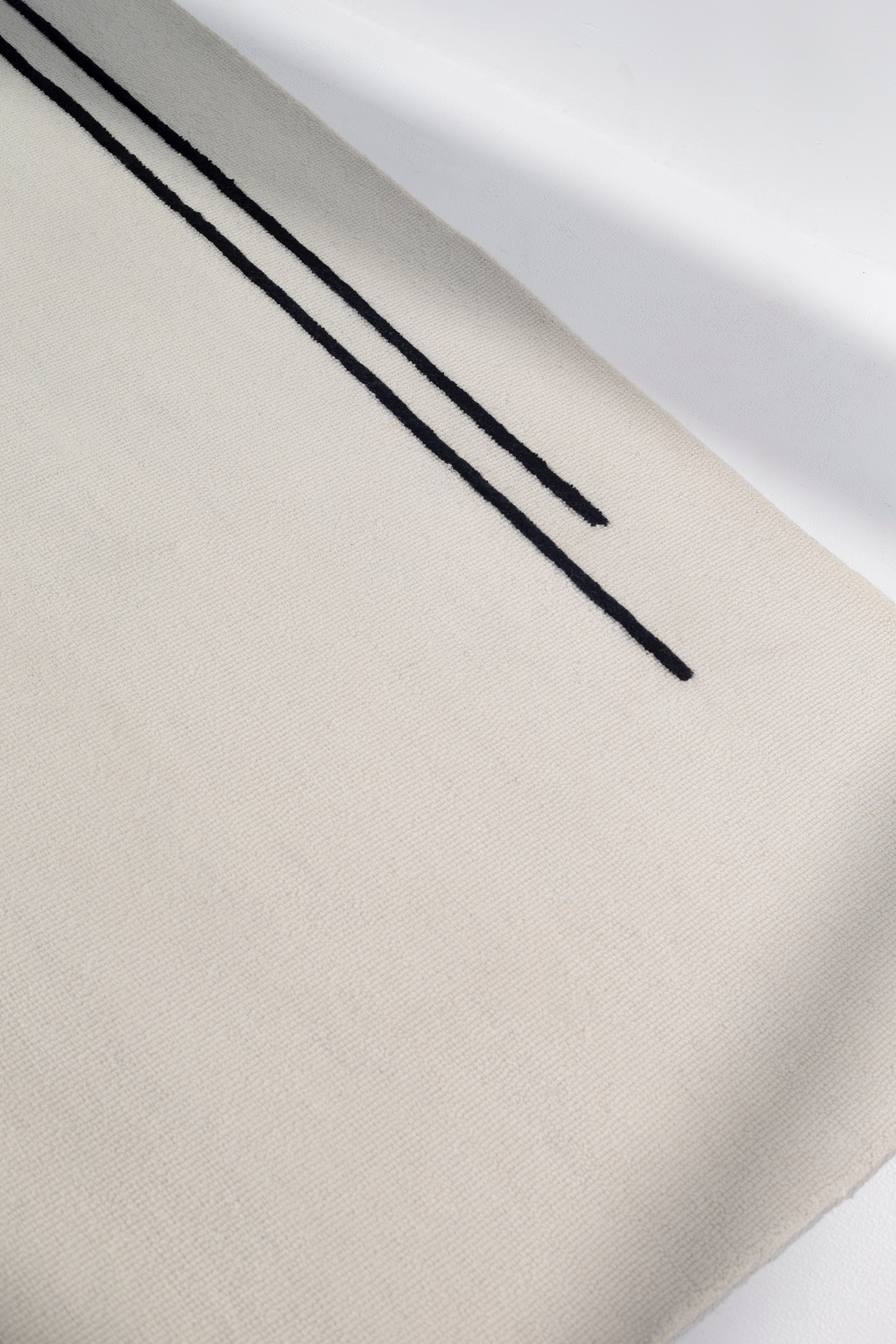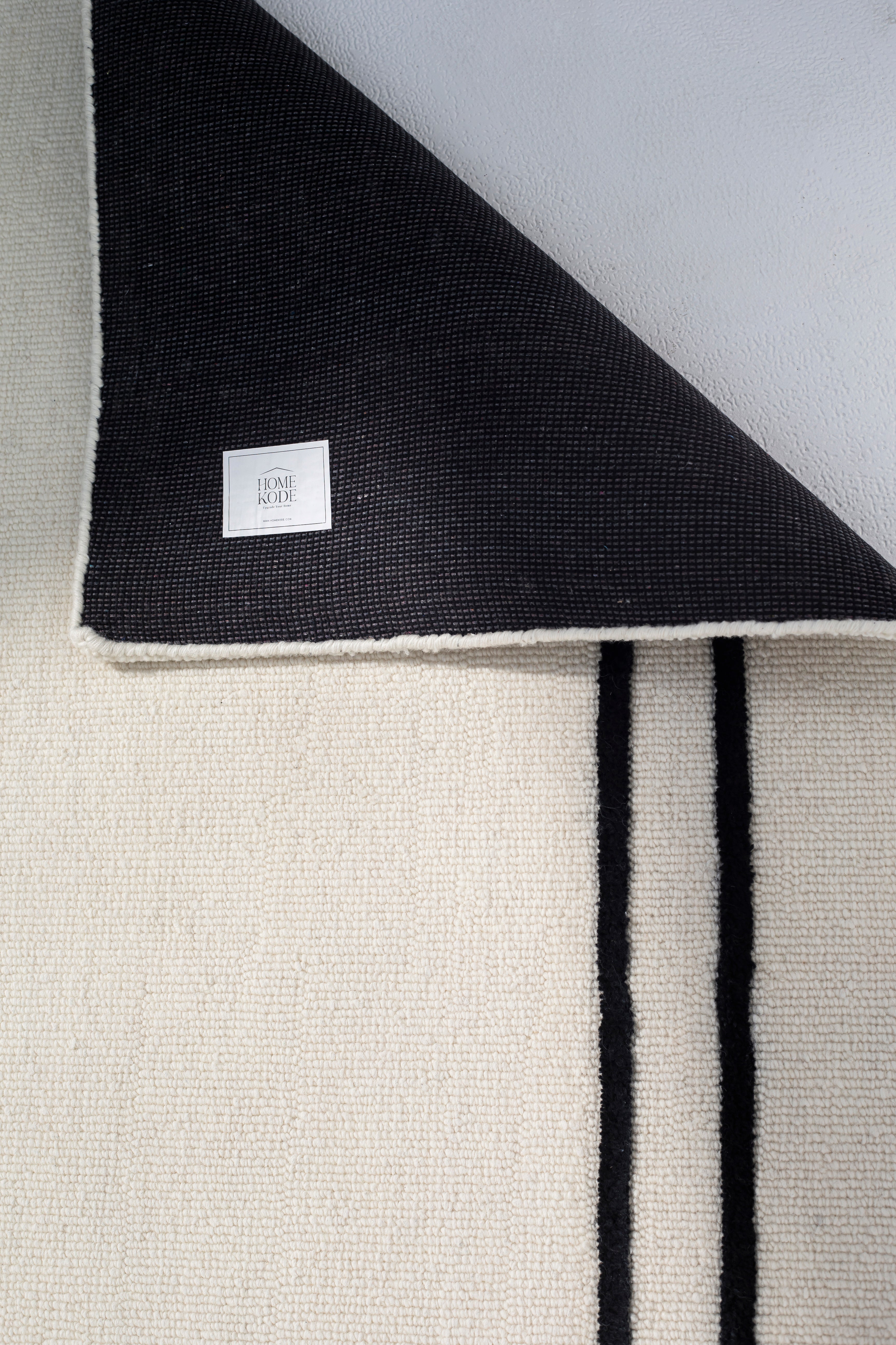 The Arlette Off White Tufted Rug boasts a refined aesthetic crafted from premium Hand Carded New Zealand Wool. Its rectangular shape and off-white backdrop are elegantly accented by minimalistic black tufted lines, creating a timeless design. With a plush texture and soft finish, this rug seamlessly enhances both modern and classic interiors, offering warmth and sophistication to your living spaces.