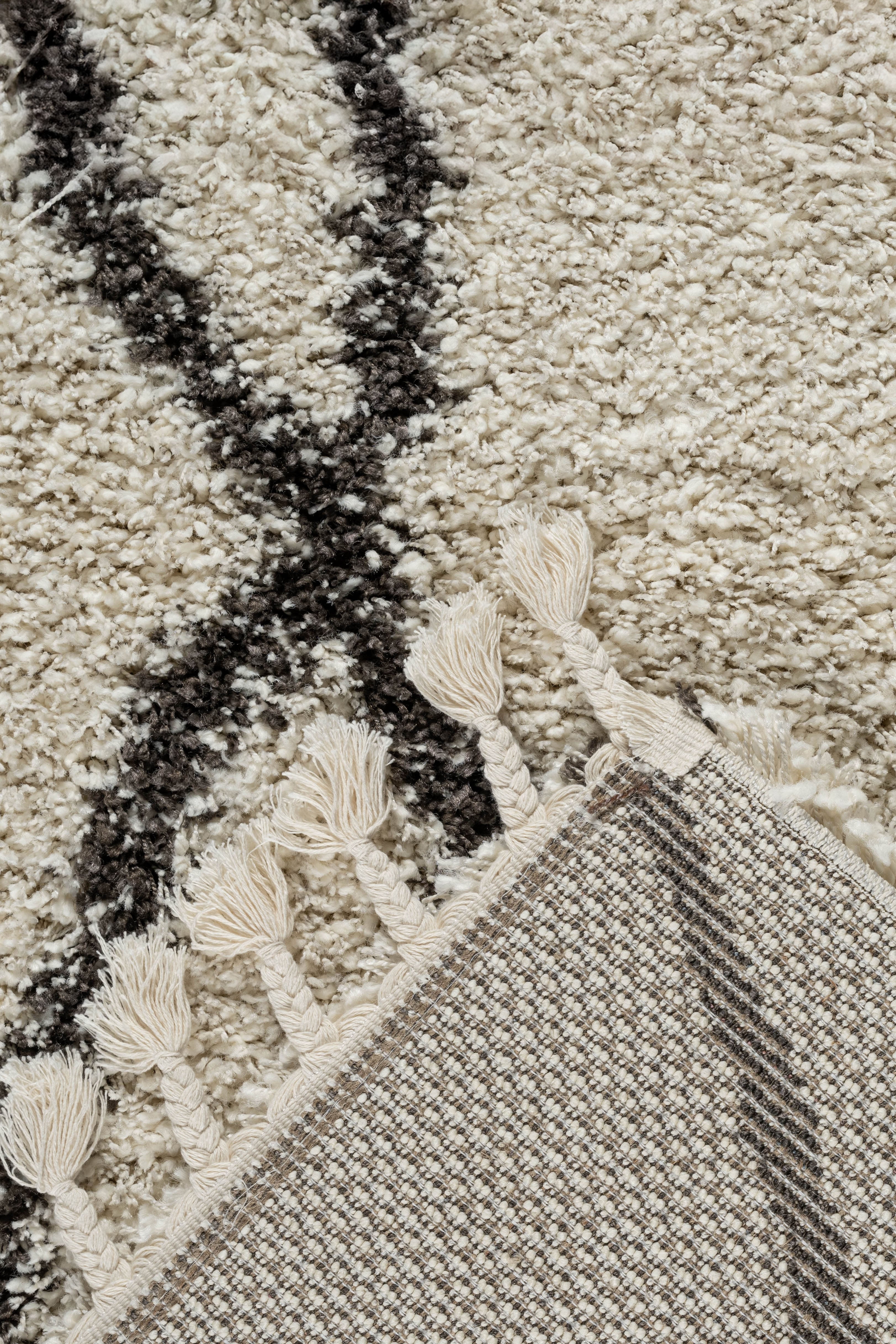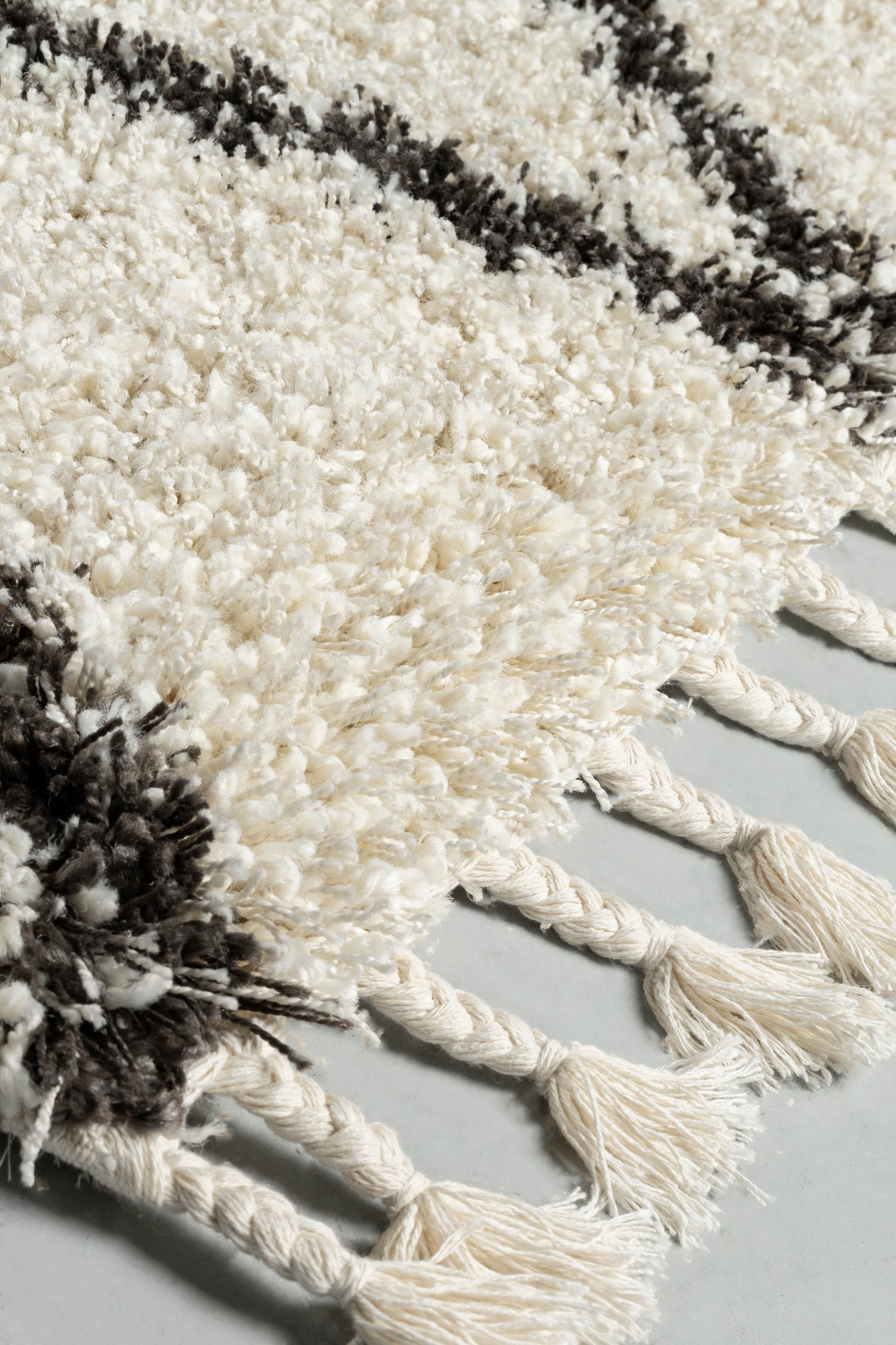 The Beni Diamond Rug brings timeless warmth and bold character to your space with its plush, high-pile texture and striking geometric diamond pattern. In a beautiful contrast of off-white and deep brown, this rectangular rug serves as a captivating focal point while effortlessly complementing boho, modern farmhouse, or Scandinavian styles. Tasseled edges add a touch of Moroccan charm, making it a cozy yet elegant addition to living rooms, bedrooms, or reading nooks.