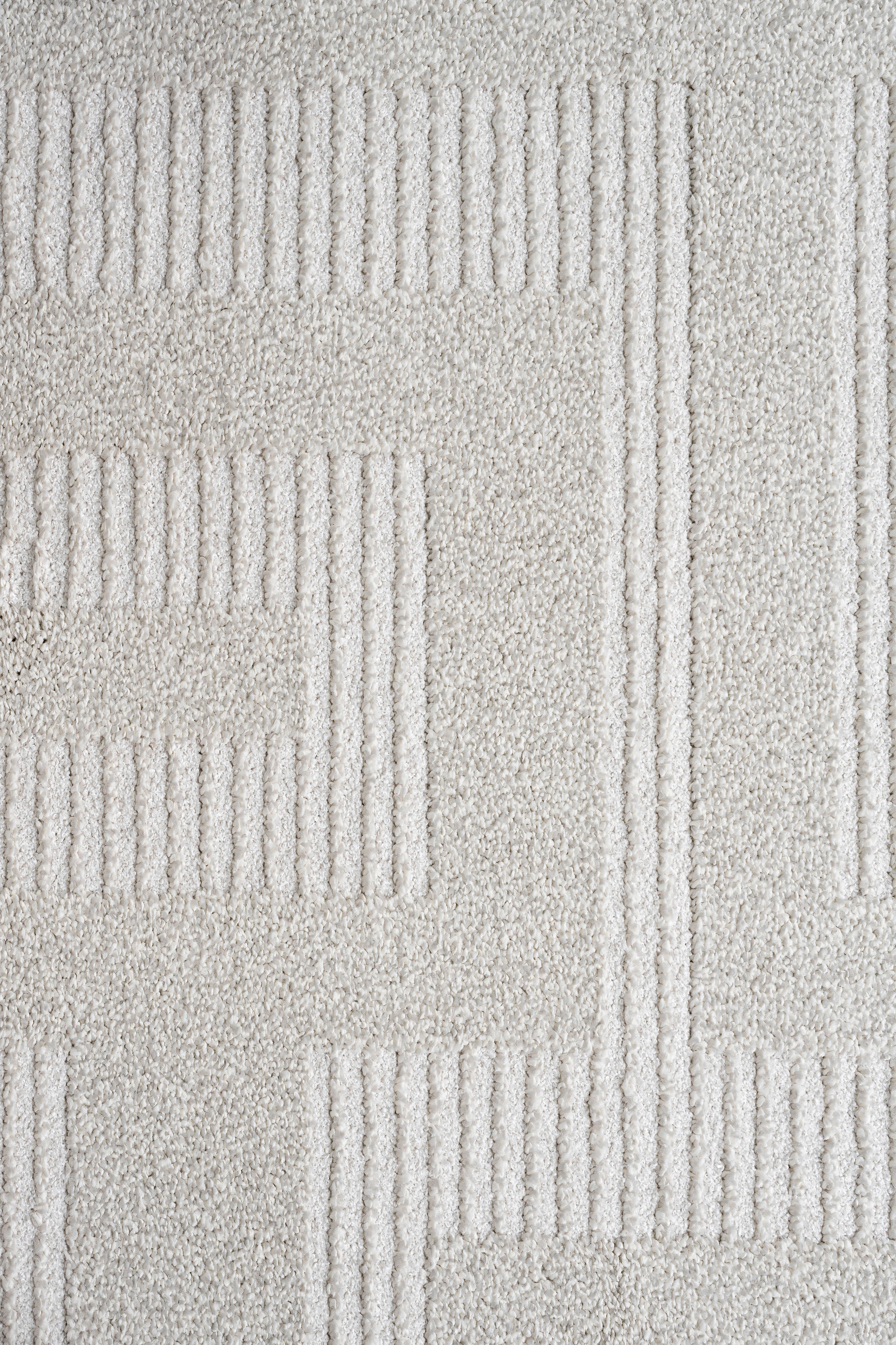 The Gerta Geometric Rug brings a bold yet refined touch to any modern space with its maze-inspired pattern in soft off-white and delicate beige tones. Its low-profile surface creates a sleek, contemporary feel—perfect for busy areas—while maintaining a gentle softness underfoot. The rectangular form and intricate labyrinth design transform any setting into a statement of elegance, whether placed in a stylish living room, refined dining space, or modern bedroom.