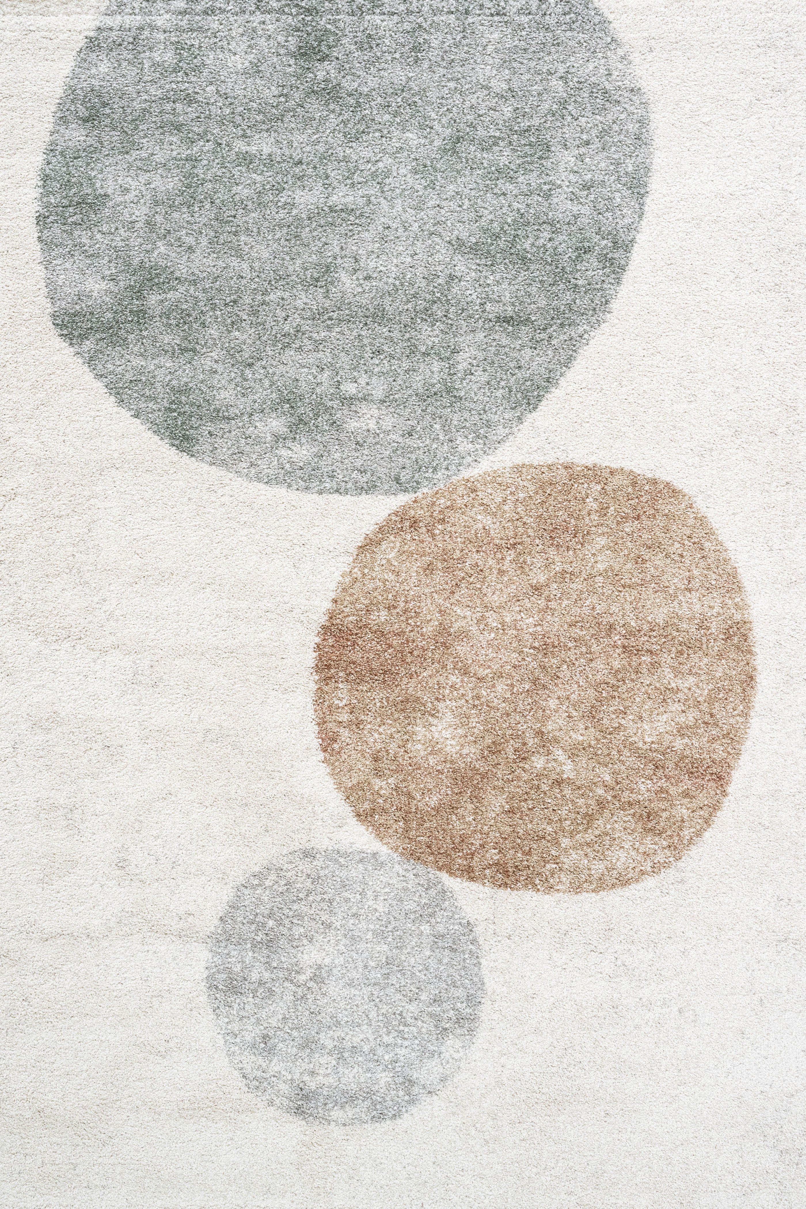The Kenoly Abstract Rug brings modern artistry to your space with organic circular shapes in soothing sage green, warm terracotta, and subtle grey tones set against a crisp white backdrop. Its plush surface invites comfort while adding a striking visual accent to living rooms, bedrooms, or dining areas. This versatile rectangular rug complements a range of interior styles, from minimalist to bohemian, making it a perfect statement piece for any contemporary home.