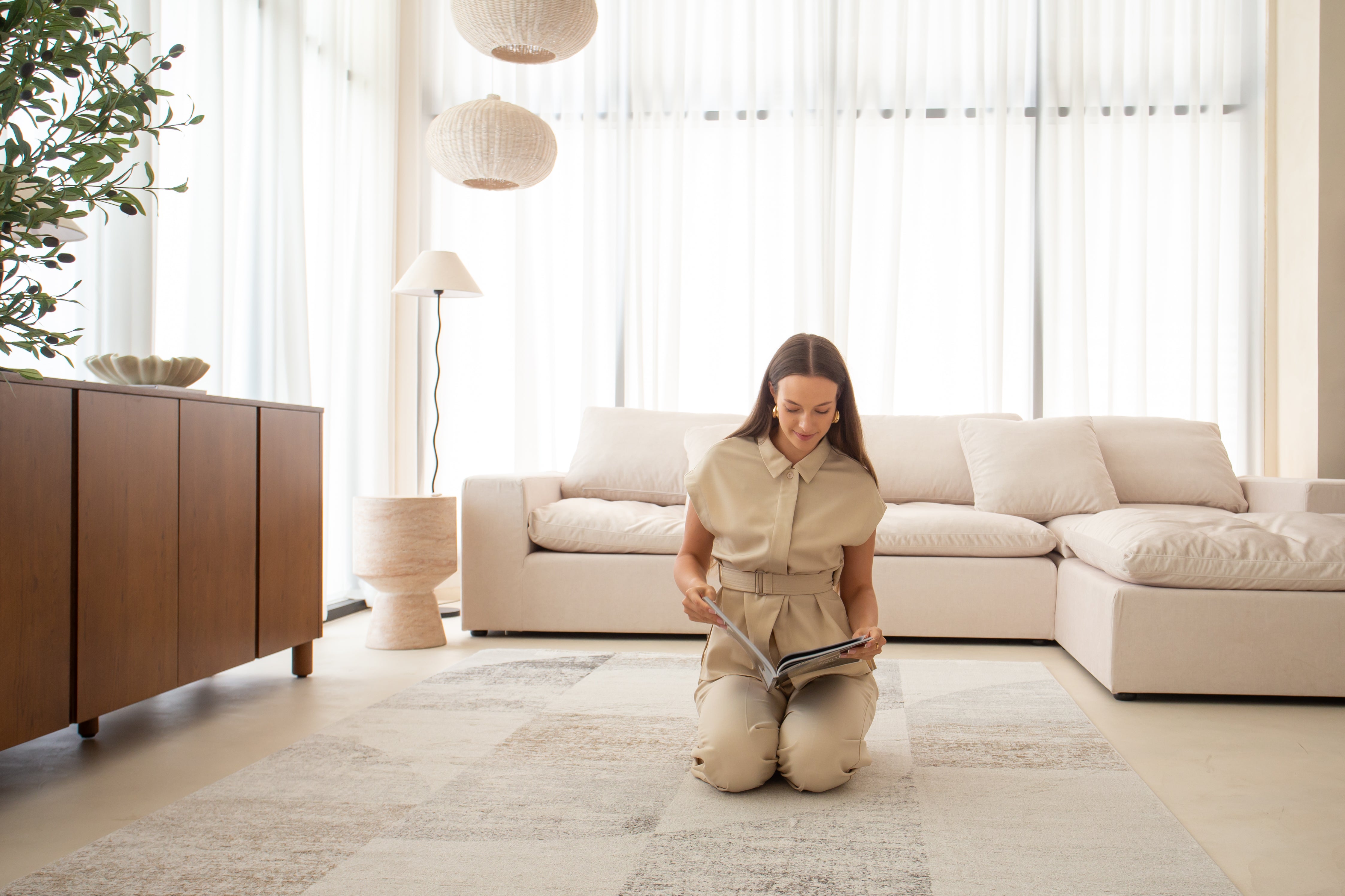 Transform your space into a serene sanctuary with the Orell Geometric Rug, where modern elegance meets artistic abstraction. As you step onto its soft surface, you're greeted by a graceful dance of overlapping curved and rectangular forms in muted tones of ivory, beige, taupe, and stone grey. The rug’s airy, textured appearance creates a calming yet dynamic visual flow—perfect for contemporary, Scandinavian, or minimalist interiors. Let the Orell rug ground your space with subtle contrast and timeless sophistication, making every room feel like a curated masterpiece.