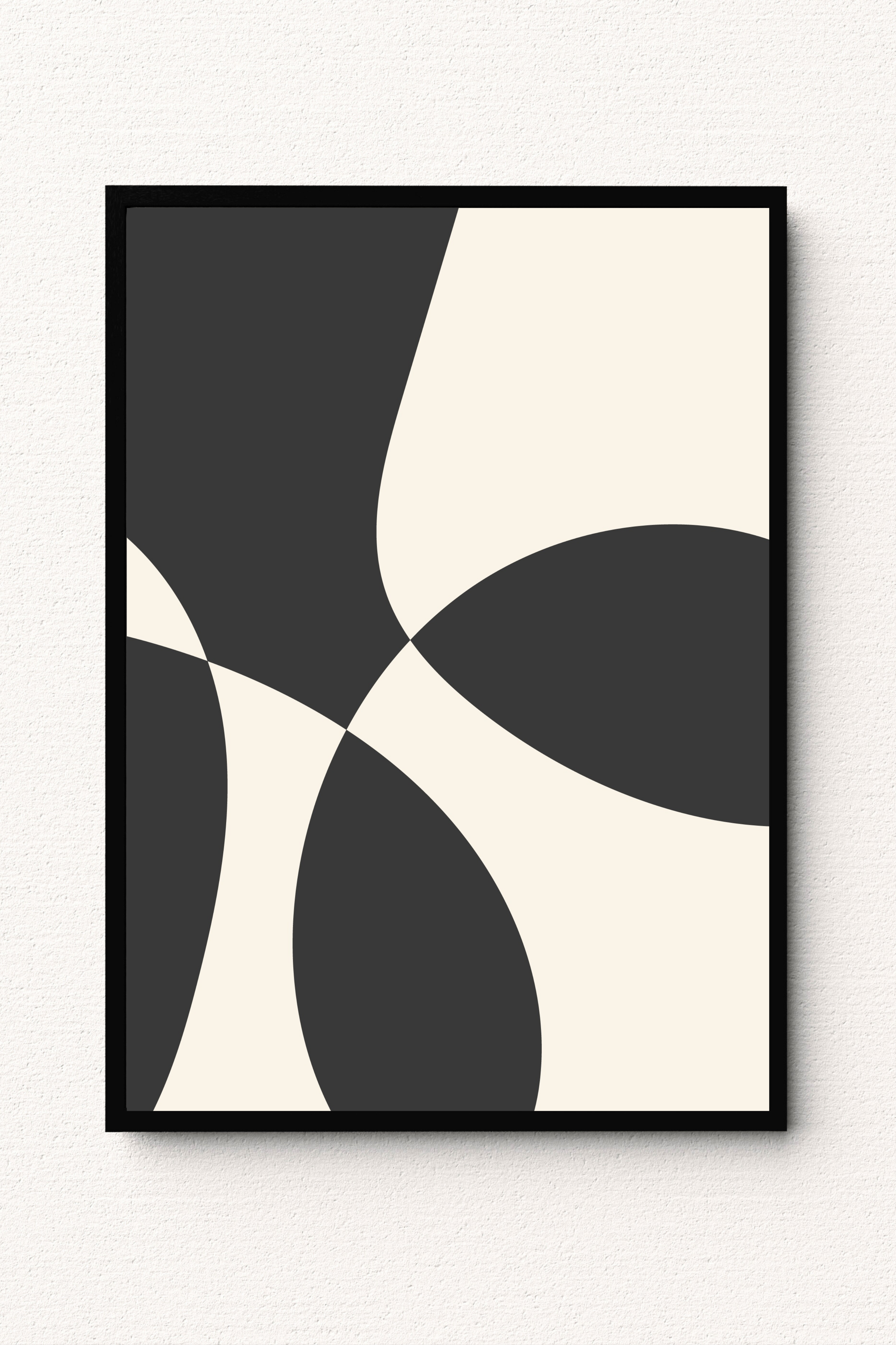 Redefine your space with a minimalist abstract print that allows you to be the curator of bold modern style. Fluid black shapes curve and intersect across a soft cream background, creating a striking play of contrast and balance. The smooth matte finish highlights the clean edges and flowing forms, while the monochrome palette makes it versatile for Scandinavian, contemporary, or mid-century interiors. Perfect for your living room, bedroom, or office, this artwork transforms your walls into a statement of timeless elegance and movement.