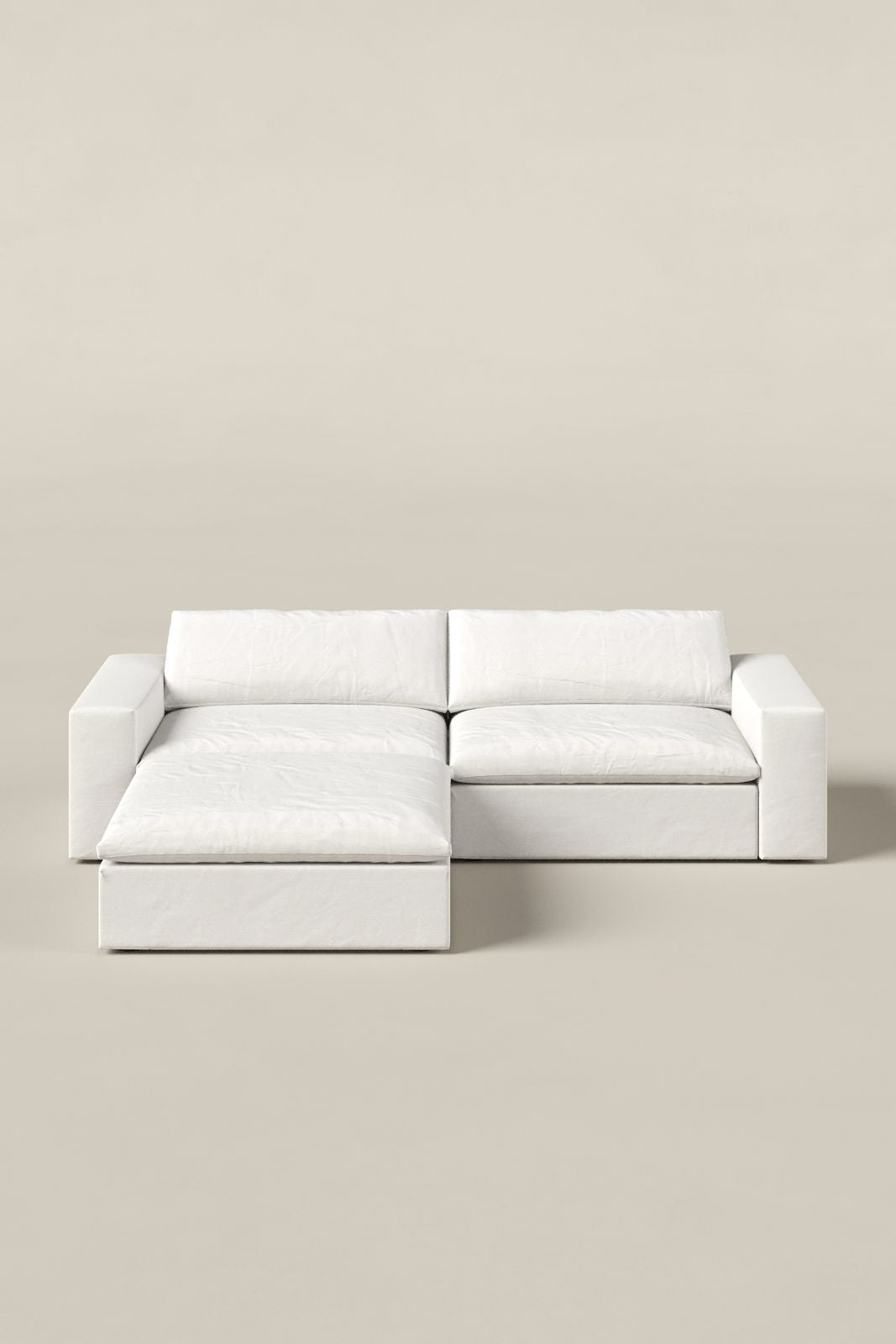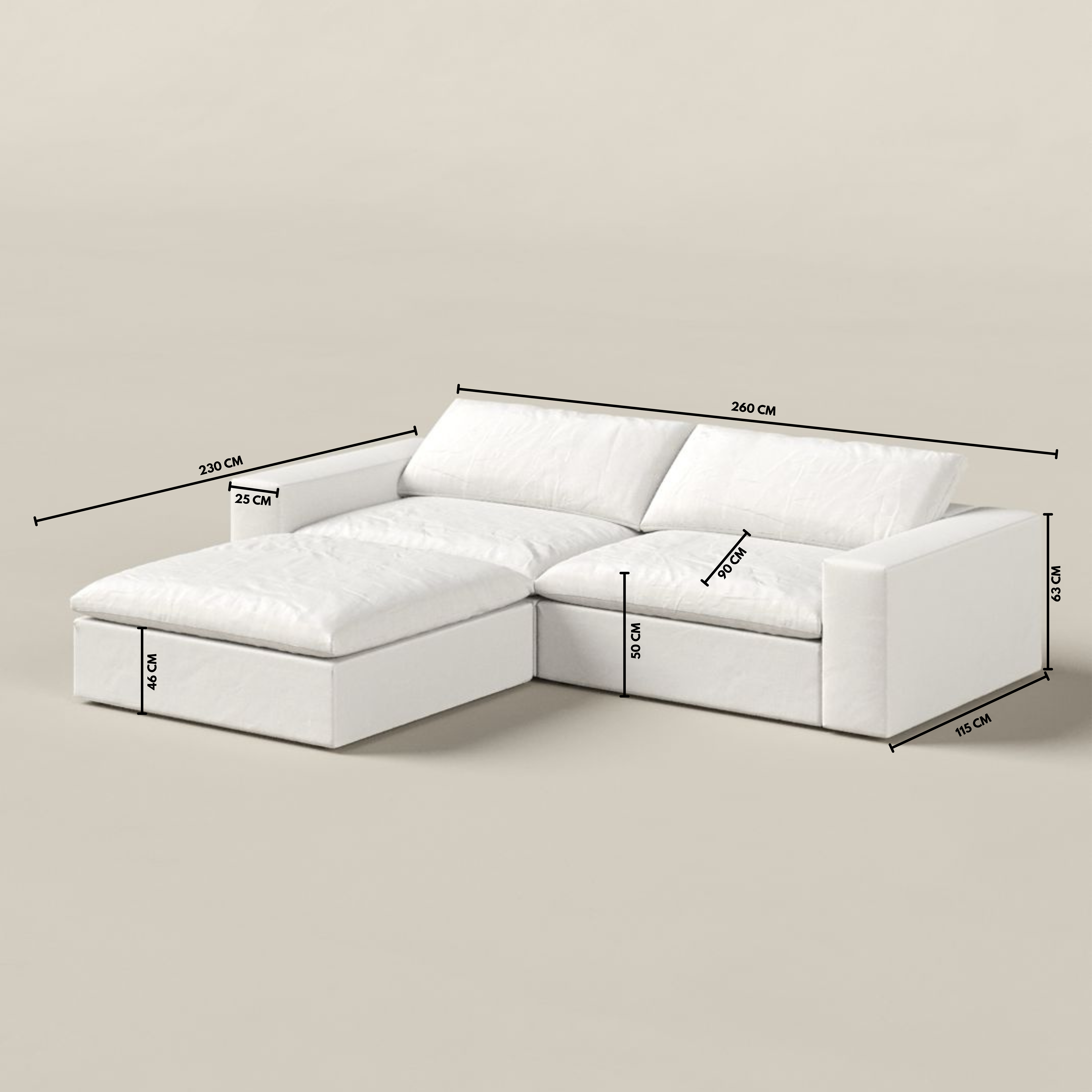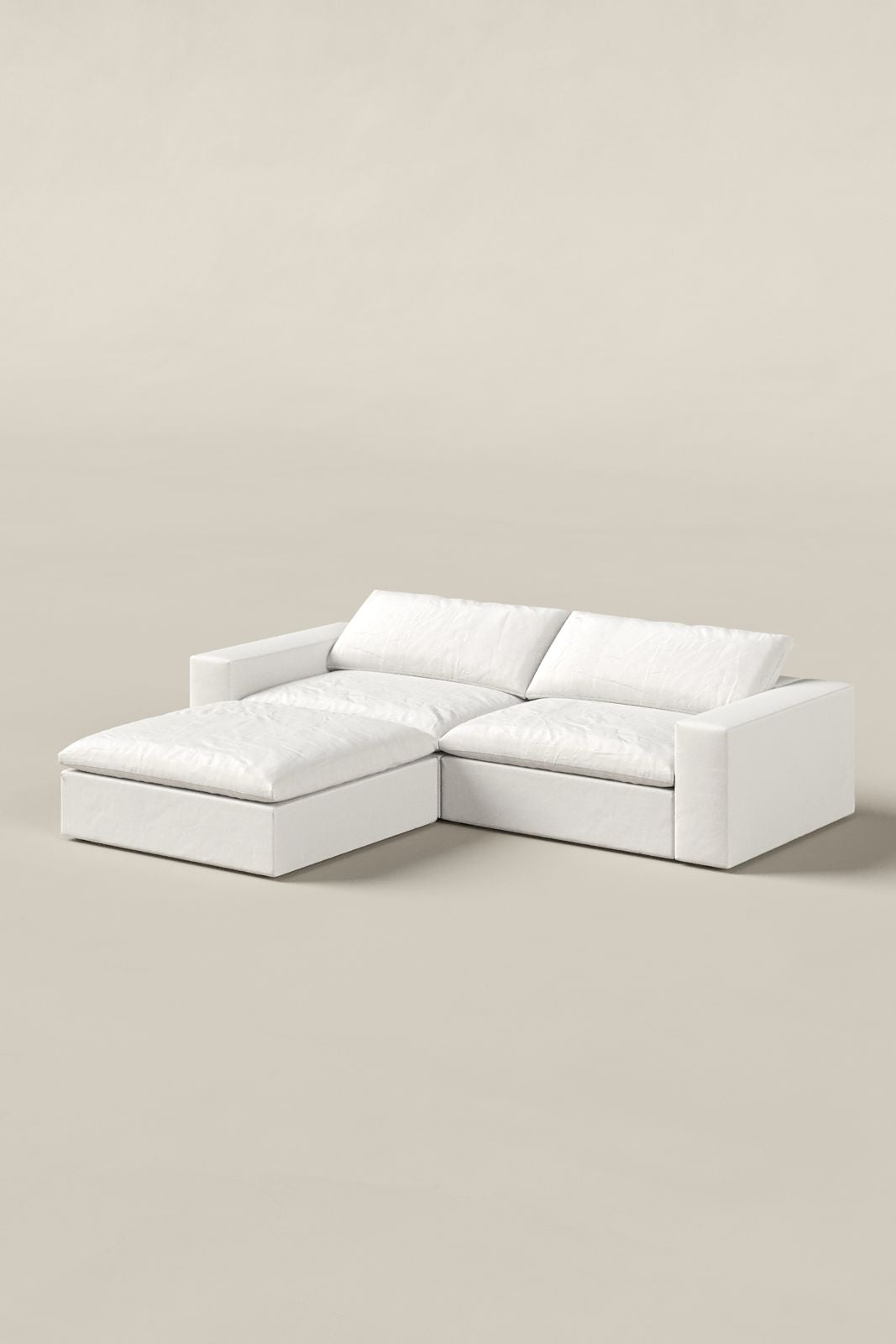 Redefine your living space with a modern modular sofa and ottoman combination that blends European elegance with everyday functionality. Its clean-lined silhouette, broad armrests, and low-profile design create a striking architectural presence, while the off-white finish reflects light and brings balance to any room. The detachable ottoman adds flexibility, letting you style it as a chaise lounge or centerpiece depending on your mood and layout. With its minimalist proportions and timeless color palette, this sofa instantly becomes the perfect spot where design and lifestyle meet in harmony.