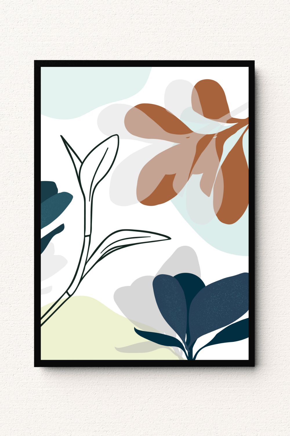 Imagine bringing the gentle tranquility of nature into your home with a piece that feels both contemporary and timeless. The Pastel Flora Wall Art is an enchanting botanical print that blends delicate line art with soft, overlapping translucent shapes. A fine black line-drawn stem is complemented by filled-in leaves in a calming palette of dusty blue, soft terracotta, and pale green, creating a layered, dimensional effect. This abstract botanical decor is the perfect way to add a touch of modern sophistication and serene color to your boho living room or minimalist bedroom. Elevate your space with this beautiful, ethereal wall art.