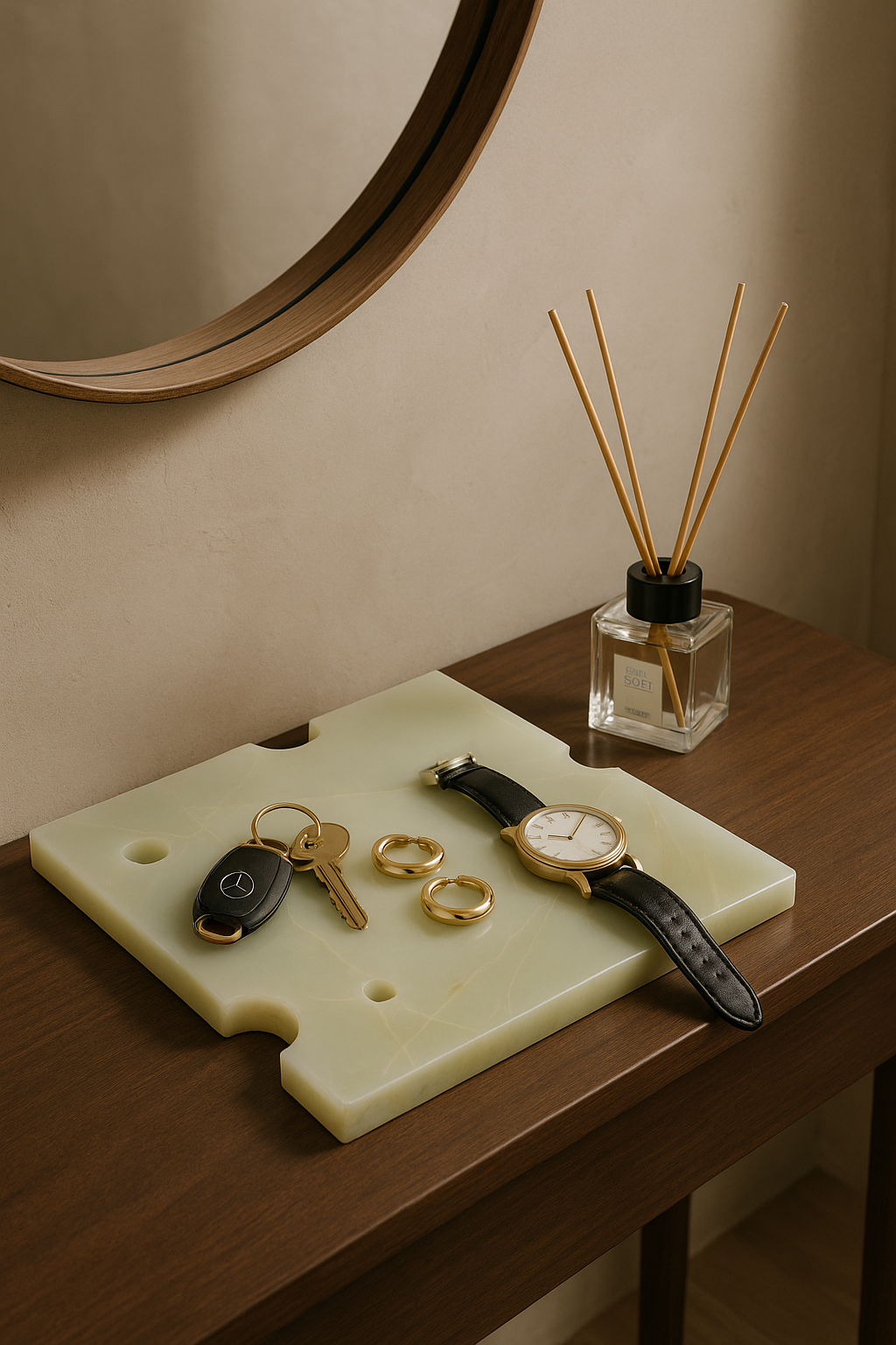 This exquisite luxury marble tray is expertly cut from genuine Calacatta Greek marble, celebrated for its pristine white background and stunning, natural grey veining. The polished surface highlights the unique, intricate patterns and smooth texture of this premium stone, offering a truly captivating visual experience. Its perfectly square shape with clean edges provides a sophisticated base for displaying candles, jewelry, or holding everyday essentials, transforming any surface into a statement of refined taste. Enhance your bathroom, bedroom, living room, or office with this versatile piece, designed to bring a touch of Greek-inspired grandeur and your personal style to the forefront of your home decor.