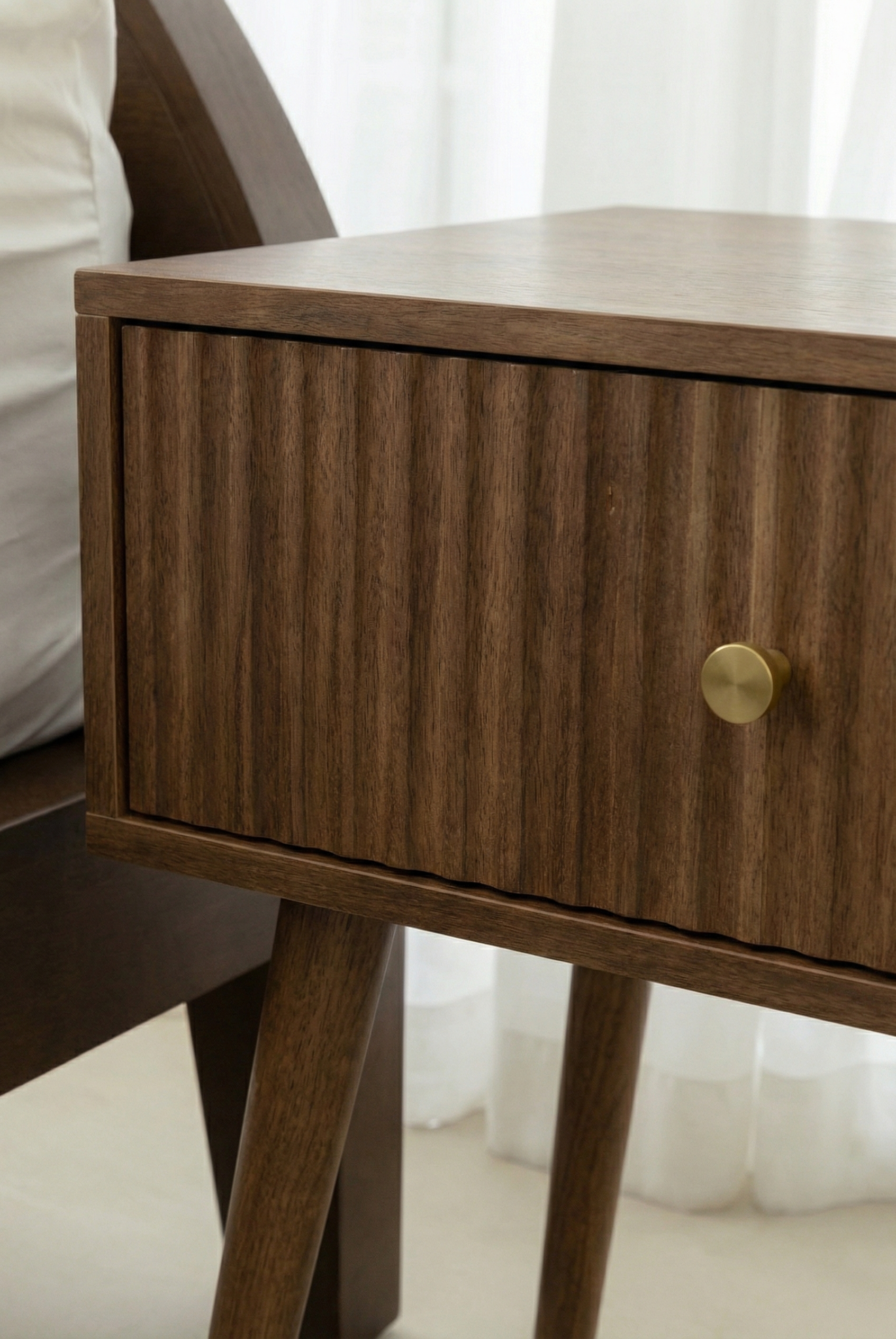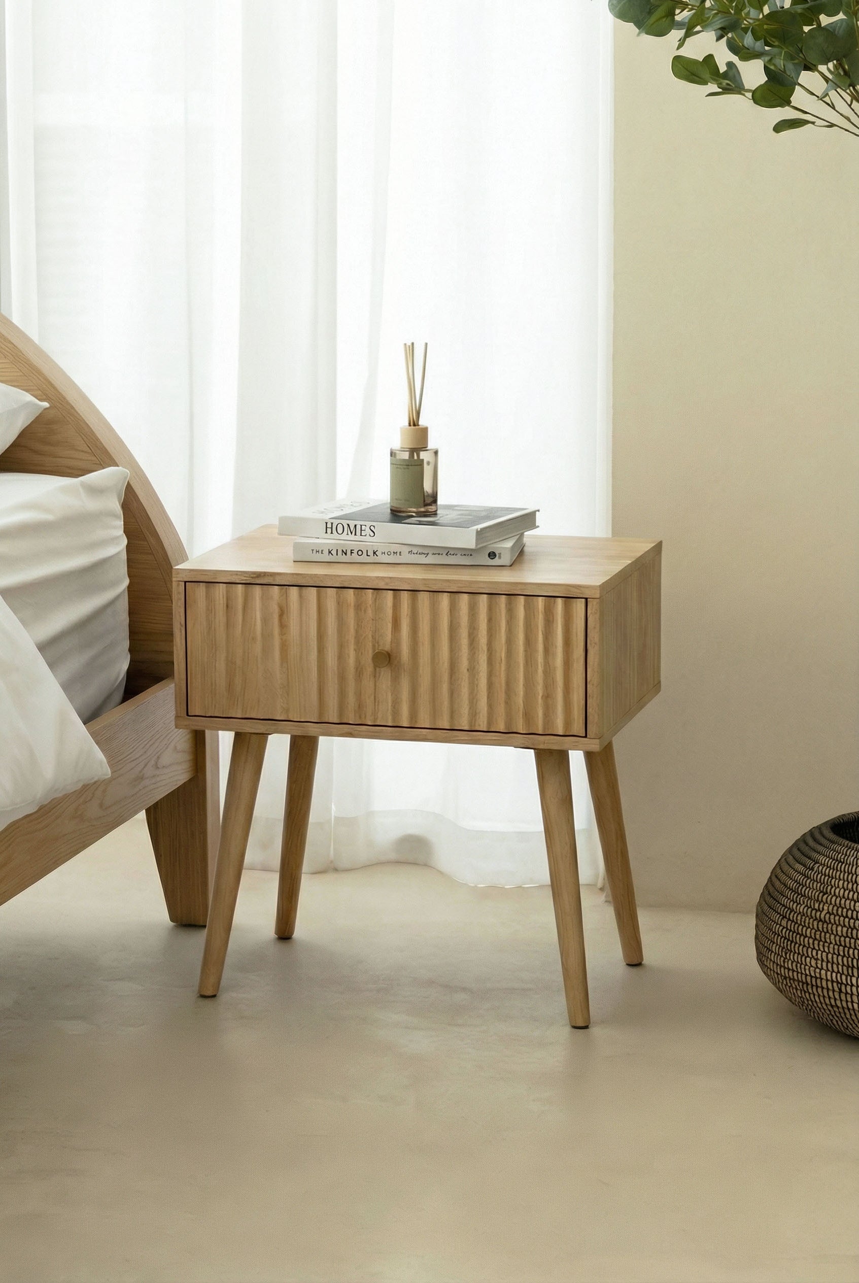 Delora Side Table: A chic modern side table with an organic-shaped top and a bold fluted base.