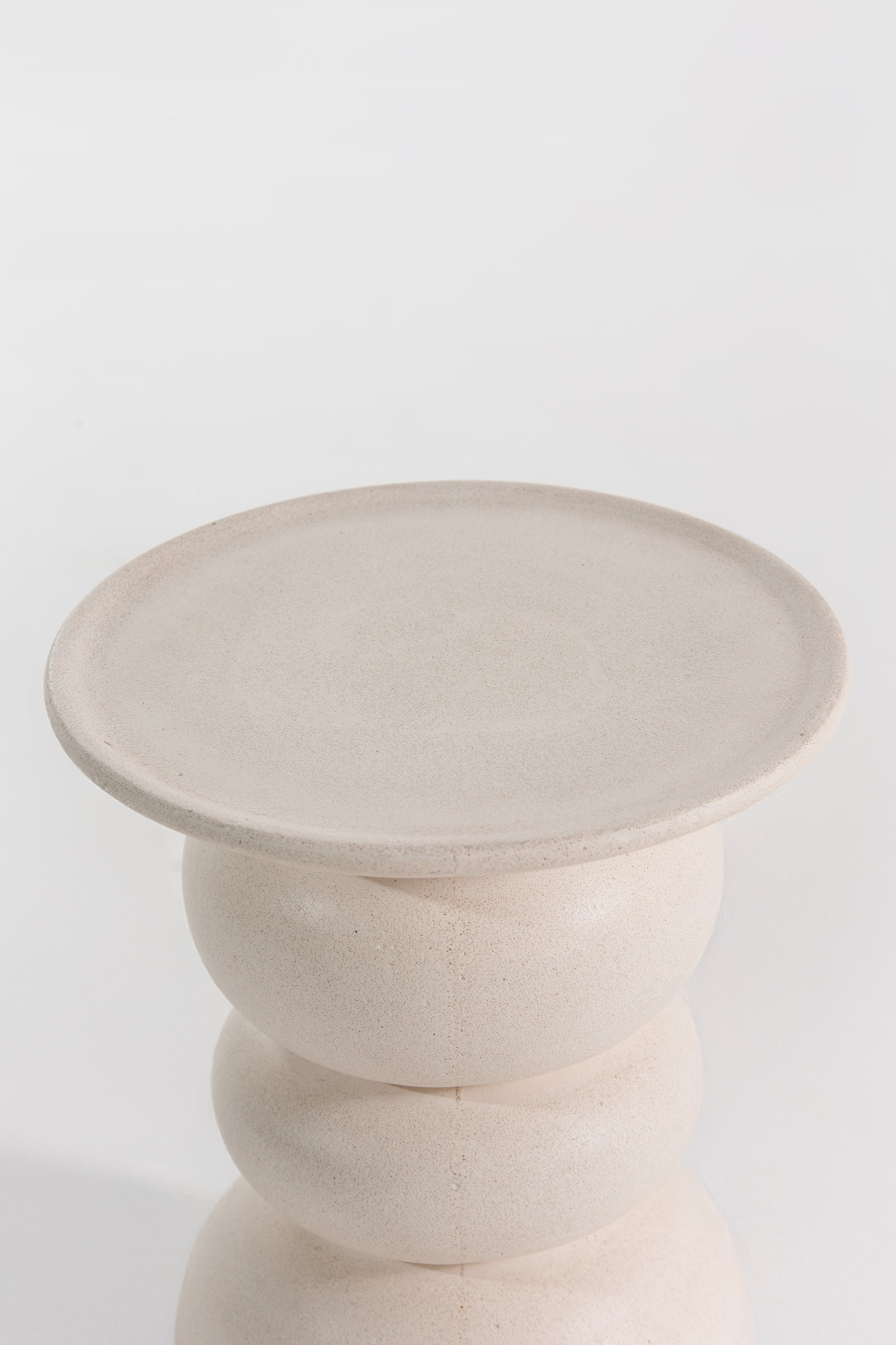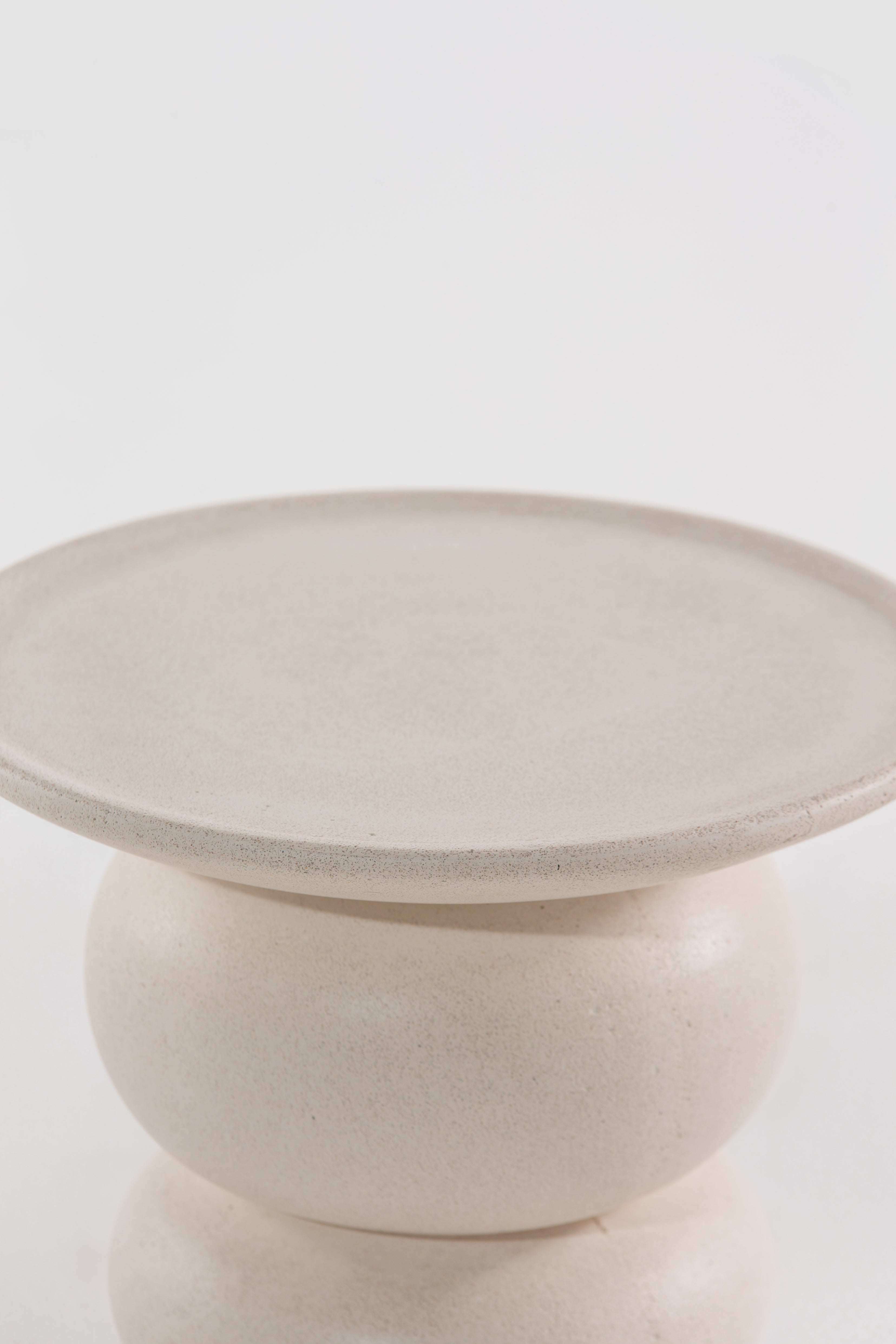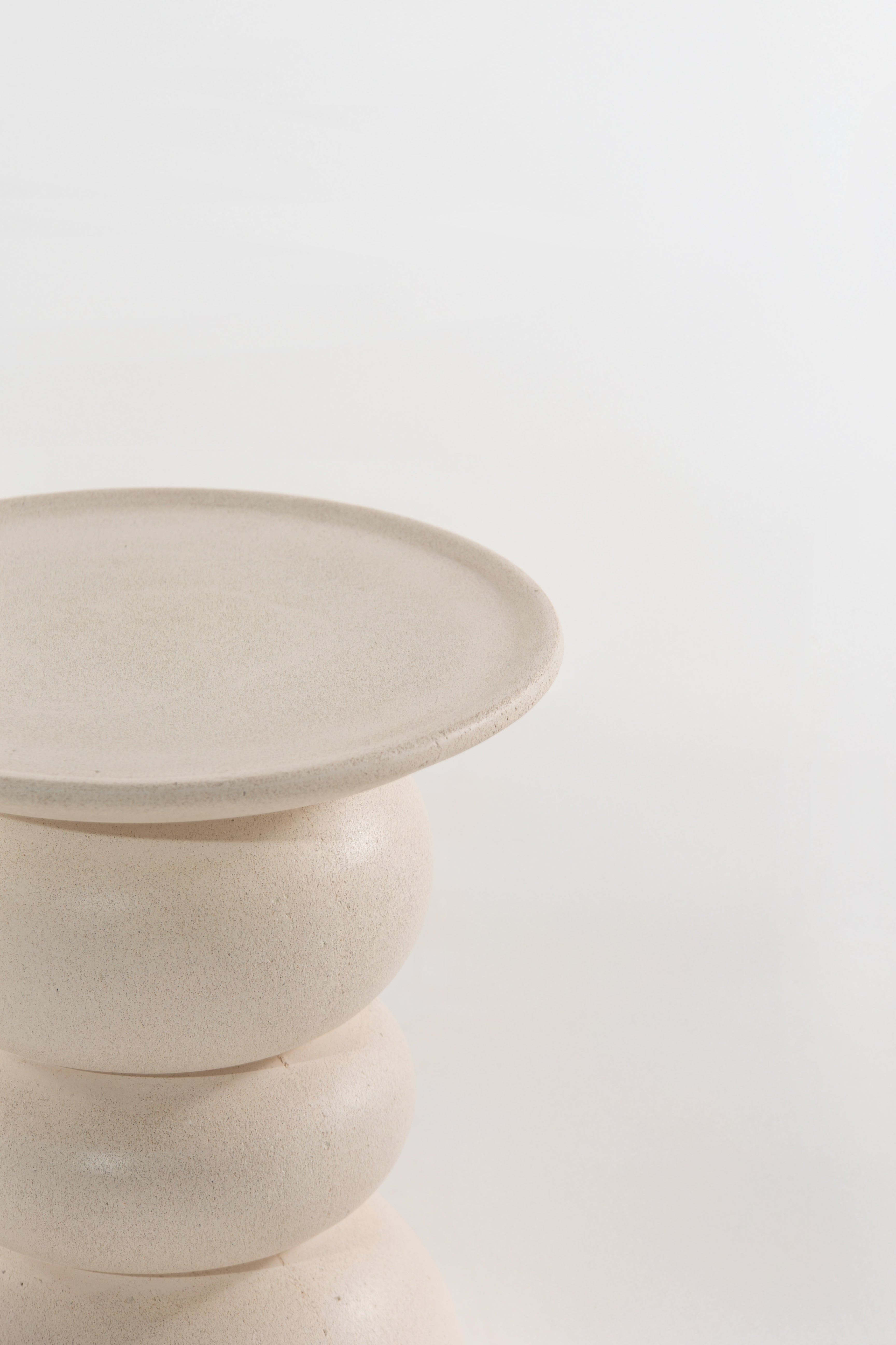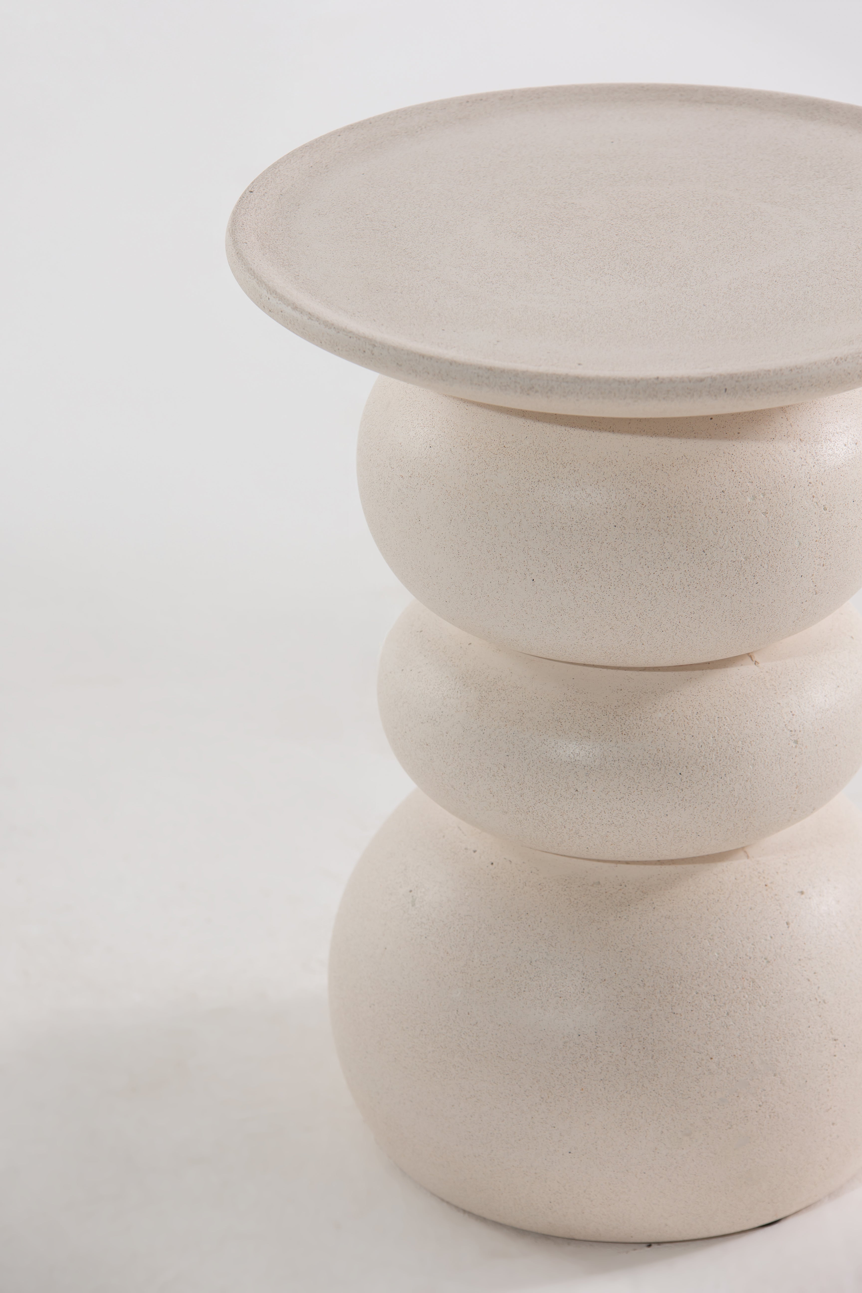 A serene blend of form and function, this off-white concrete side table is a sculptural statement piece for modern interiors. Featuring a hand-finished, pebble-stacked silhouette, its soft curves and organic shape add a sense of calm and visual interest to any room. The smooth matte texture and grounded concrete build offer both durability and style, making it ideal as a bedside table, living room accent, or decorative stand in minimalist, Japandi, or earthy-toned spaces. Its understated elegance effortlessly complements neutral palettes while serving as a functional surface for everyday essentials or curated decor.