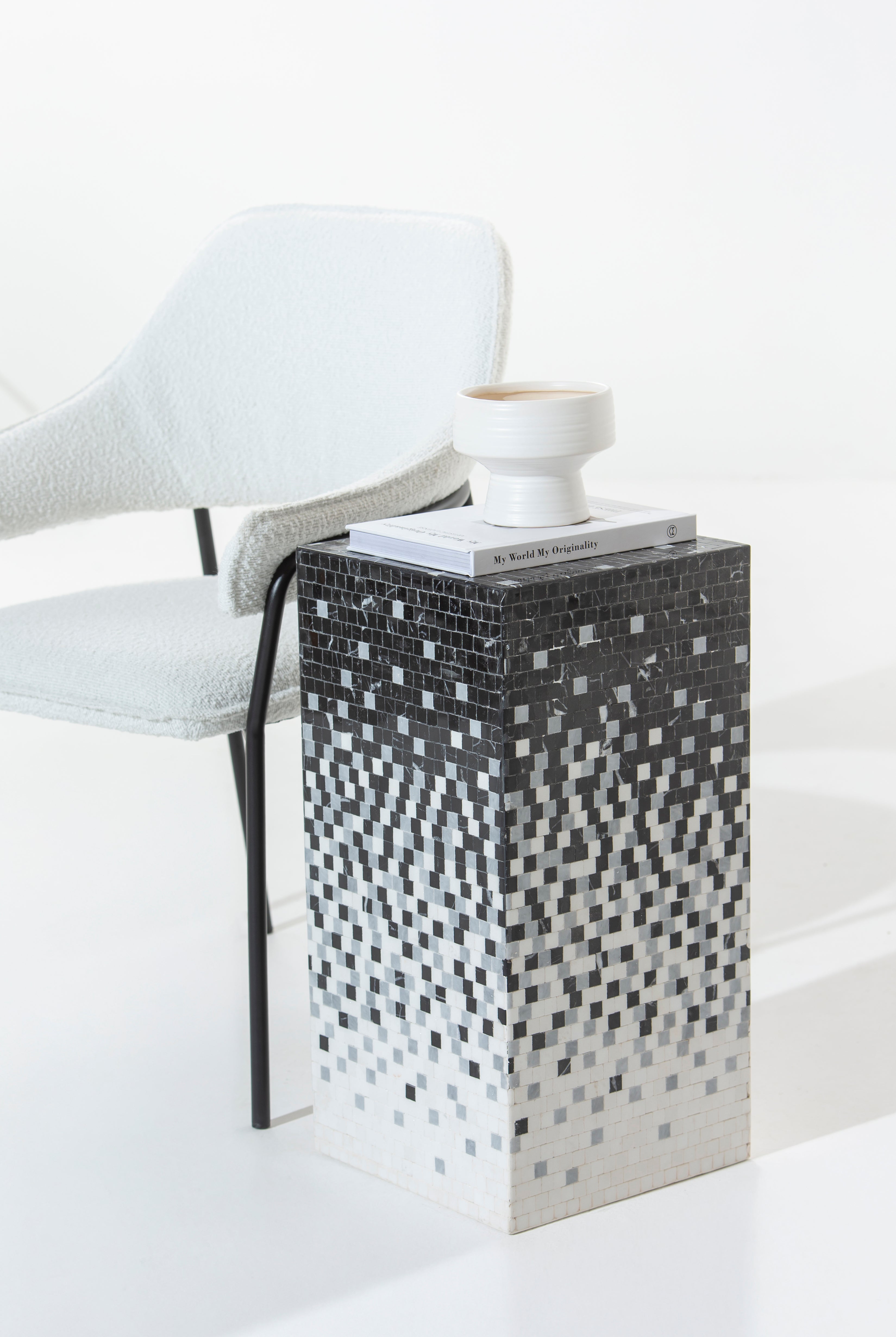 Perfect for showcasing your favorite sculptures, vases, or even as a stand for your cherished collectibles, these plinths offer a sturdy and stable platform. The seamless design ensures that your items are the focal point, with the black backdrop adding depth and drama. As side tables, they provide a convenient surface for your books, drinks, or decorative lamps, enhancing the functionality and aesthetic of your living room, bedroom, or office.