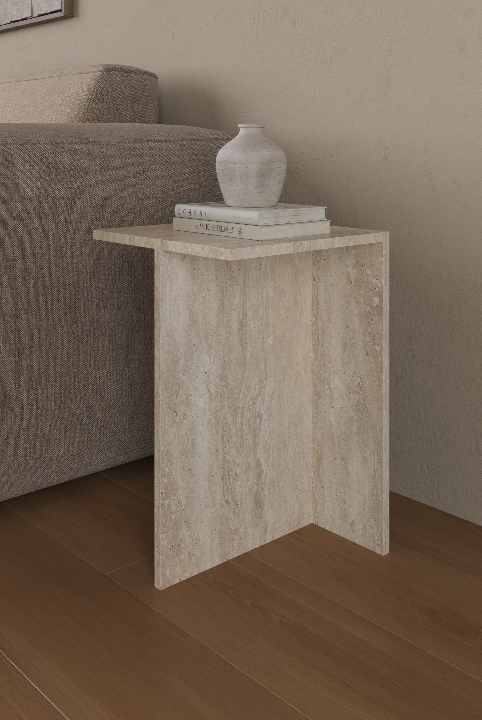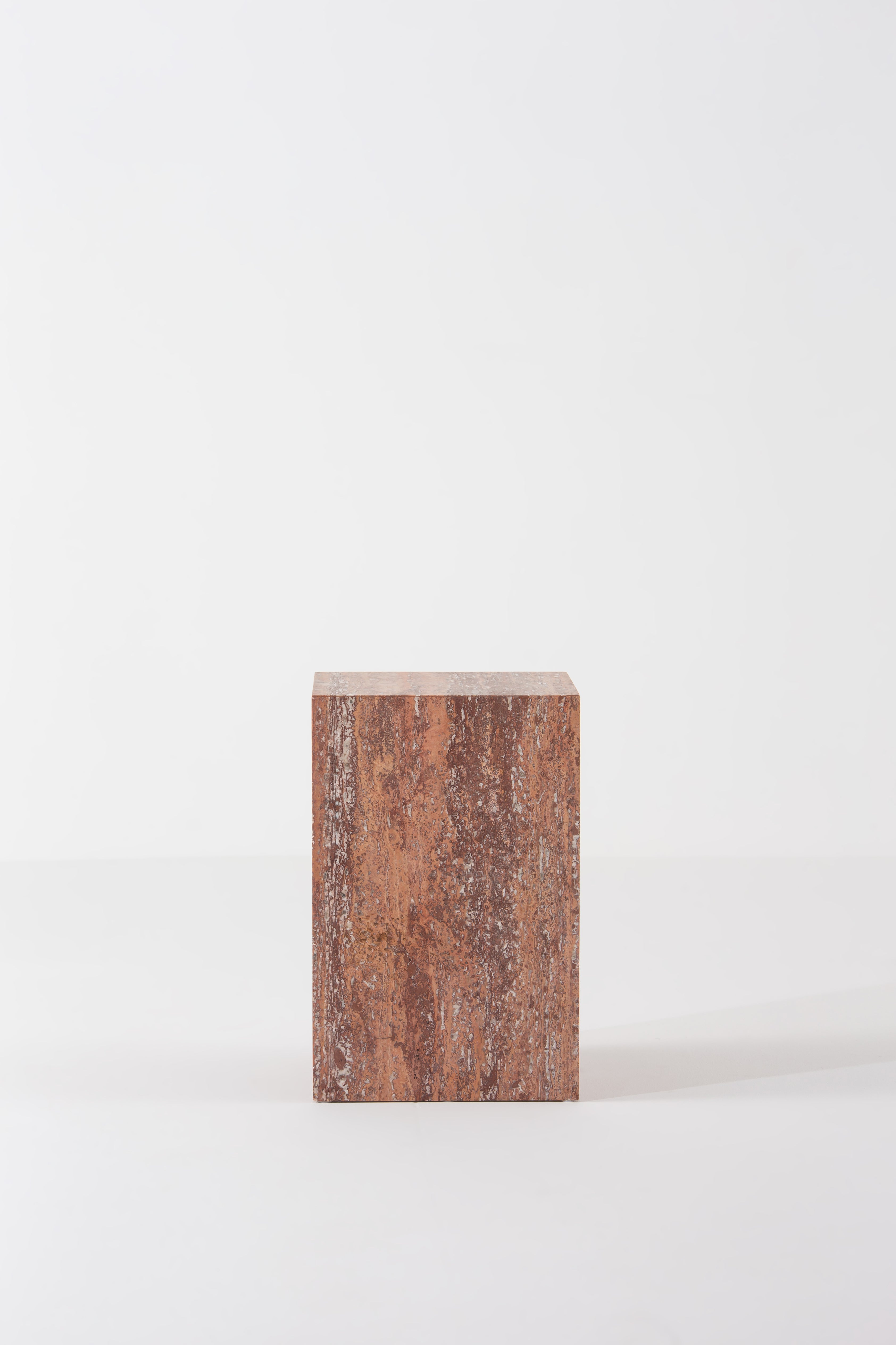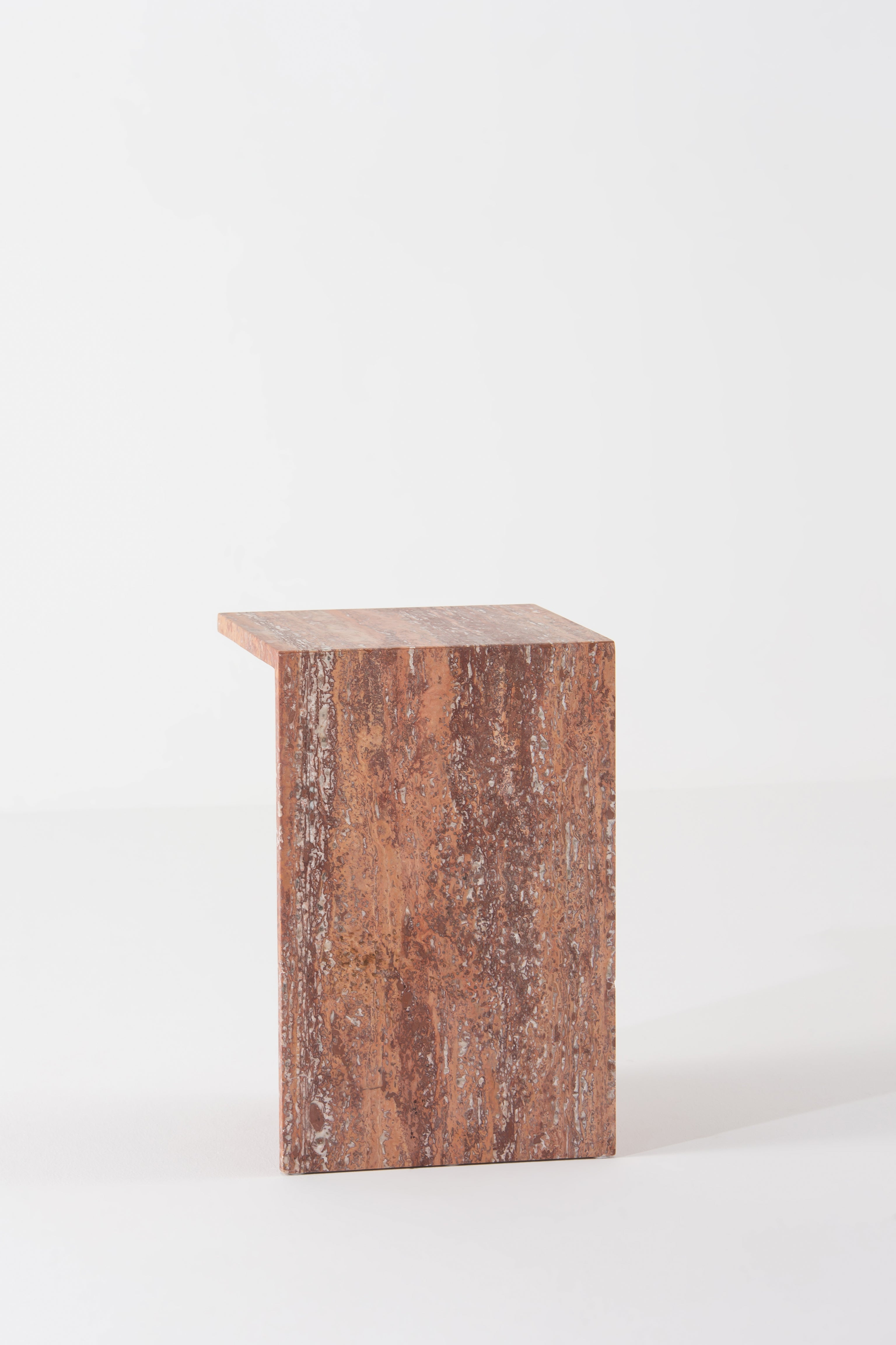 Crafted from honed red travertine, this sculptural side table transforms your space with natural warmth and timeless elegance. The rich, earthy hues and intricate veining create a striking statement, while the geometric silhouette adds a modern touch. Whether placed beside your sofa or as a standalone accent, it blends functionality with art, elevating any setting effortlessly.