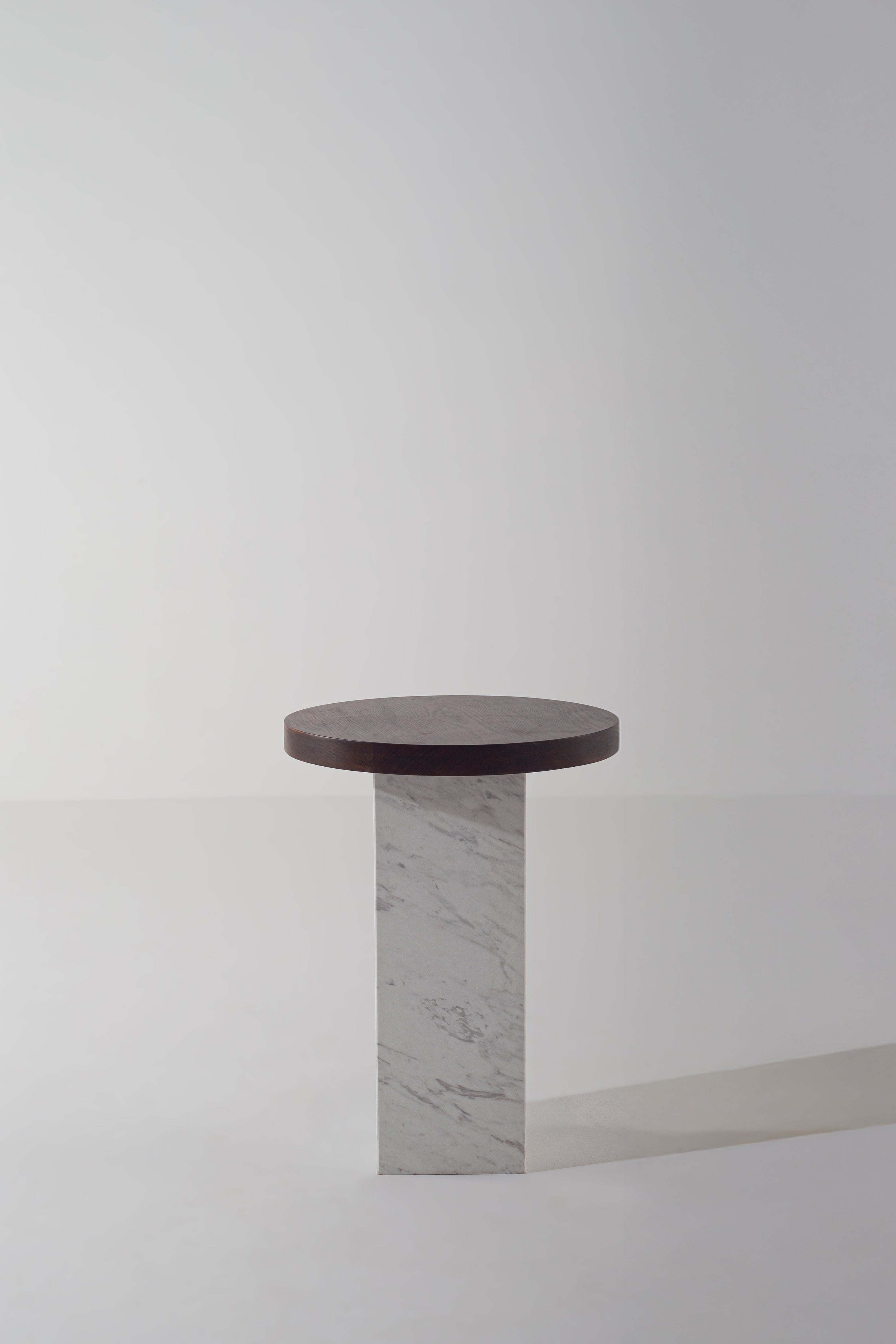 The Cirilla Round Wood Side Table balances simplicity and strength through its refined material pairing. A smooth circular wooden top rests effortlessly on a solid marble base, creating a clean vertical composition with subtle contrast. The warmth of the wood softens the stone’s natural veining, resulting in a calm yet confident presence. Its slender silhouette makes it easy to place beside seating or in quiet corners. Designed to feel understated and architectural, it adds depth without visual clutter.