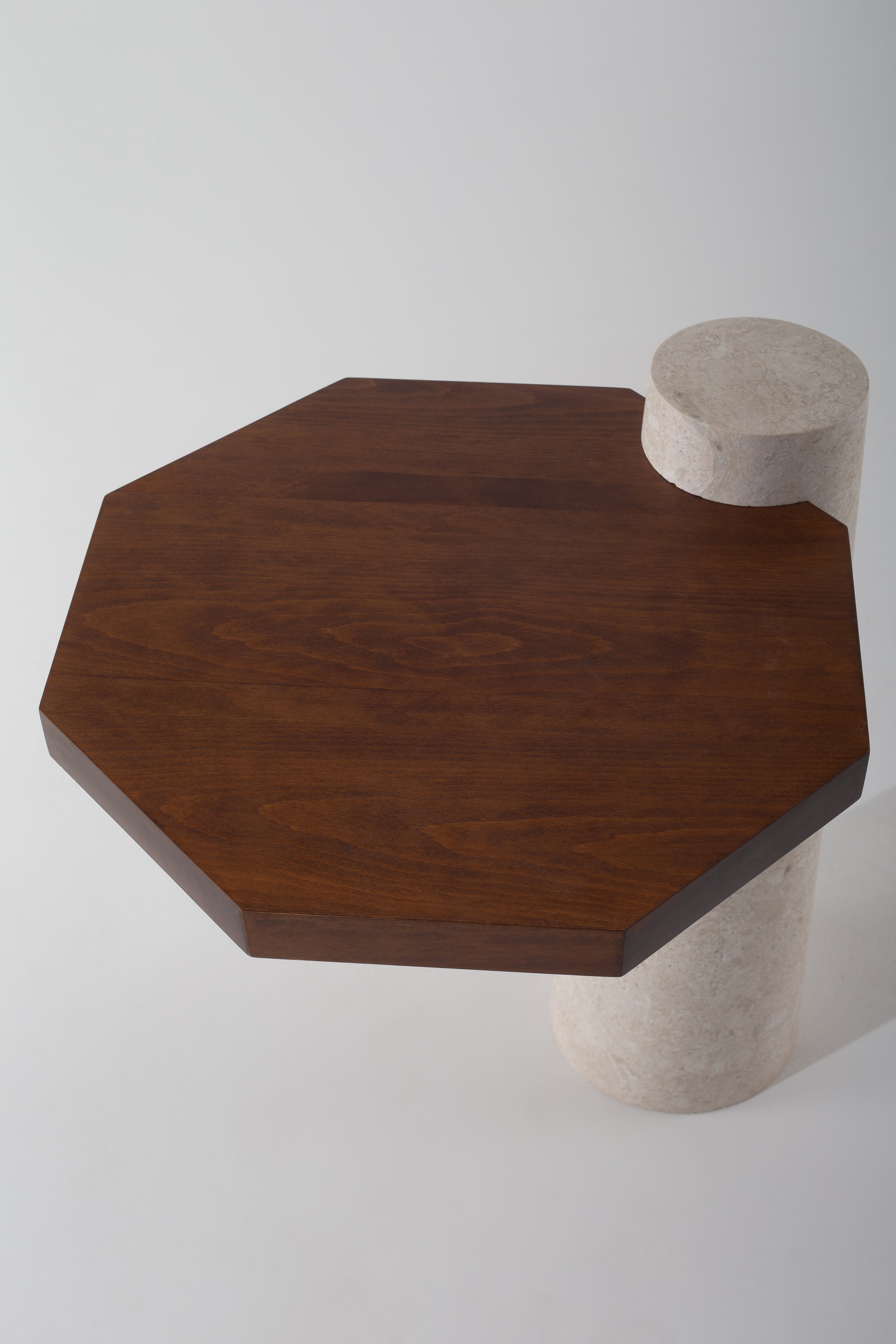 The Octagon Wood Side Table presents a striking contrast between geometry and natural material. Its octagonal wooden top feels precise and architectural, floating effortlessly above a solid stone base that grounds the design with weight and texture. The vertical stone column adds a sculptural quality, while the warm wood surface introduces balance and tactility. This thoughtful composition creates a refined accent that works as both a functional surface and a visual focal point. Ideal for modern interiors, it brings quiet confidence and material depth to any setting.