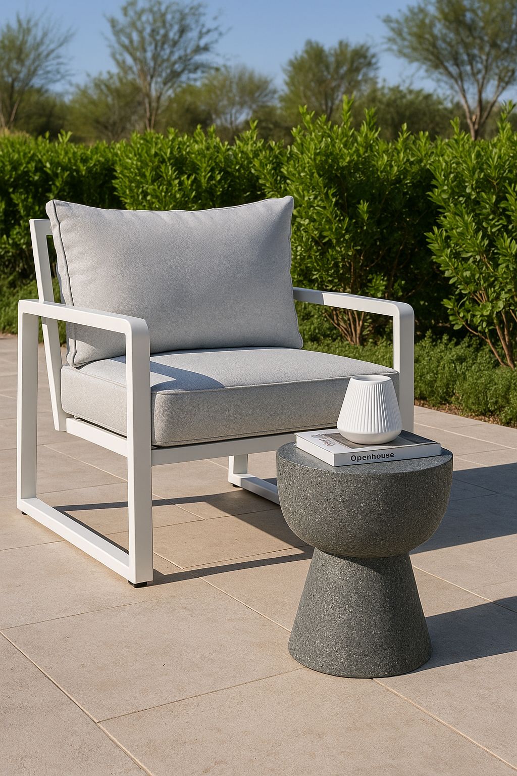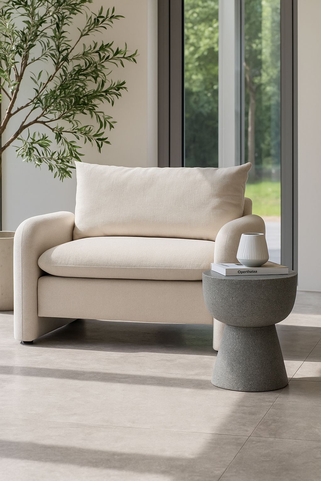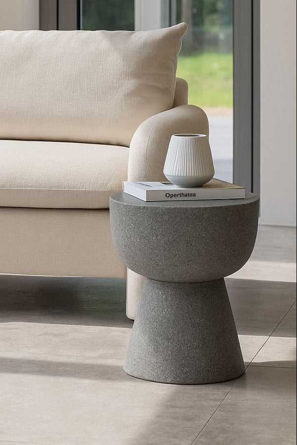 Its compact yet impactful design makes it perfect for urban apartments or spacious villas alike. Designed to withstand wear and remain timeless, the GRC material ensures strength without compromising elegance. Pair it with neutral-toned upholstery or organic materials to highlight its stone-like finish and visual depth. This side table is ideal for placing drinks, books, or decorative objects, providing both form and function in a clean, contemporary package.