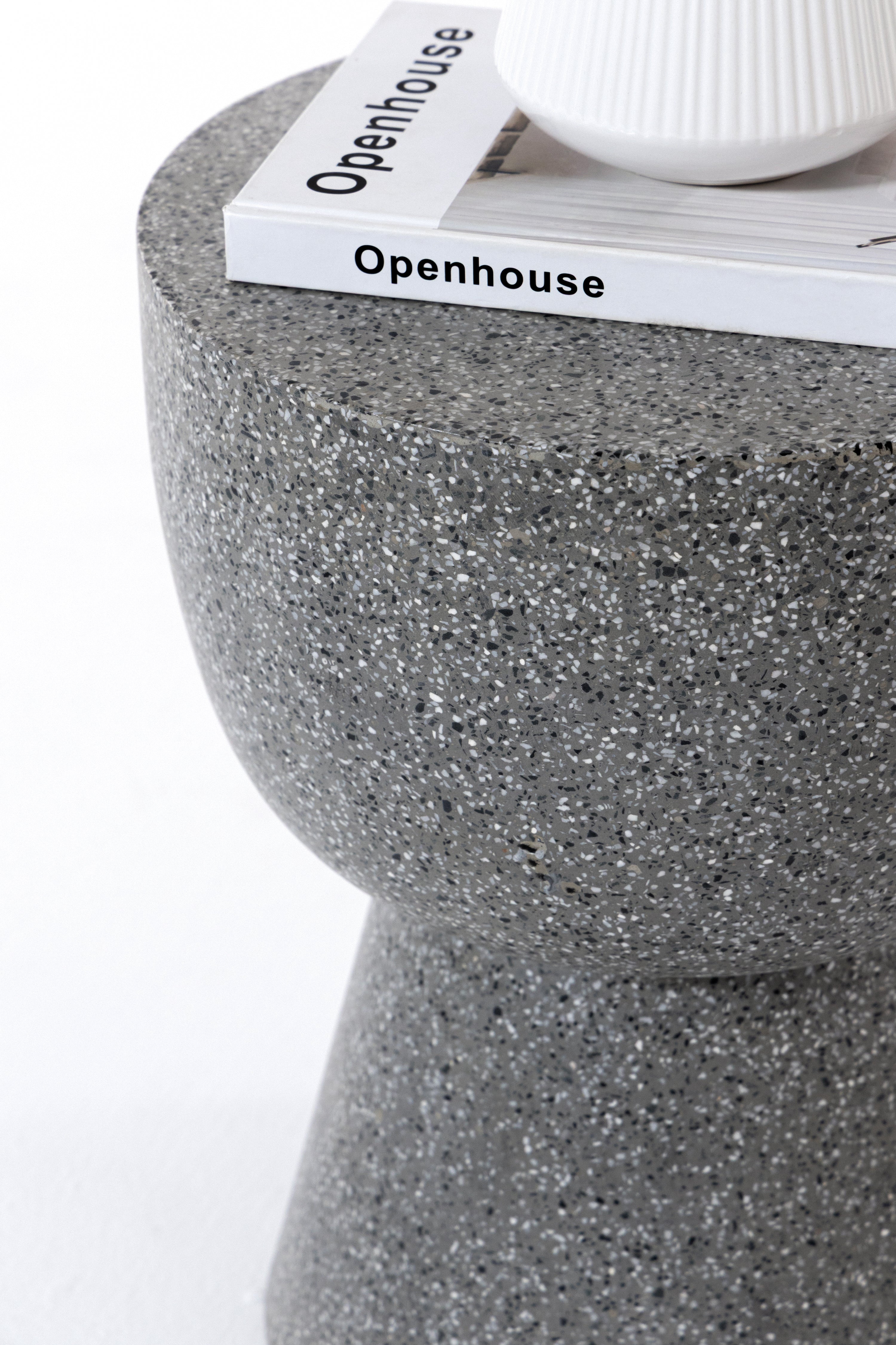 Elevate your interior aesthetic with this beautifully sculpted side table, featuring a bold Graphite Mist terrazzo finish crafted from durable Glass Fiber Reinforced Concrete (GRC). With its smooth, rounded silhouette and minimalist hourglass profile, this accent piece seamlessly merges sculptural artistry and functional design. The terrazzo surface showcases a refined blend of fine black, grey, and white speckles that bring a cool modern texture to any room. Whether used beside a sofa, lounge chair, or bed, this table adds a luxurious and architectural statement to your living space.