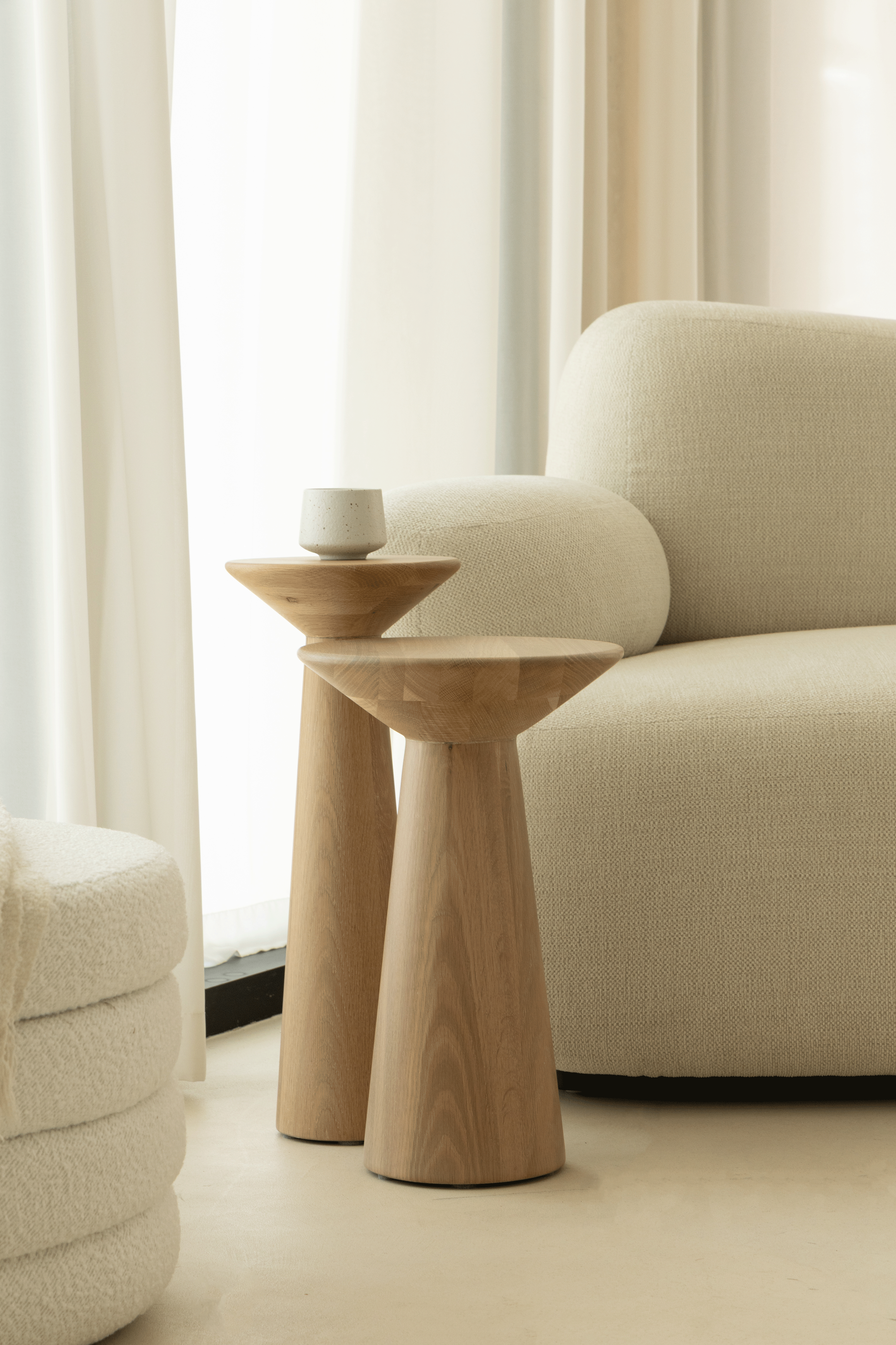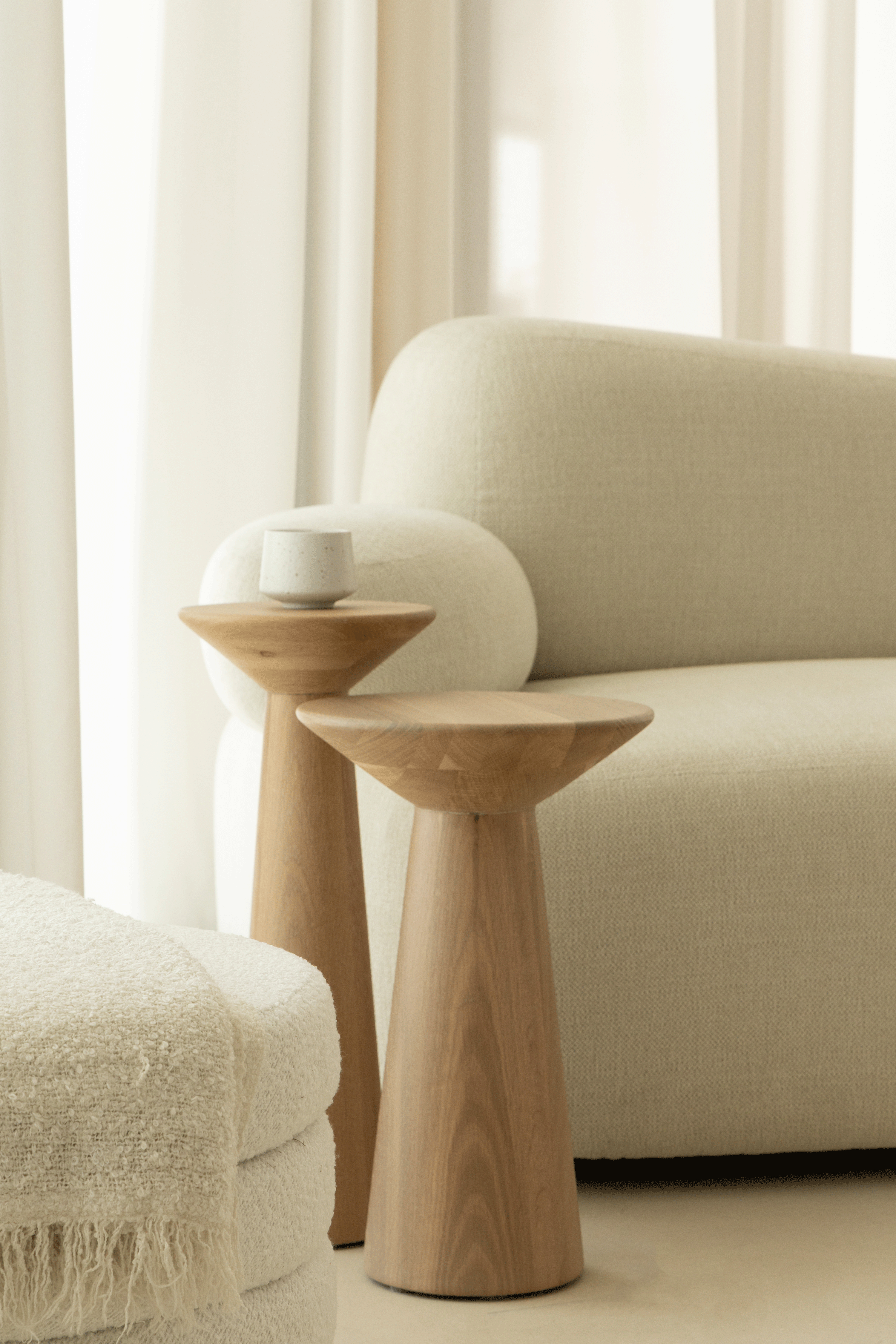 Picture yourself enhancing your living space with a side table that feels like both art and function. With its sculptural cone-shaped base and smooth circular top, this ash white finish creates a warm yet modern aesthetic. The natural wood texture highlights its organic beauty, while the minimalist silhouette makes it versatile enough for bedrooms, living rooms, or entryways. Balanced, refined, and timeless, it adds an elegant accent that centers your décor and makes your style the focus.