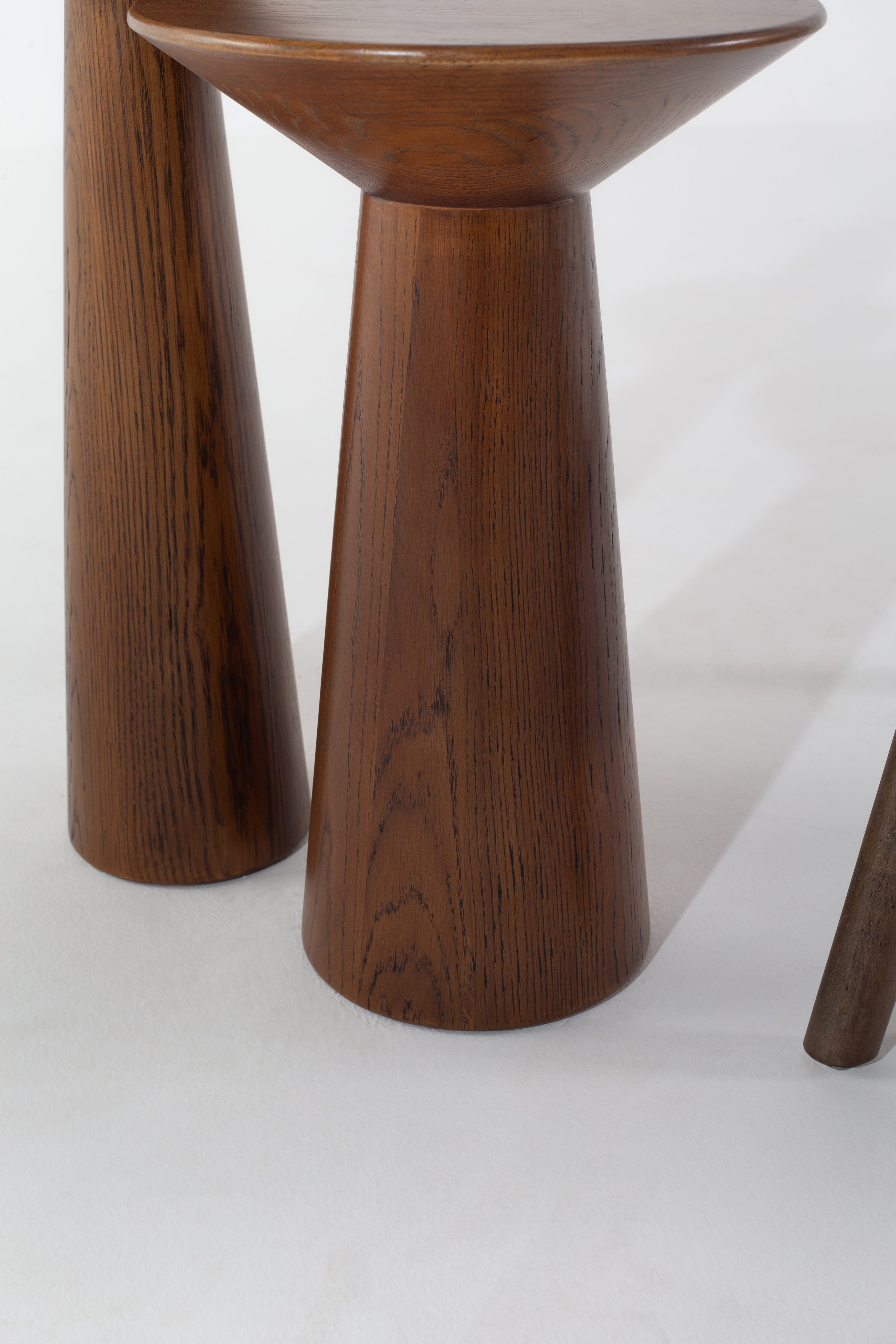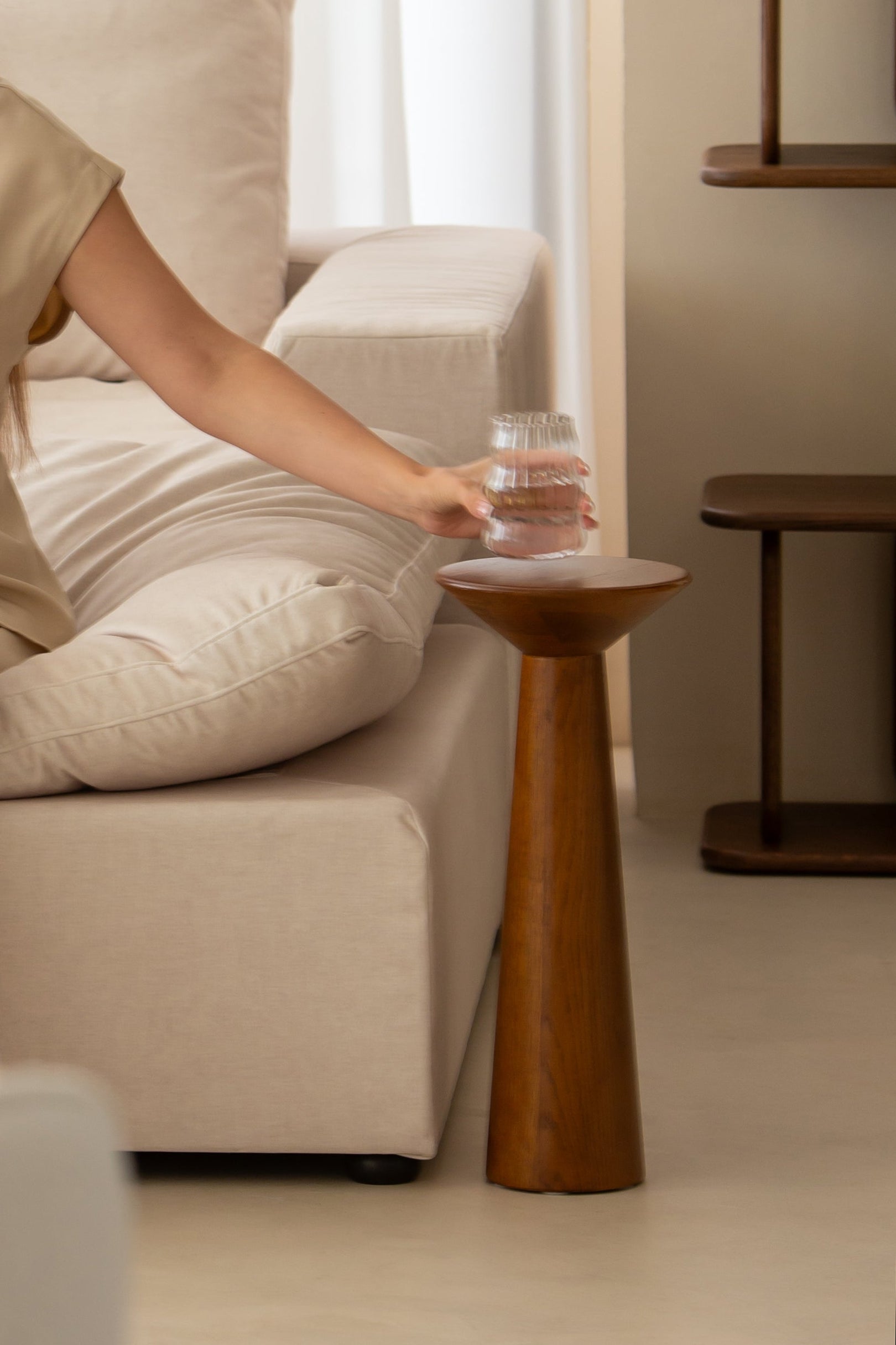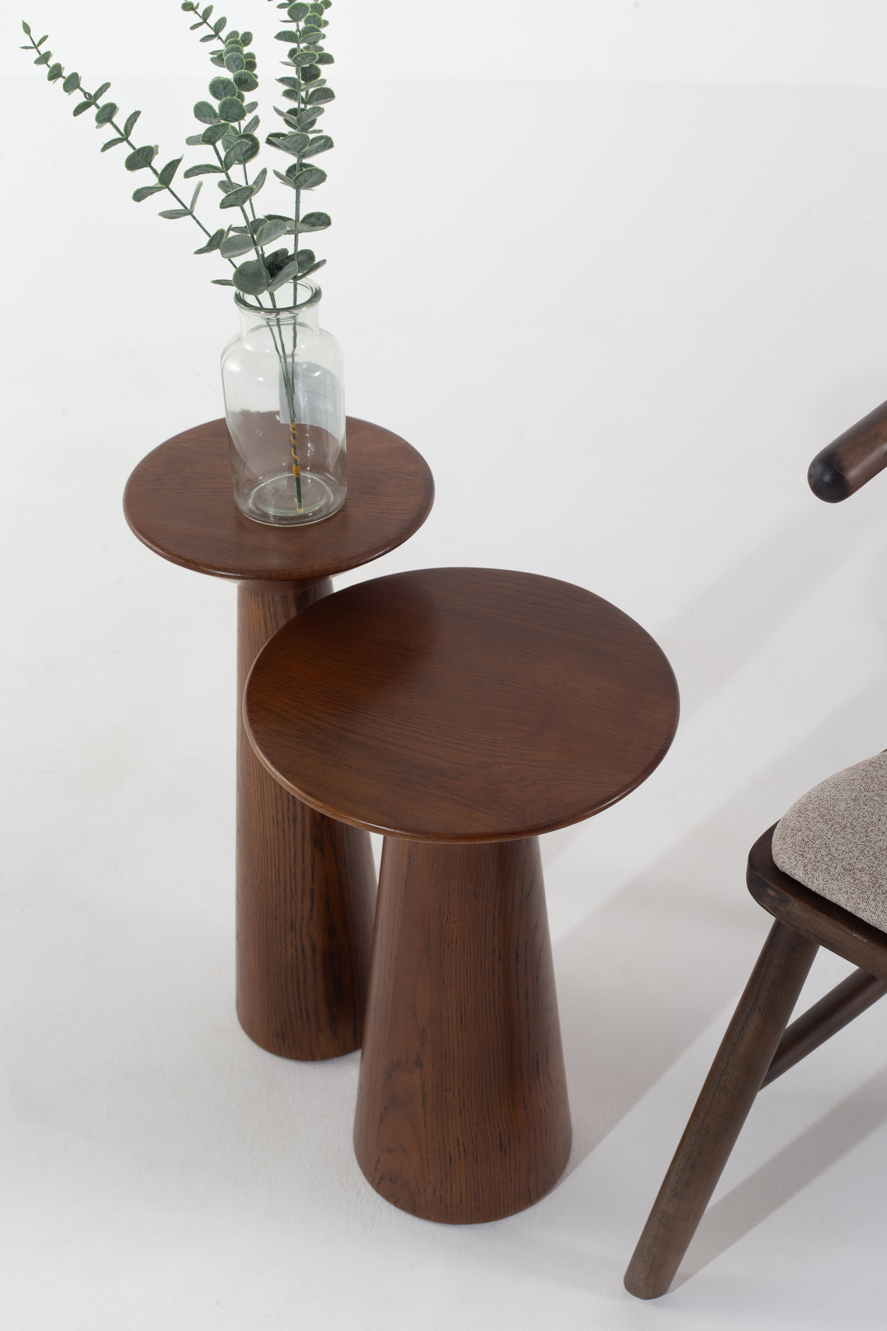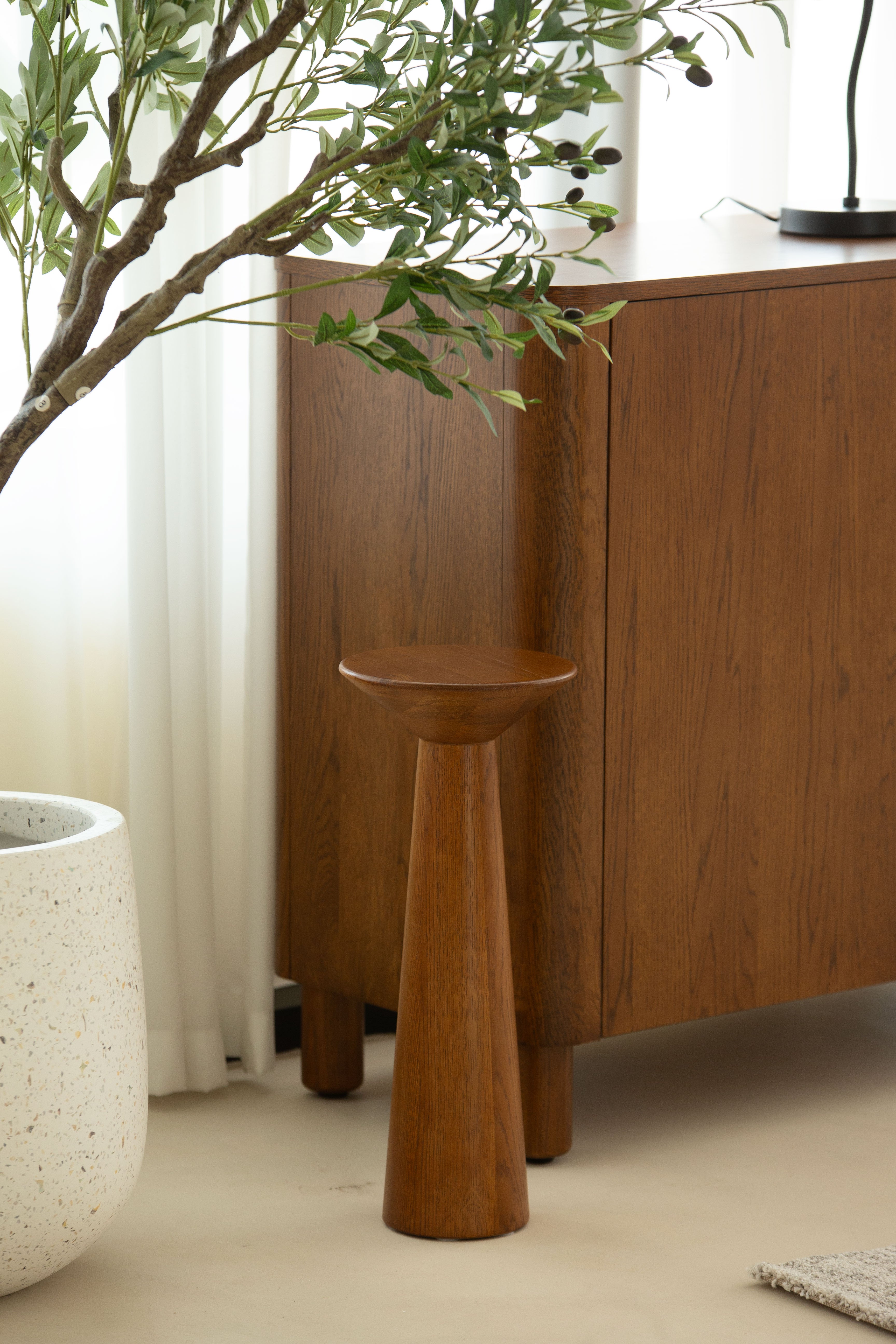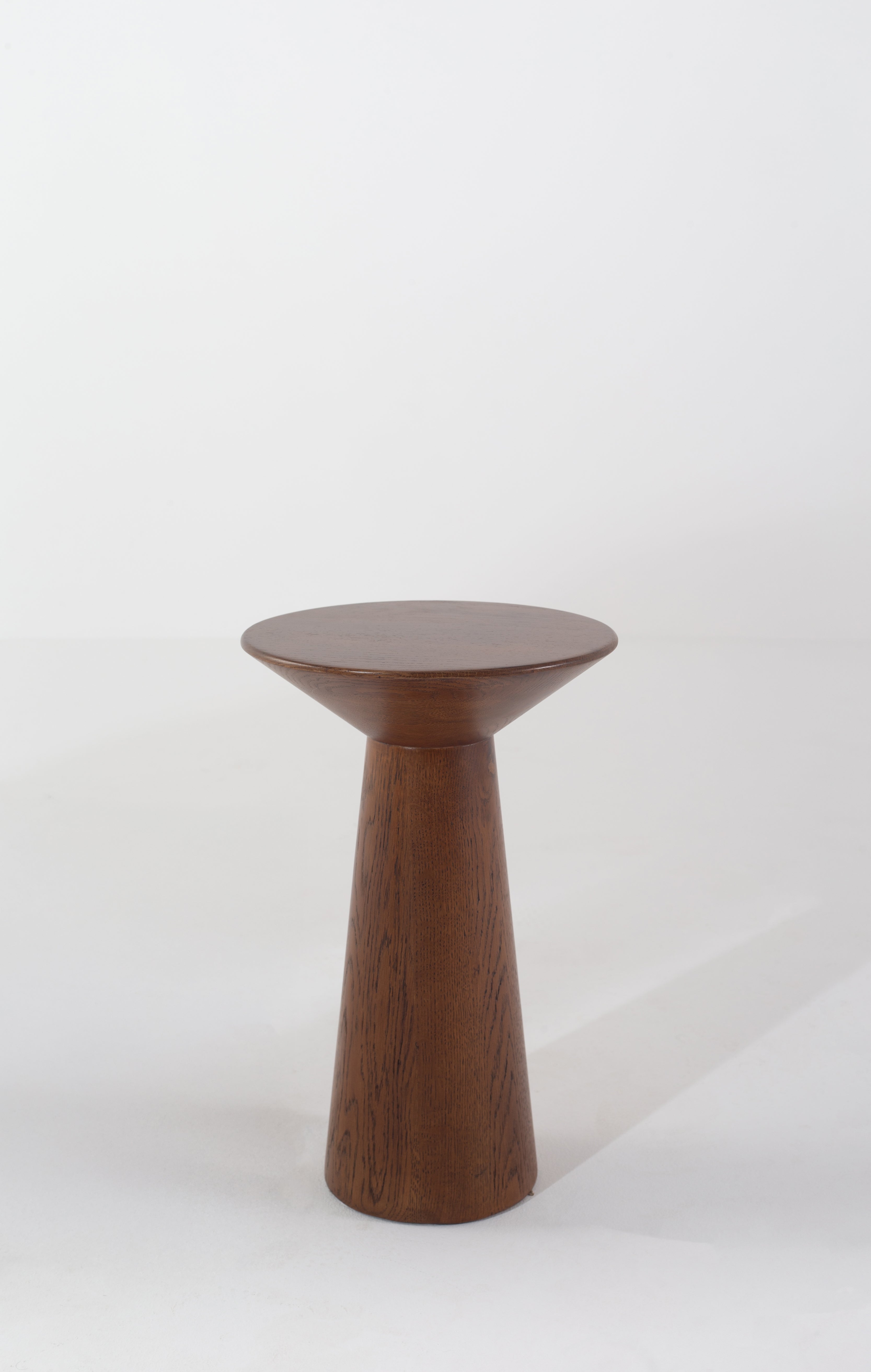 Redefine your living space with the bold elegance of dark wood, where rich grain patterns meet a smooth, refined finish. The sculptural cone base rises gracefully to a wide circular top, blending modern artistry with everyday function. The deep walnut tones add warmth and sophistication, making this piece the perfect balance of style and practicality for your home.
