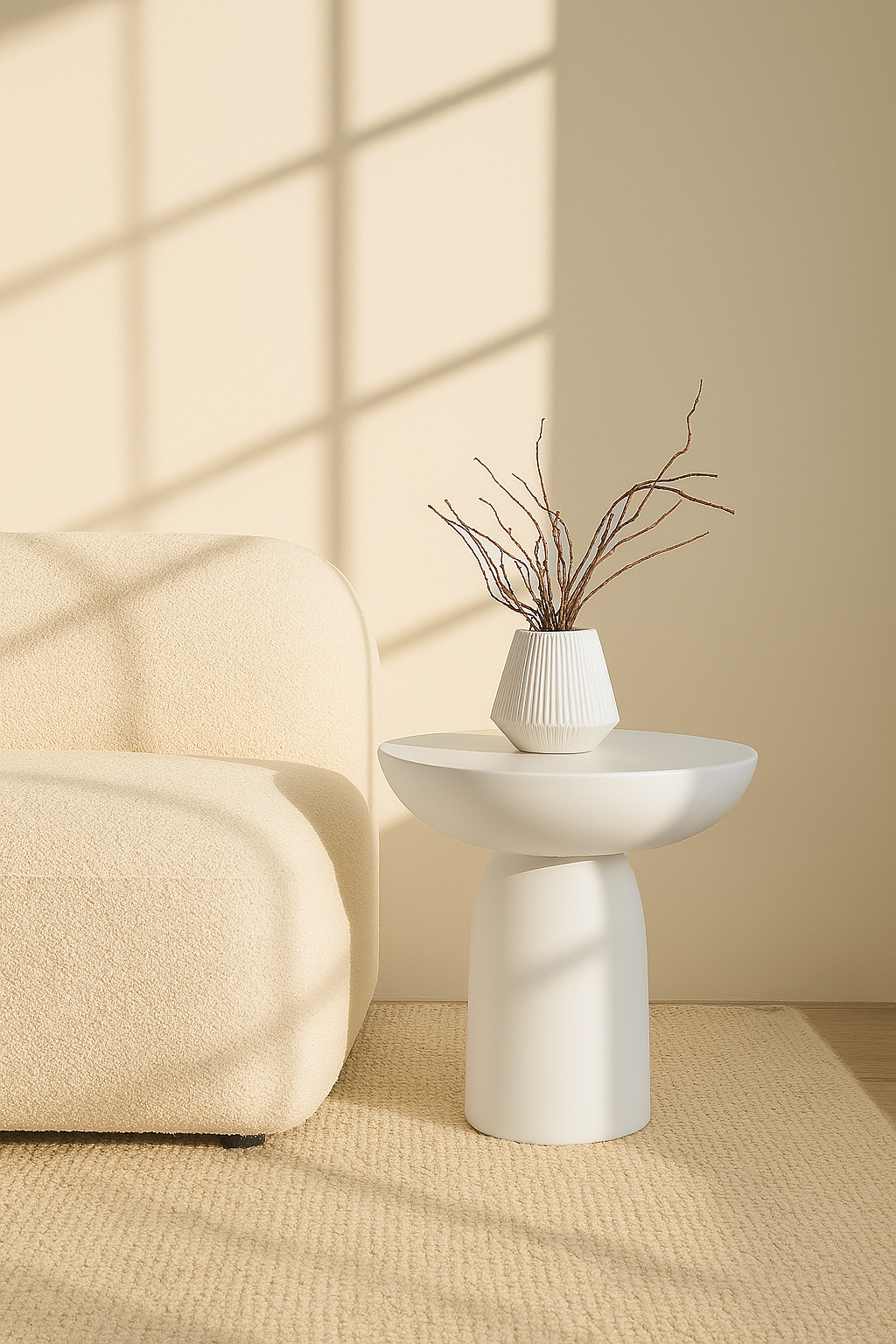 Crafted for design-forward interiors, this white concrete side table is your go-to accent piece for modern minimalism. Made from durable GRC (Glassfiber Reinforced Concrete), it features a bold sculptural silhouette with a round top and tapered cylindrical base. The smooth matte white finish adds an airy yet grounded presence—perfect beside your sofa, bed, or in your reading nook. You’ll love how it adds an architectural touch without overpowering your space, making it ideal for contemporary homes.