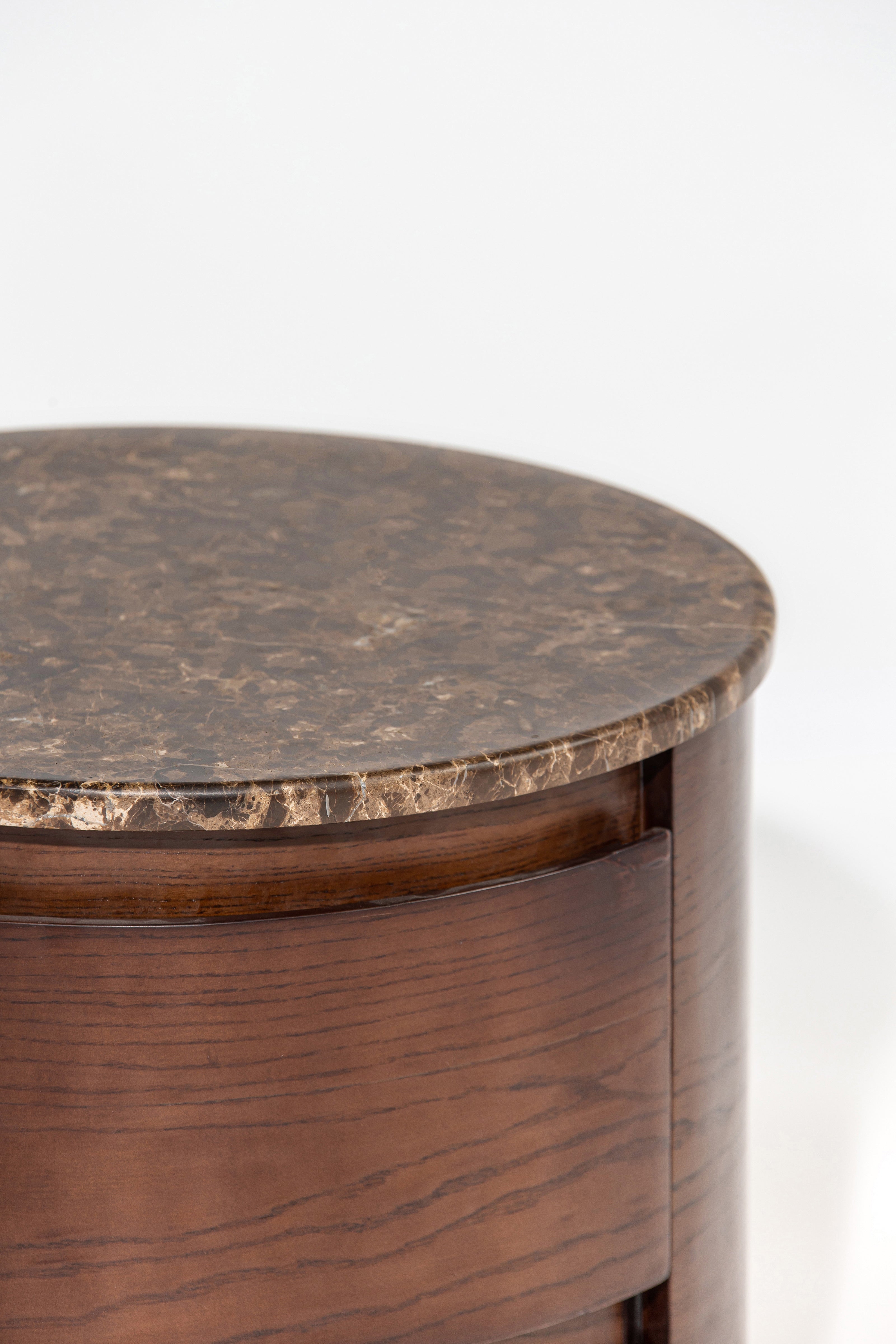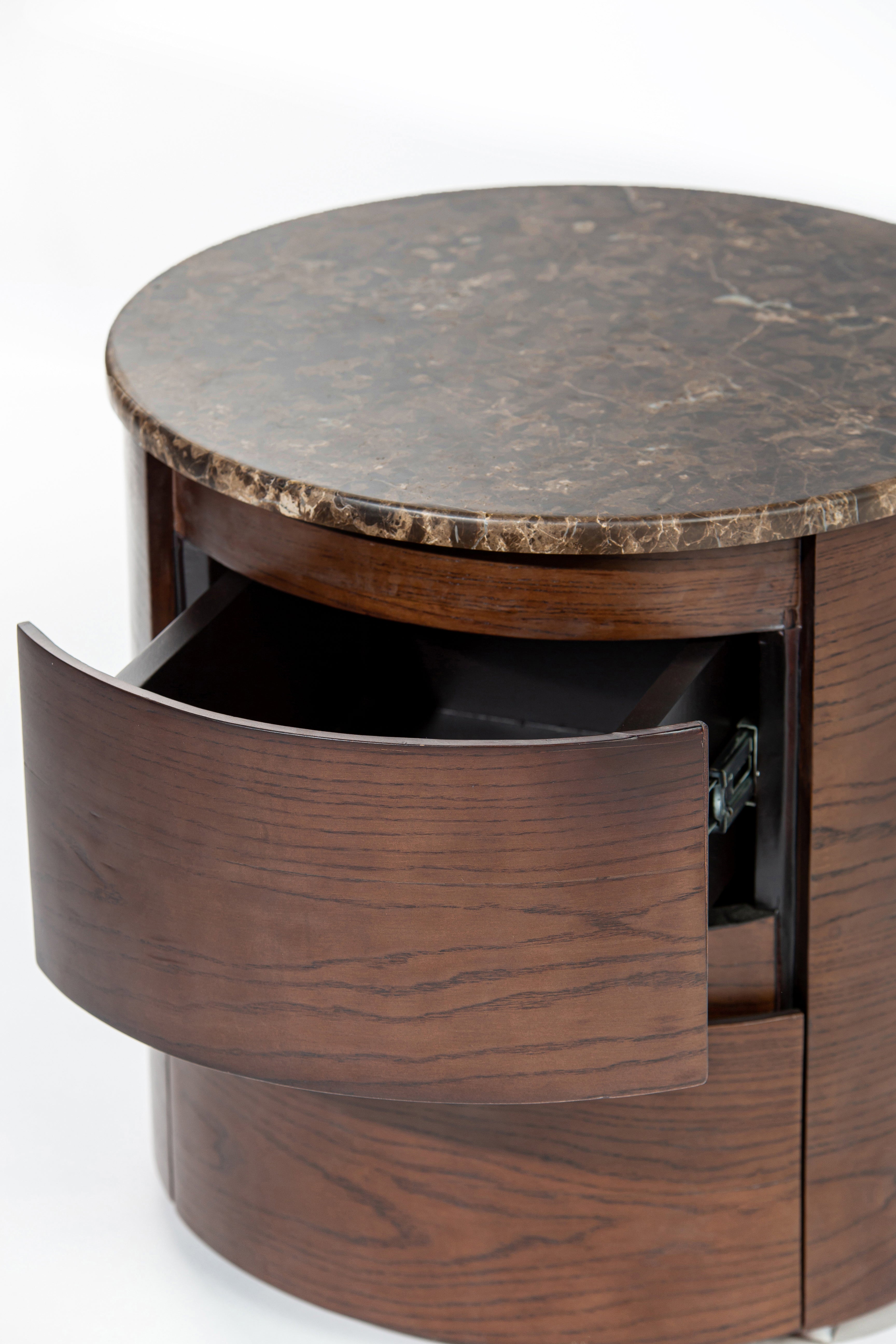 Add a touch of modern refinement to your interior with this rounded side table that effortlessly merges elegance with practicality. The sleek circular top offers the perfect surface for decorative accents, lighting, or daily essentials, while the built-in drawers provide discreet storage to keep your space organized. Ideal for living rooms, bedrooms, or lounge areas, this compact piece is a stylish storage solution for those who value both form and function.