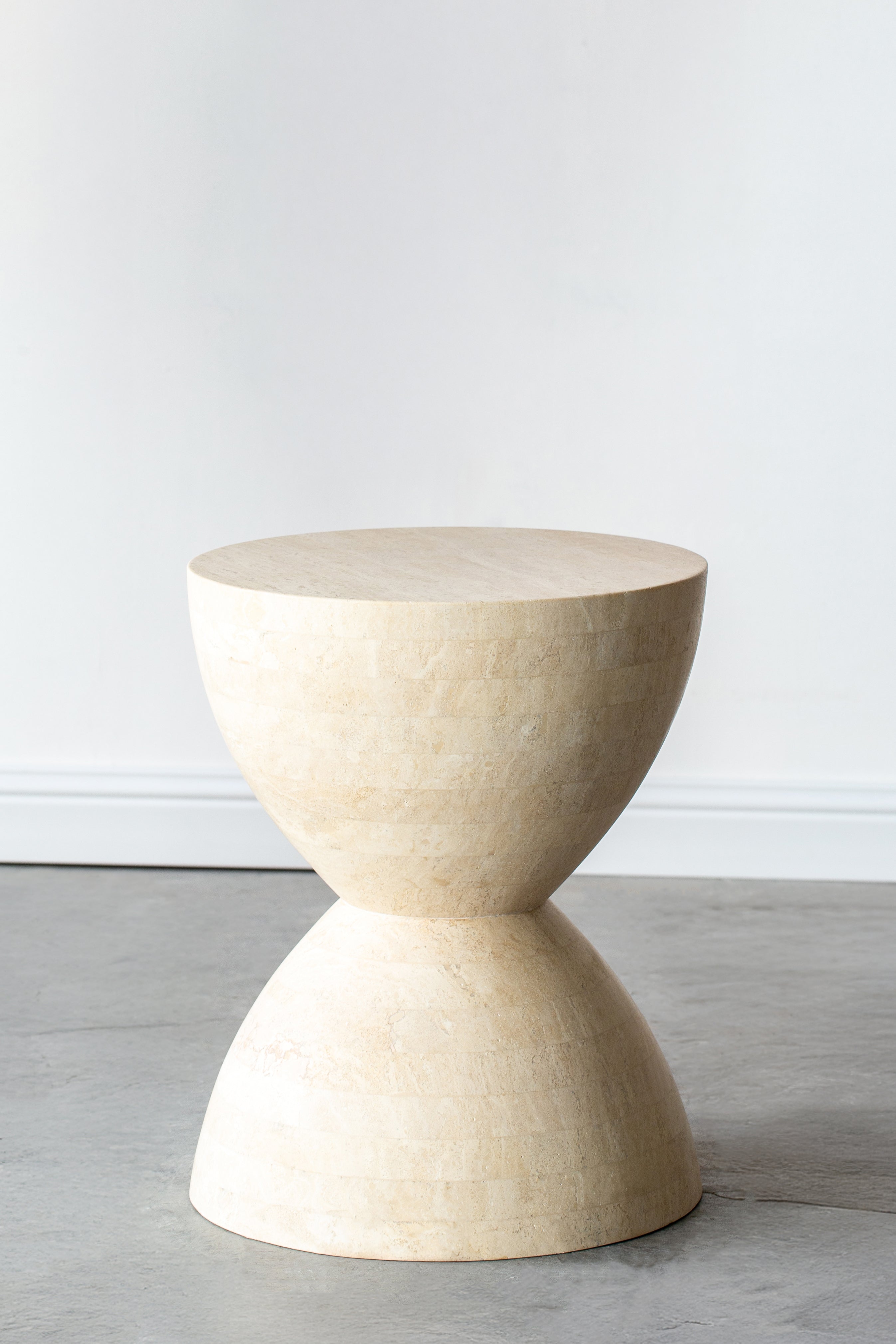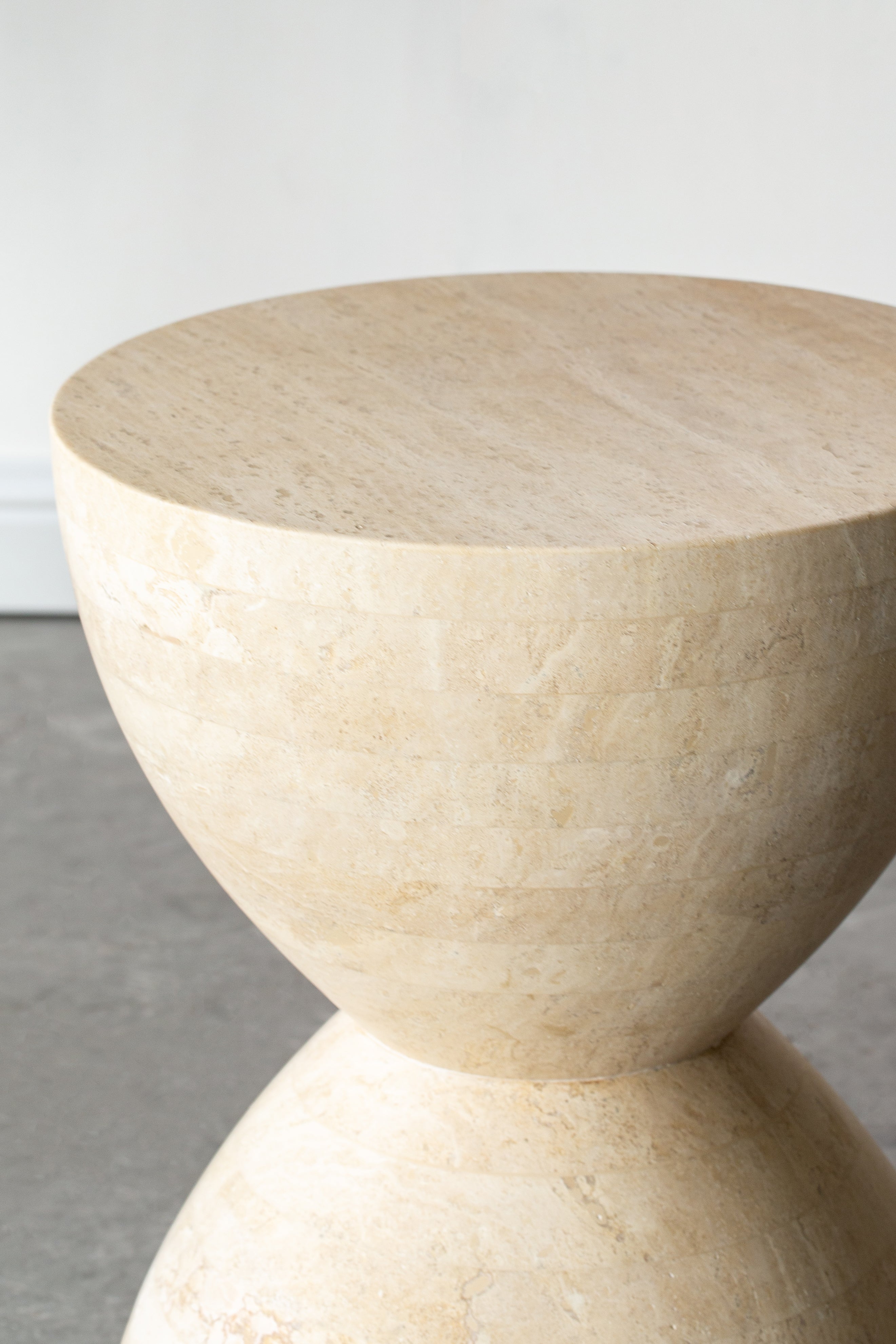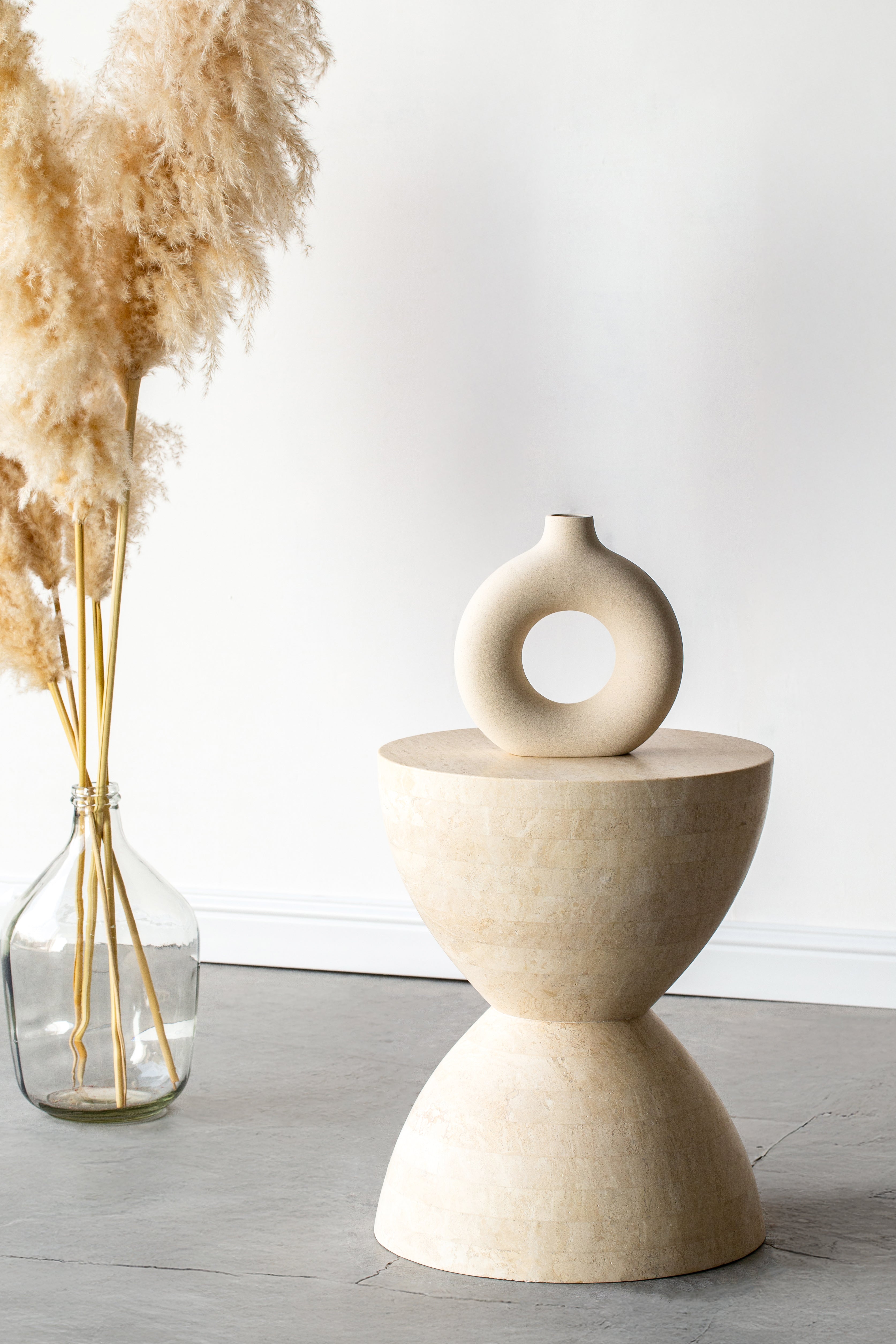 Elevate your space with our Travertine Hourglass Side Table, a stunning combination of elegance and functionality. Its unique hourglass shape and natural travertine construction make it a stylish and versatile addition to any room.