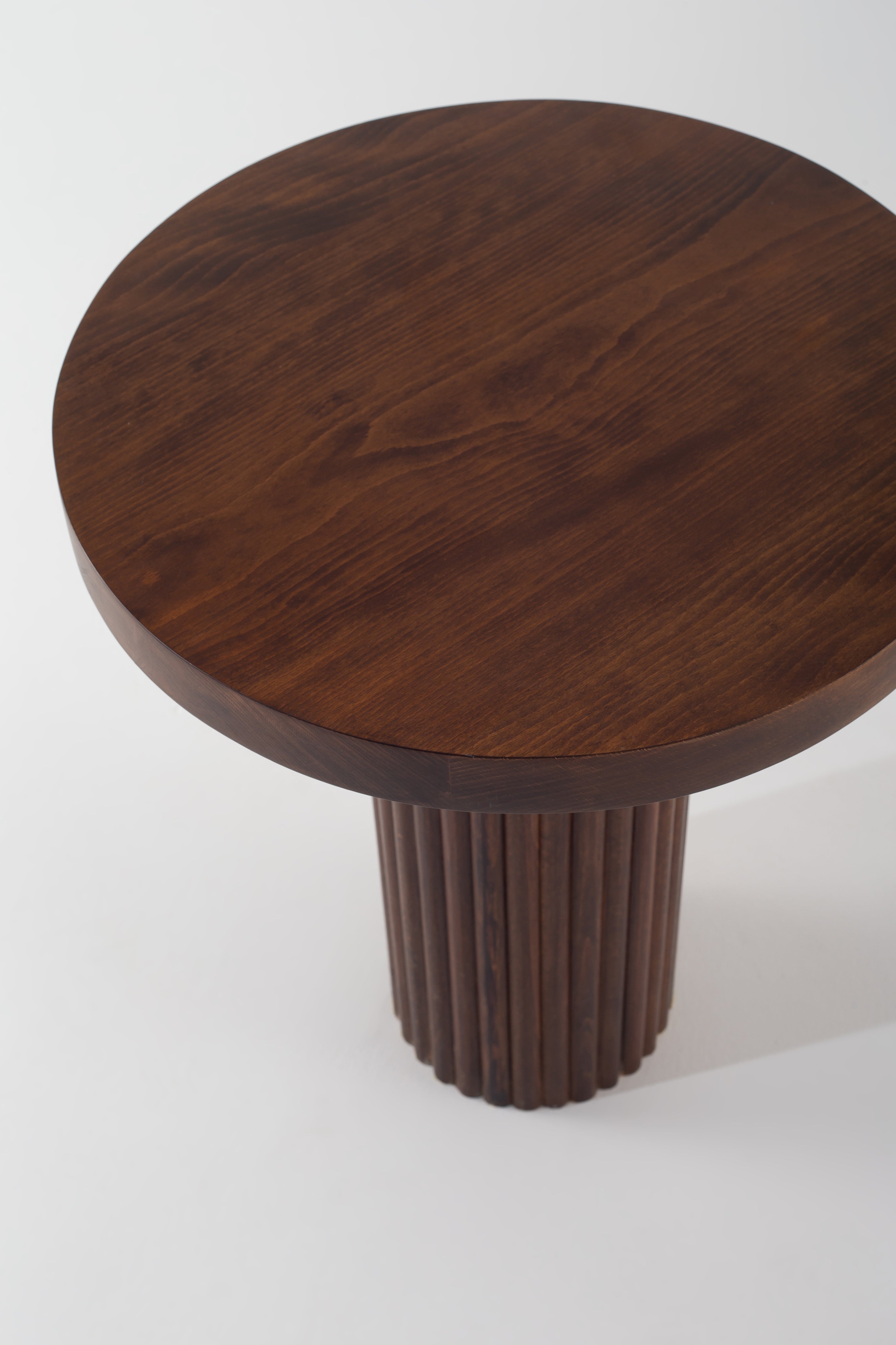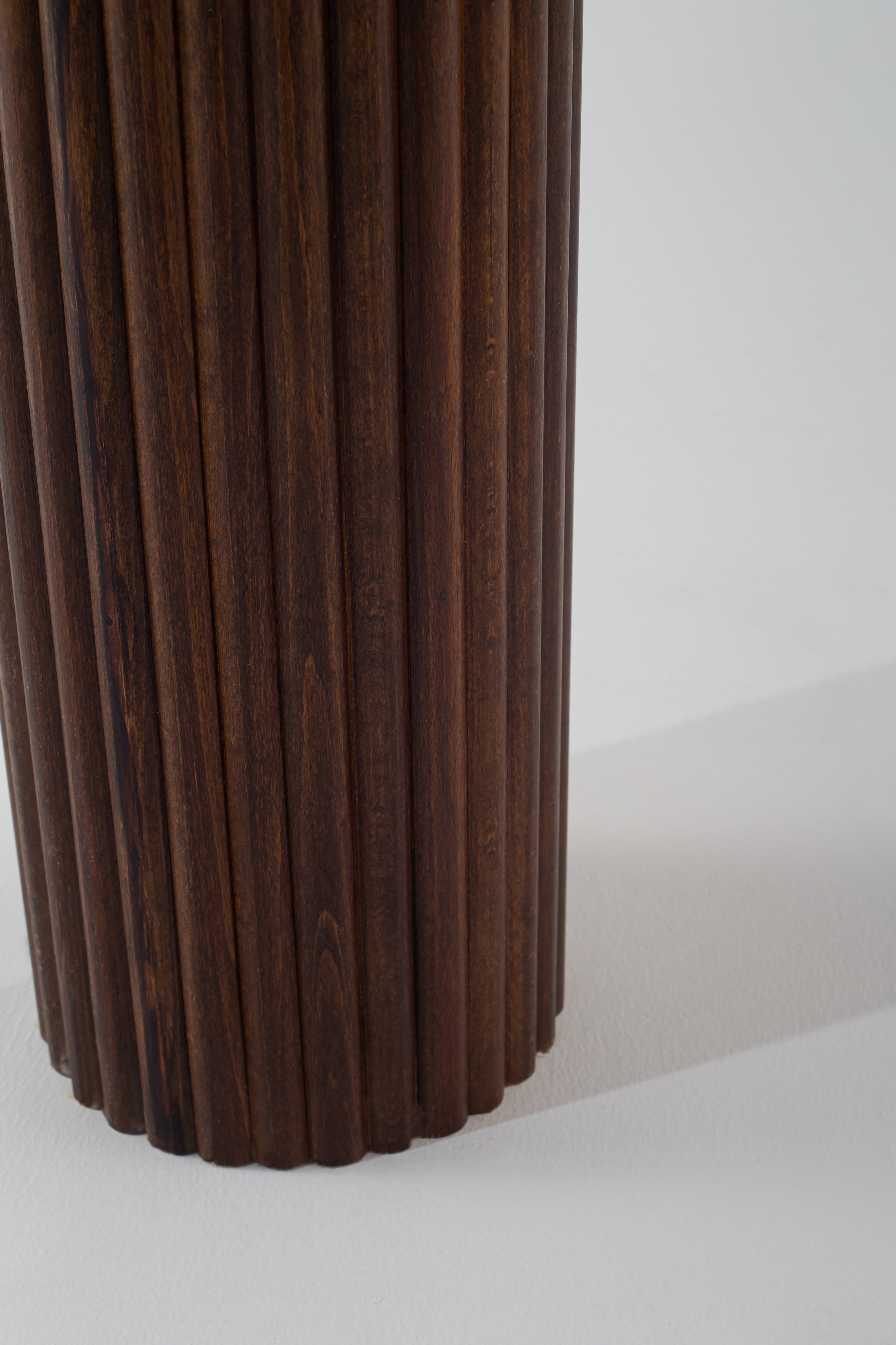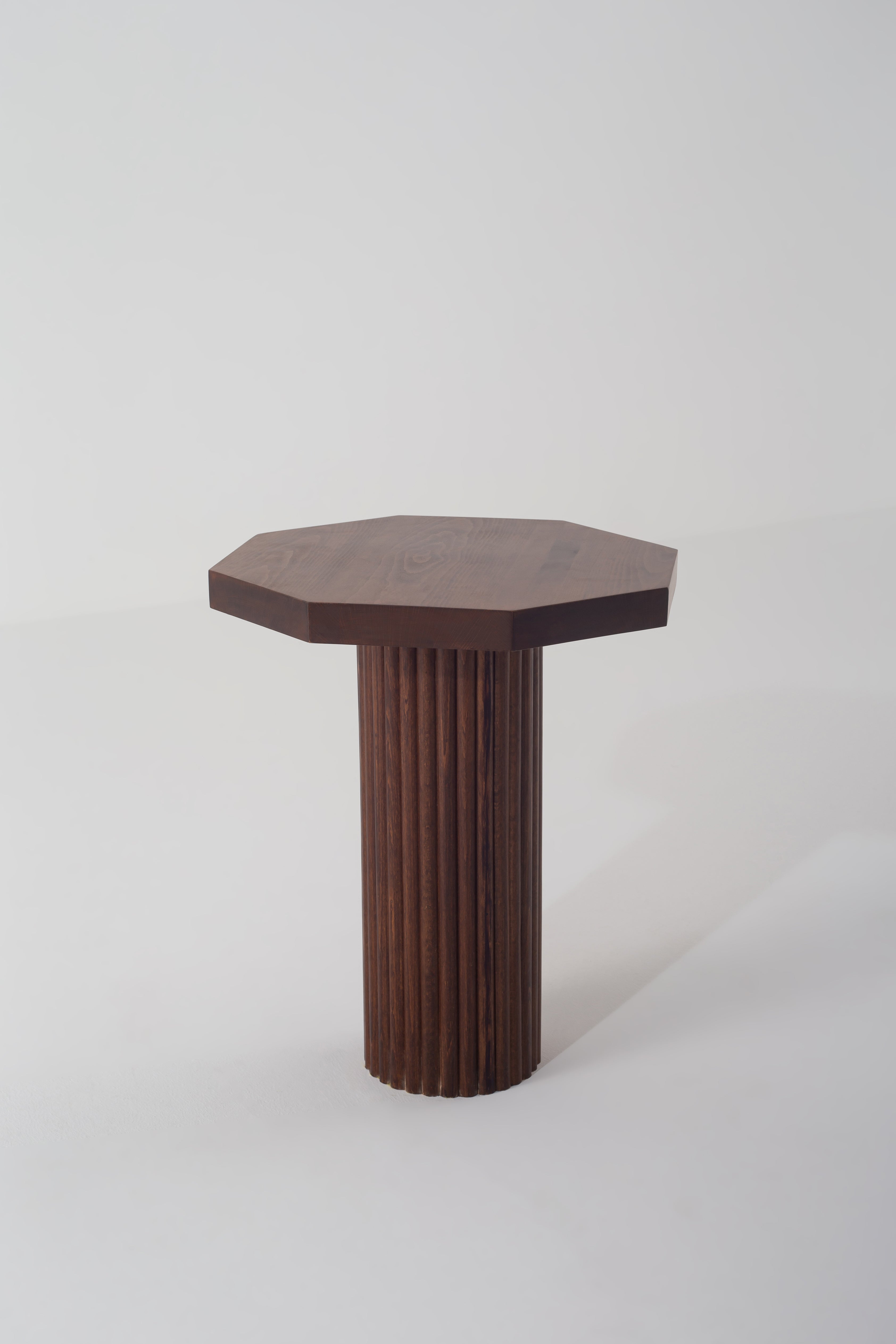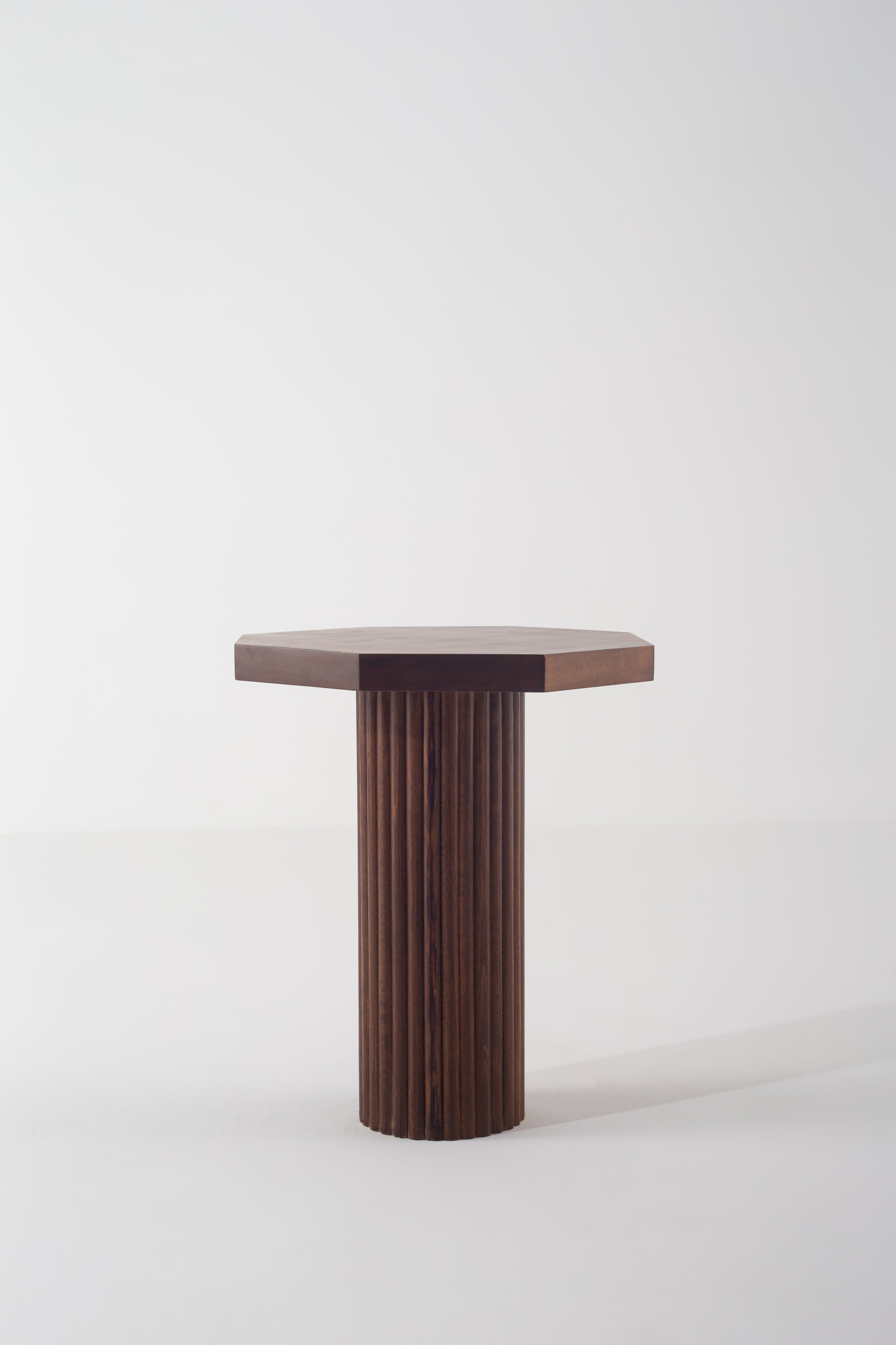 Your space deserves a striking accent, and this side table delivers. Featuring a bold wooden base with vertical fluting, it pairs seamlessly with your choice of tabletop—sleek marble, organic travertine, or deep wood—each offering a distinct aesthetic. The geometric top, available in round or octagonal shapes, enhances the sculptural appeal, making it a conversation-worthy piece in any modern or contemporary interior. Whether placed beside your sofa, armchair, or bed, this table adds both function and a touch of artisanal craftsmanship to your décor.