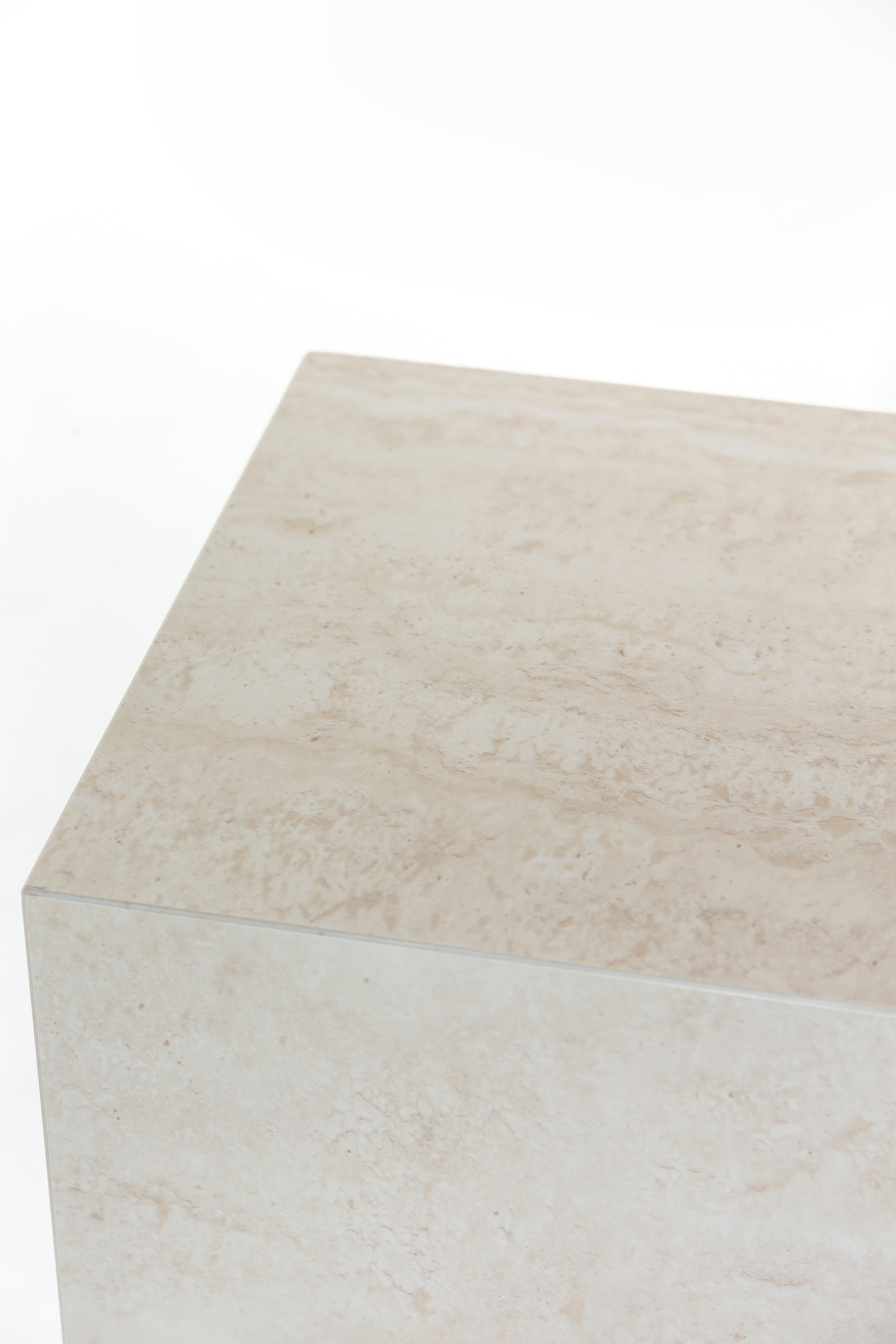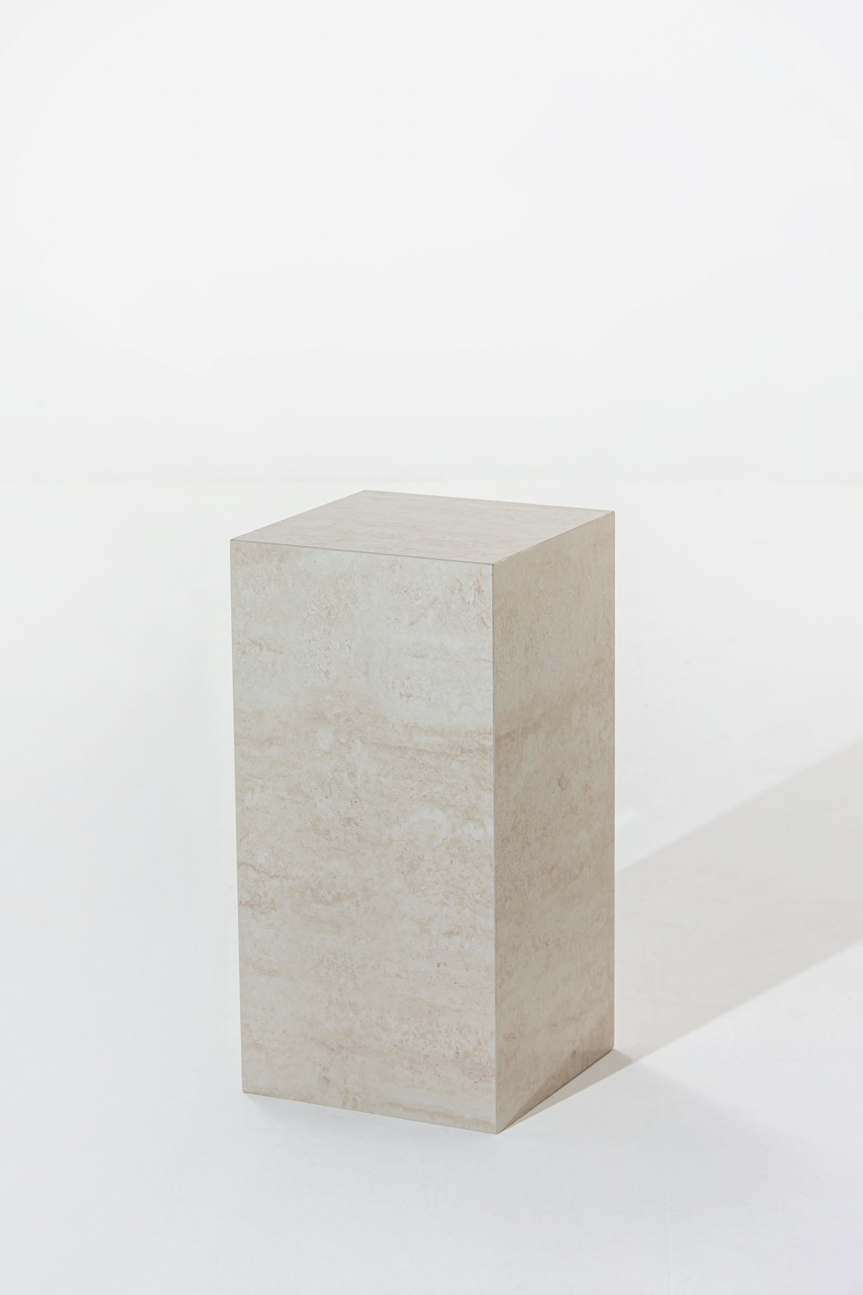 Elevate your space with the timeless elegance of this Porcelain Beige Travertine Glossy pedestal. Crafted with a sleek rectangular form and polished finish, its warm beige tones and subtle natural variations complement both minimalist and luxurious interiors. Perfect for displaying sculptures, plants, or art pieces, this versatile travertine plinth brings refined sophistication to any setting, making your most cherished items the true focal point.