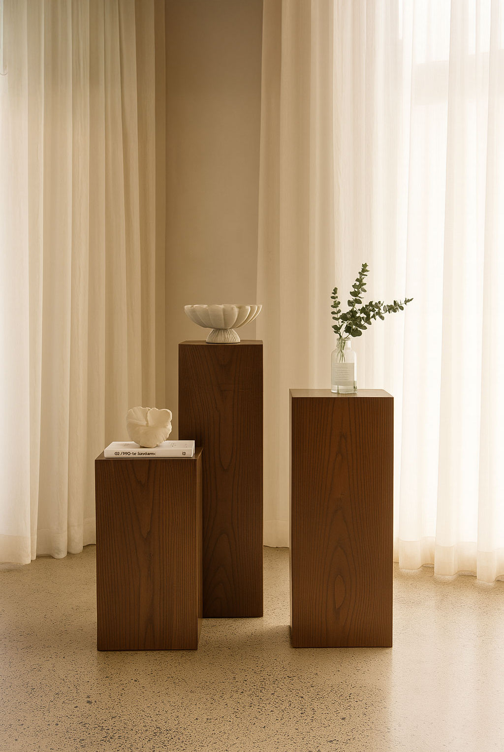 Crafted from smooth, durable MDF wood and finished in a warm chestnut brown, this sleek rectangular pedestal offers the perfect minimalist foundation to elevate your decor. Its rich, earthy tone and versatile design make it ideal for showcasing sculptures, floral arrangements, art pieces, or statement objects. Whether used for weddings, events, or enhancing your interior styling, this modern chestnut plinth is a timeless display solution that adds depth, dimension, and sophistication to any setting.
