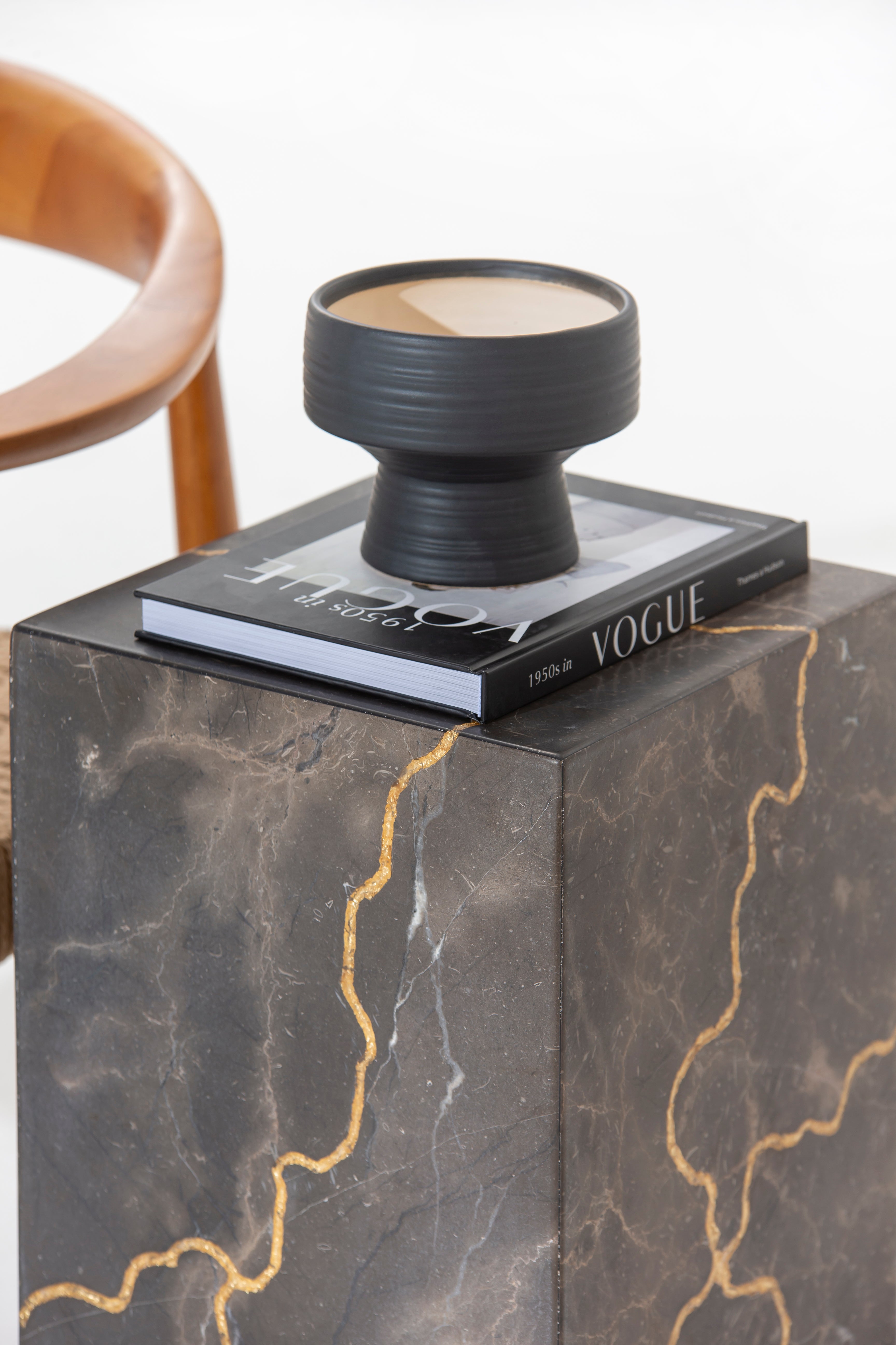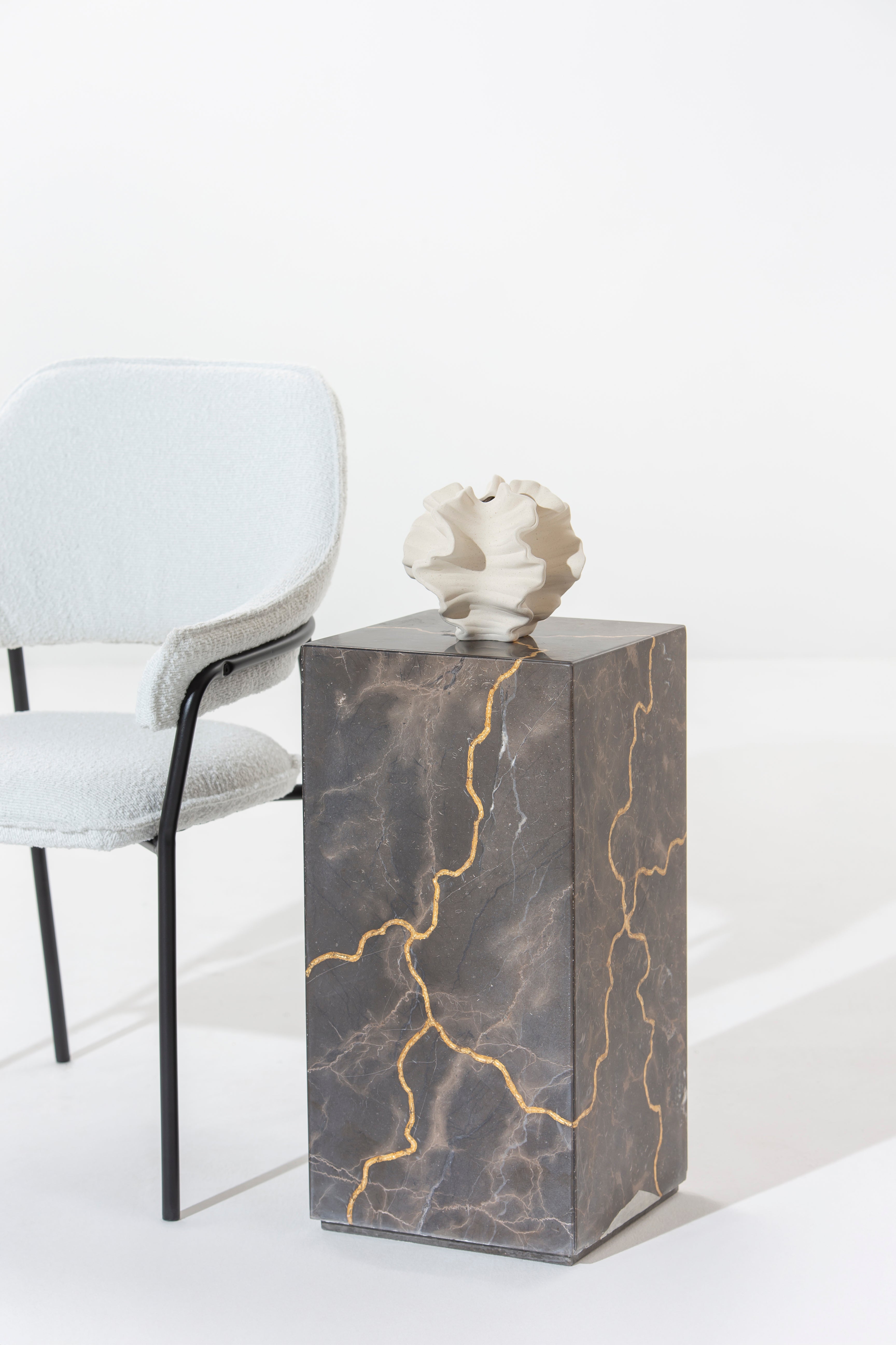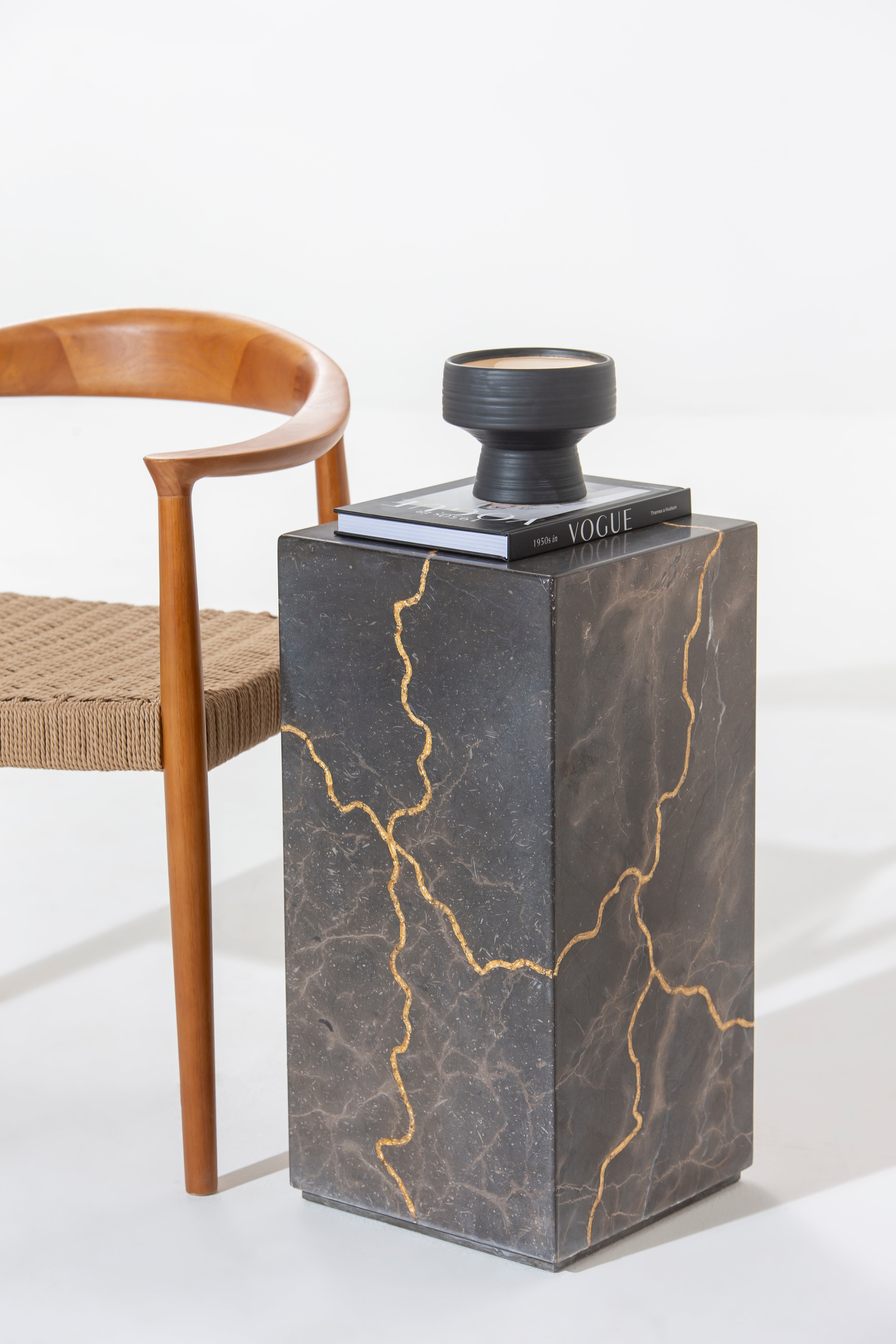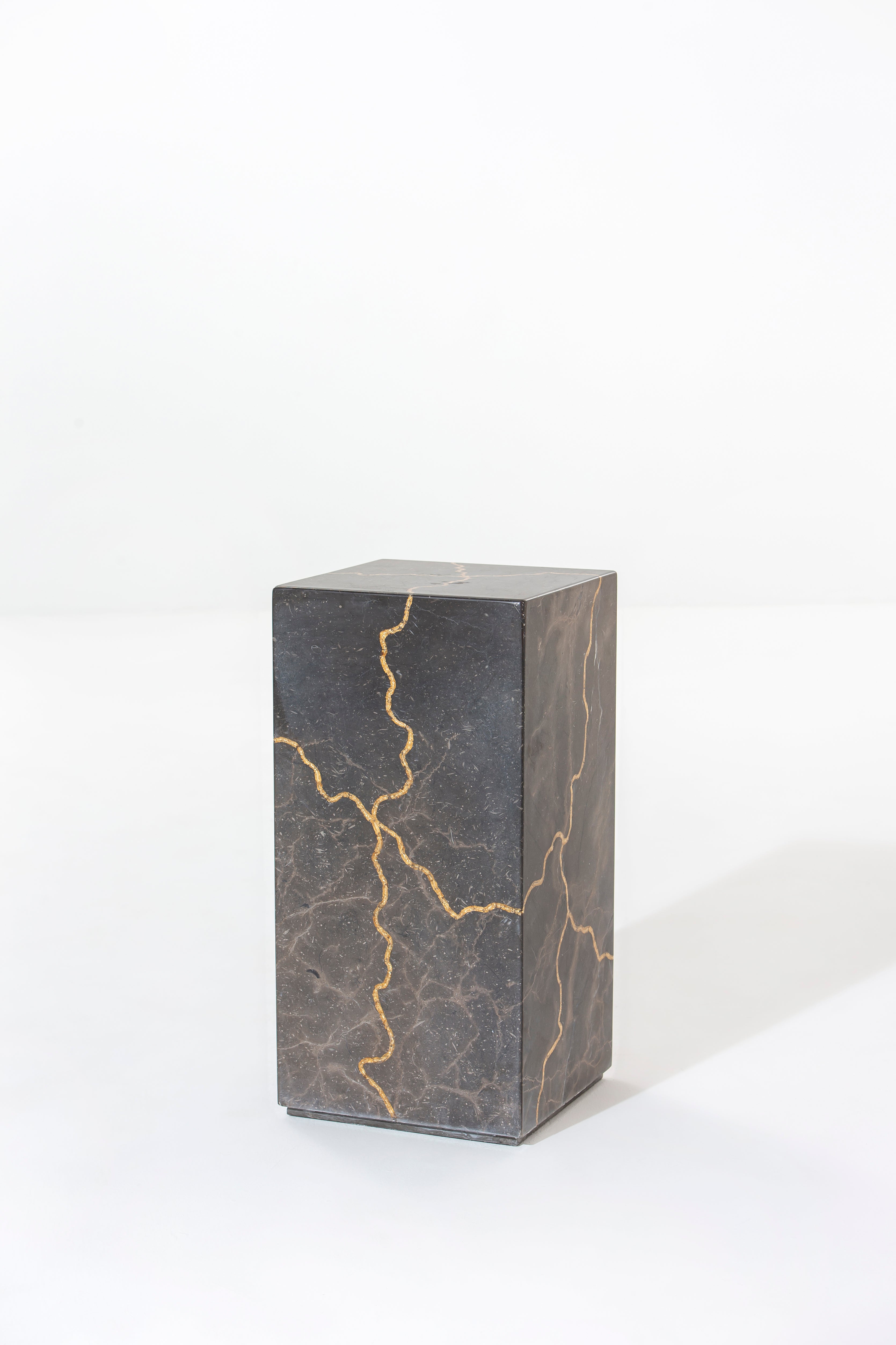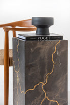 Imagine this sleek, rectangular plinth, meticulously crafted from engraved marble featuring stunning gold-colored veining that dances across its deep, textured surface. The luxurious fusion of intricate engraving and gleaming gold veins forms an artistic, cracked-effect mosaic, offering a bold and sculptural focal point. Whether displaying fine art, sculpture, or a statement plant, this modern pedestal adds a refined, gallery-like presence to any space—perfect for those with a taste for striking, elevated design.