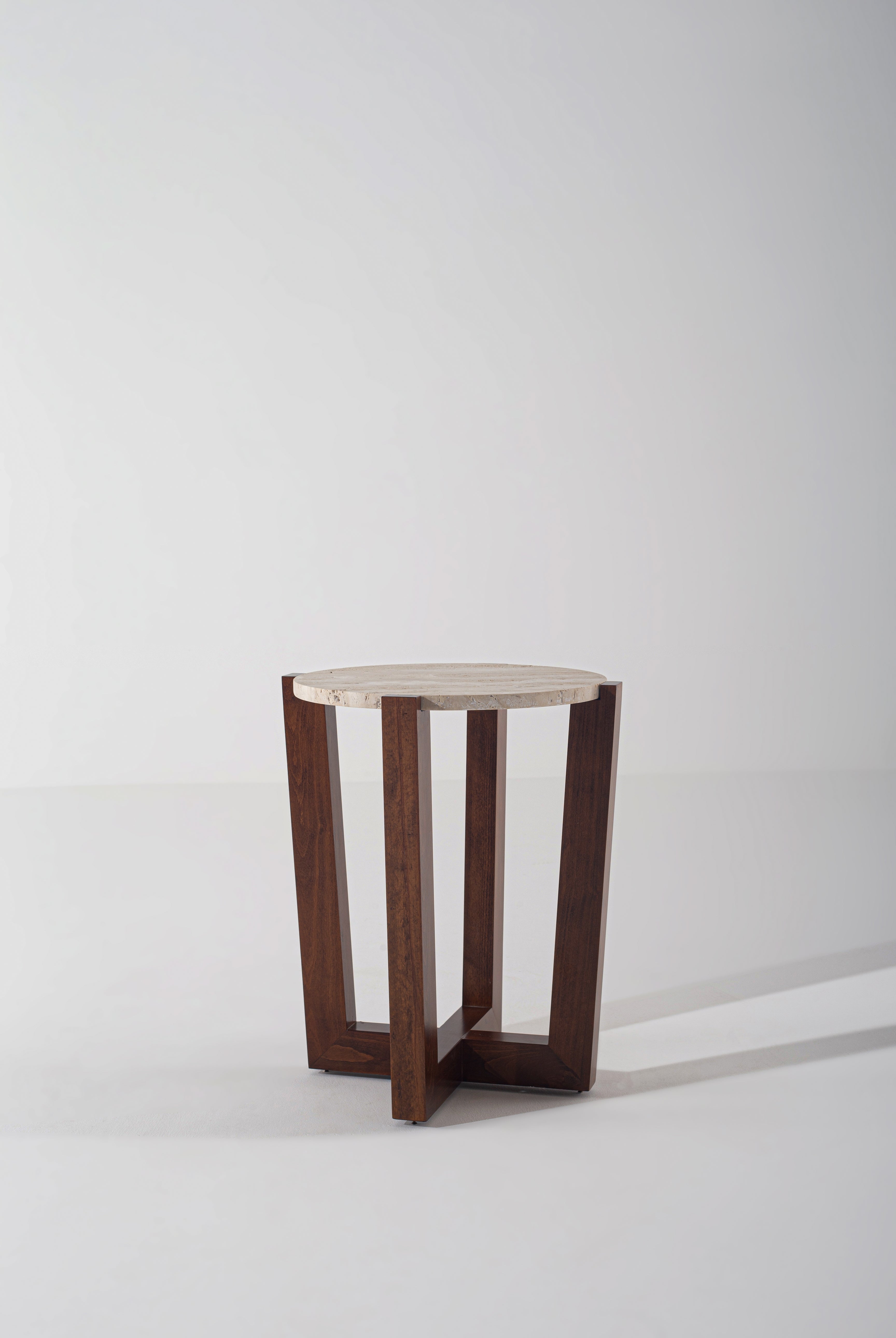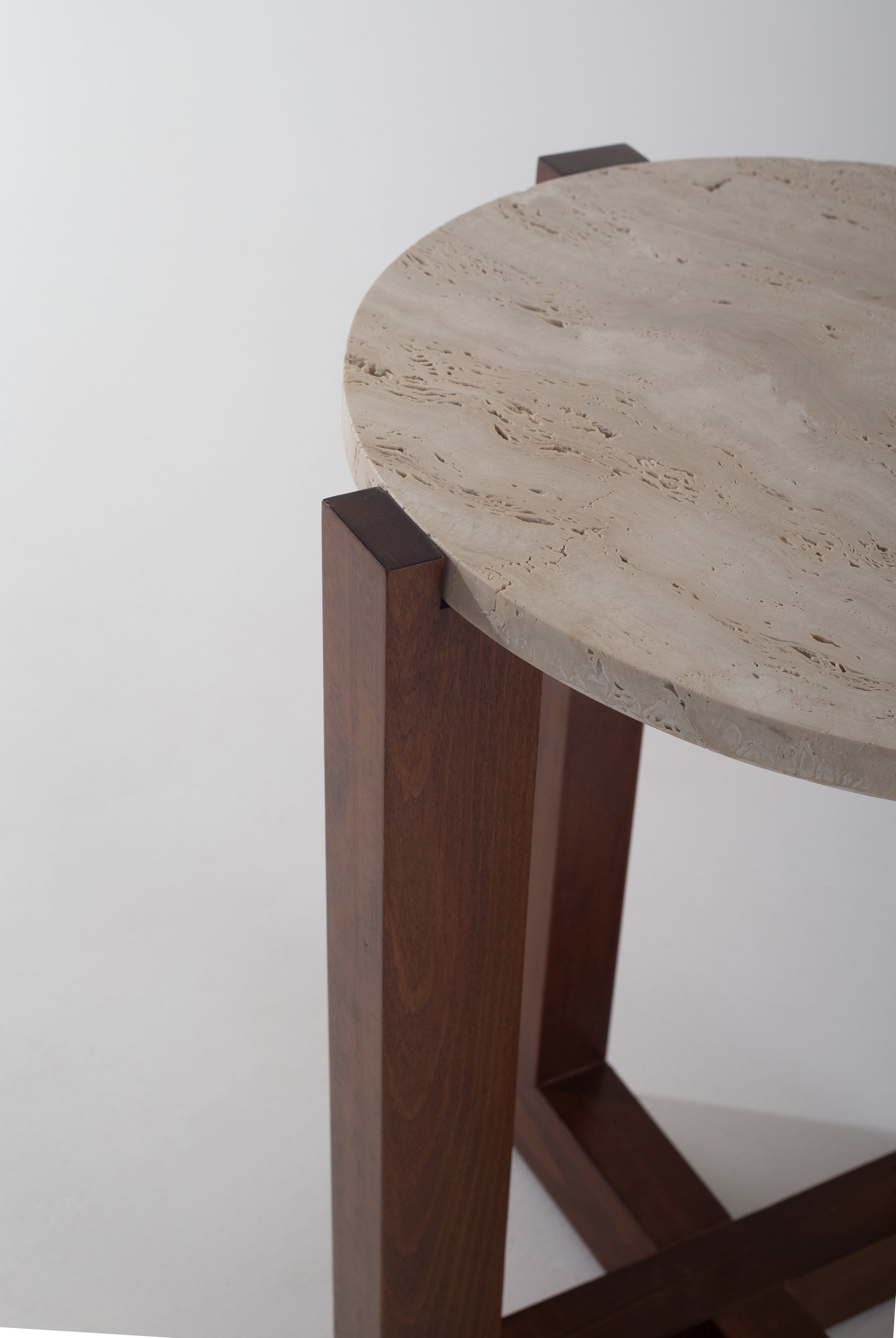 Nora Side Tables with Black Wooden Base: Elegant tables featuring a variety of exquisite marble and travertine tops.