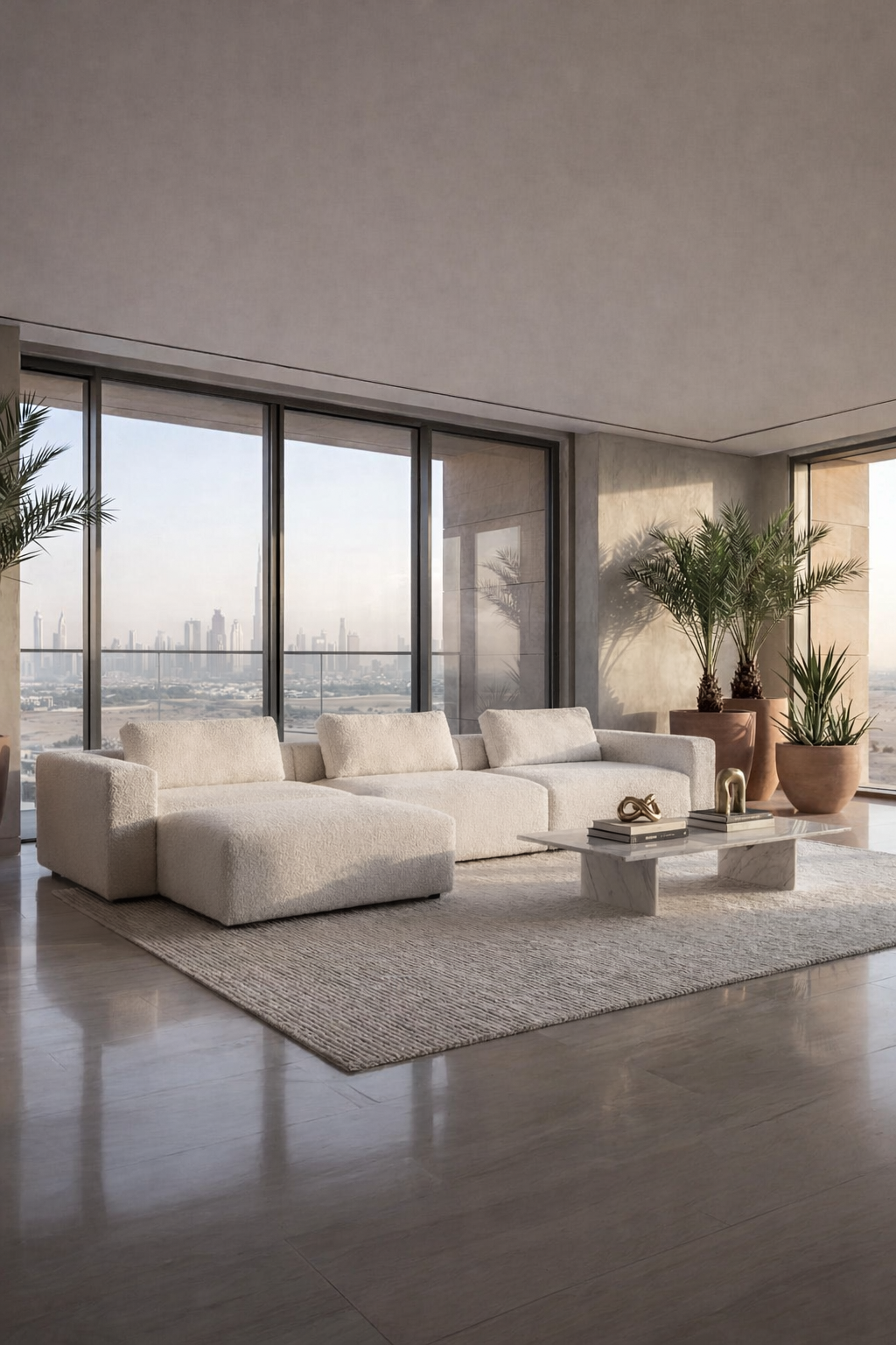 A refined statement of modern comfort, this off white bouclé modular sofa brings soft texture and sculptural simplicity to your living space. Designed with two generous seating modules and a matching ottoman for relaxed lounging, it creates a calm, elevated look that suits both minimalist and warm contemporary interiors. The plush bouclé upholstery adds depth and coziness, while the clean, structured silhouette keeps the space feeling airy and curated. Perfect for styling with neutral palettes, natural wood accents, and layered textiles, it becomes the foundation of a beautifully composed home.