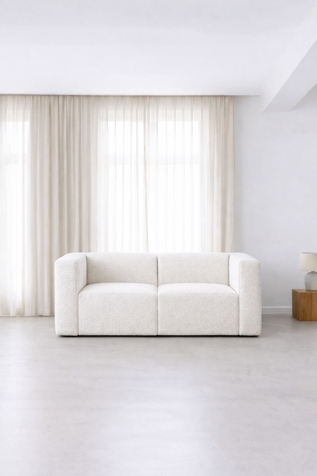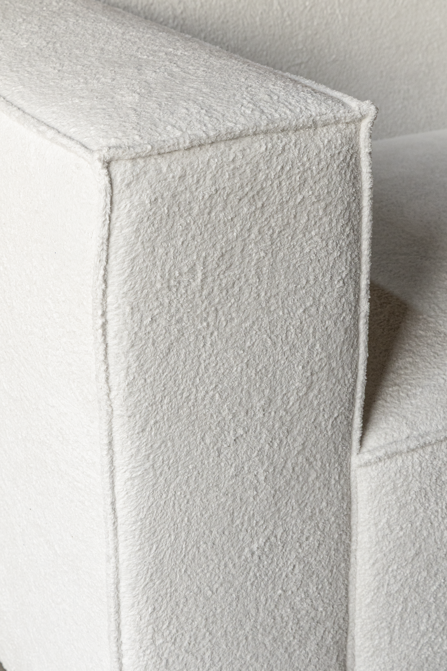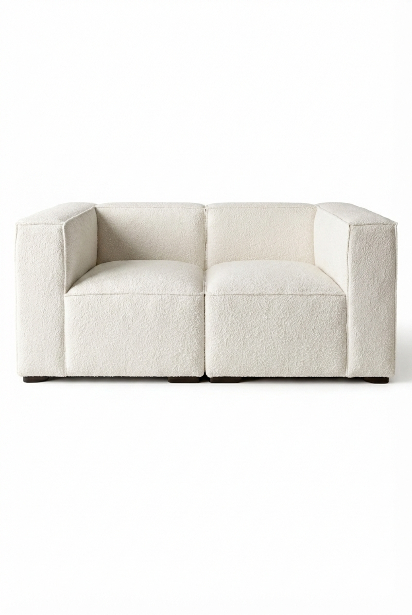 Create a calm, elevated living space with this off white boucle modular sofa designed for a clean, sculptural look and effortless comfort. The low profile silhouette feels modern and grounded, while the boucle upholstery adds soft texture and a cozy, airy finish that brightens any room. Perfect for intimate lounging and refined hosting, it blends beautifully with neutral palettes, natural wood accents, and contemporary interiors for a timeless, light filled atmosphere.
