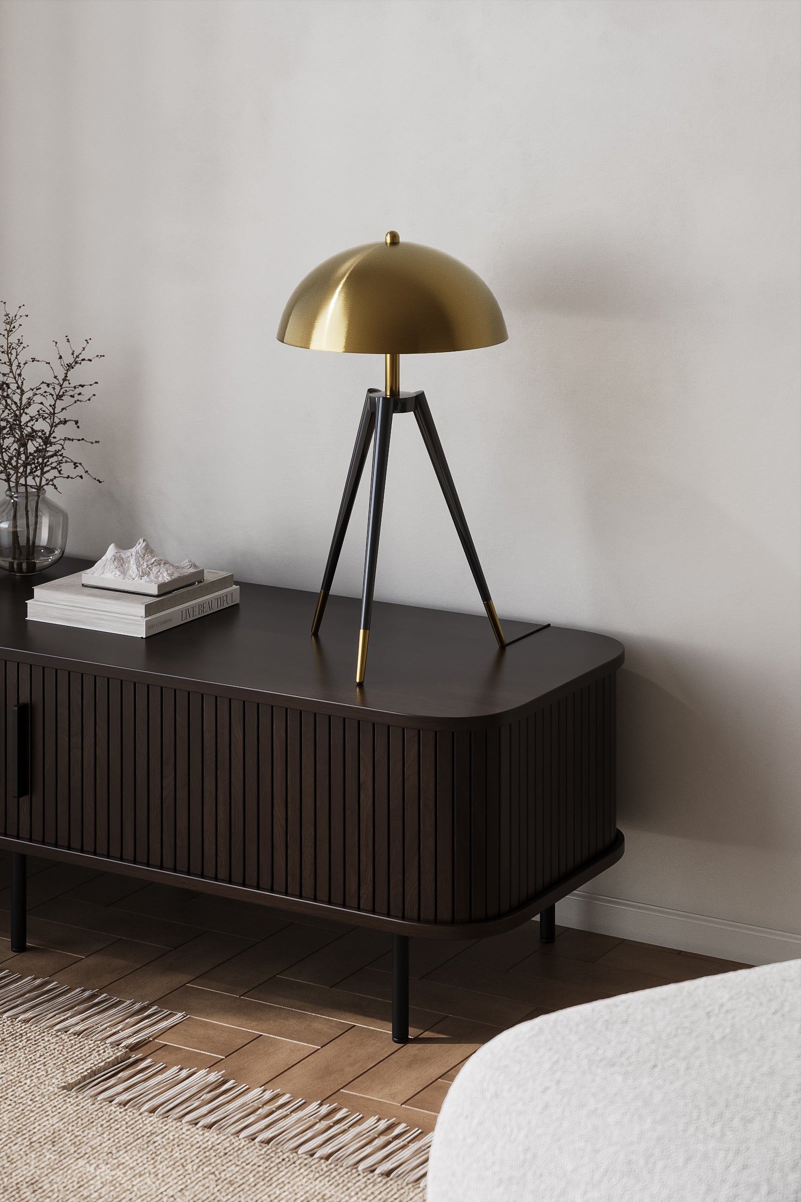 Light up your space with our exquisite Black & Gold Mushroom Tripod Table Lamp. Featuring a stunning gold metallic lampshade in a unique mushroom shape, paired with sleek black and gold tripod legs, this lamp adds a touch of luxury to any room.