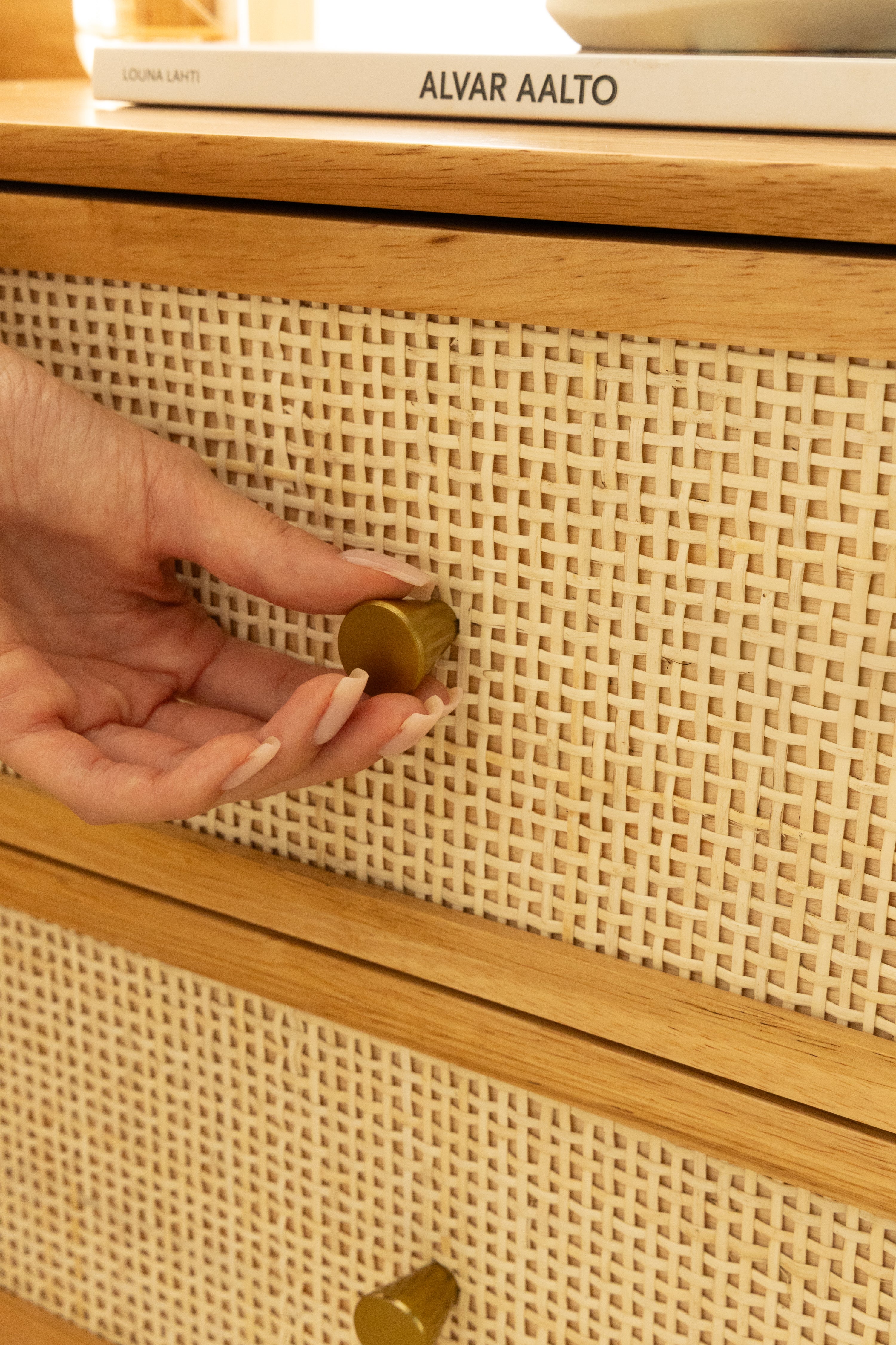 -Drawer: Natural Rattan & MDF Veneer