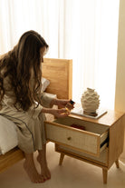 Rin Rattan Light Wood Bedside Table