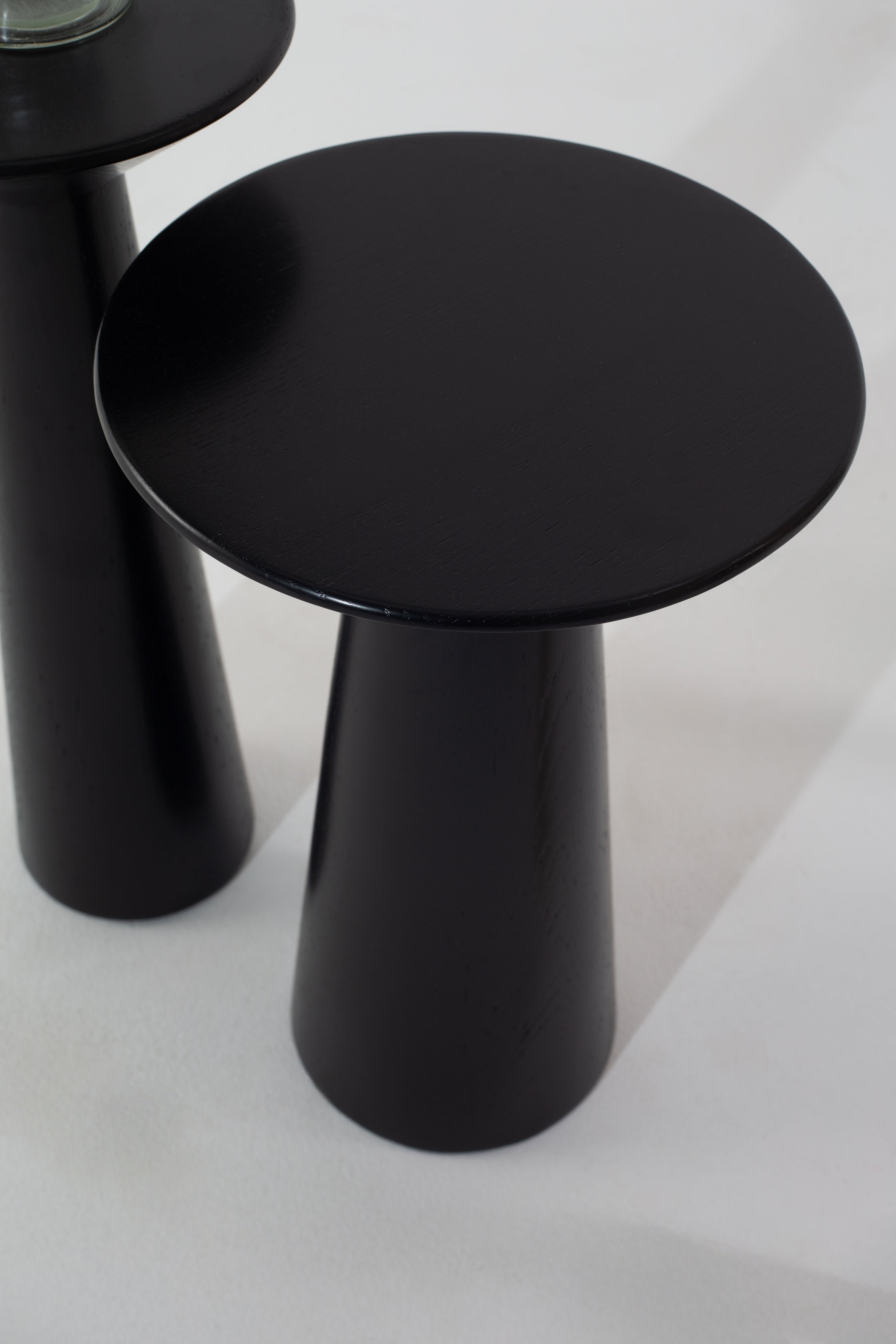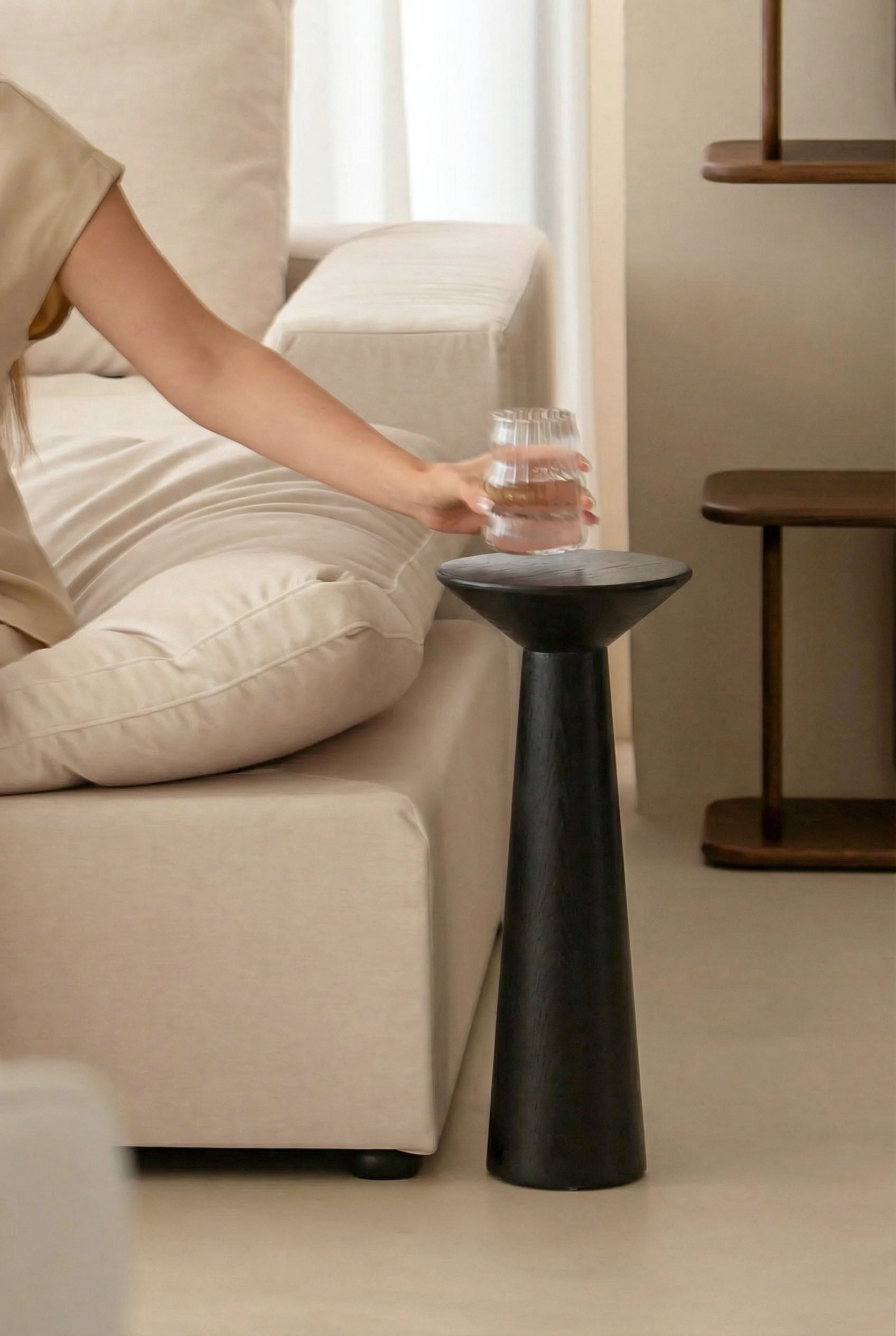 Bring dramatic sophistication to your home with deep black wood crafted into a striking sculptural silhouette. The smooth texture highlights the natural grain of Oak beneath the dark finish, while the cone-shaped base and circular top add balance and elegance. Its bold tone complements modern, industrial, or minimalist interiors, making it a versatile statement piece you’ll love.
