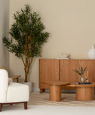 Your space deserves the warmth and elegance of solid wood. With seamless panel doors and rounded edges, this wooden sideboard offers a sleek, modern touch while keeping your essentials neatly stored. The natural grain adds organic beauty, blending effortlessly with your décor. Sturdy cylindrical legs elevate the design, making it a stylish yet functional addition to your dining or living area. Whether storing dinnerware or displaying décor, this sideboard brings timeless charm to your home.