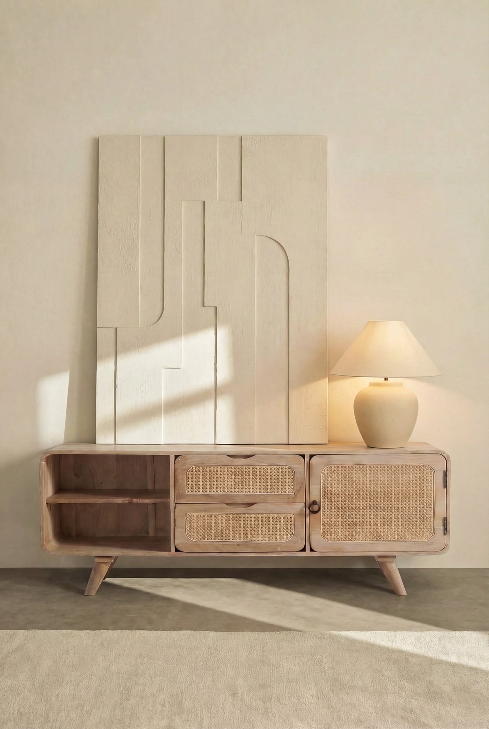 Transform your living space with our TV units designed for both style and practicality. Explore a refined selection of entertainment units, TV stands, and media consoles, crafted to enhance your home’s aesthetic while offering smart storage solutions. From sleek modern designs to timeless wooden finishes, our TV cabinets provide the perfect foundation for your screen and décor. Whether you're looking for floating TV stands, low-profile consoles, or spacious storage units, find the ideal media unit to keep your space organized and stylish. Shop now for expertly crafted pieces built for everyday living.
