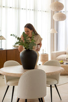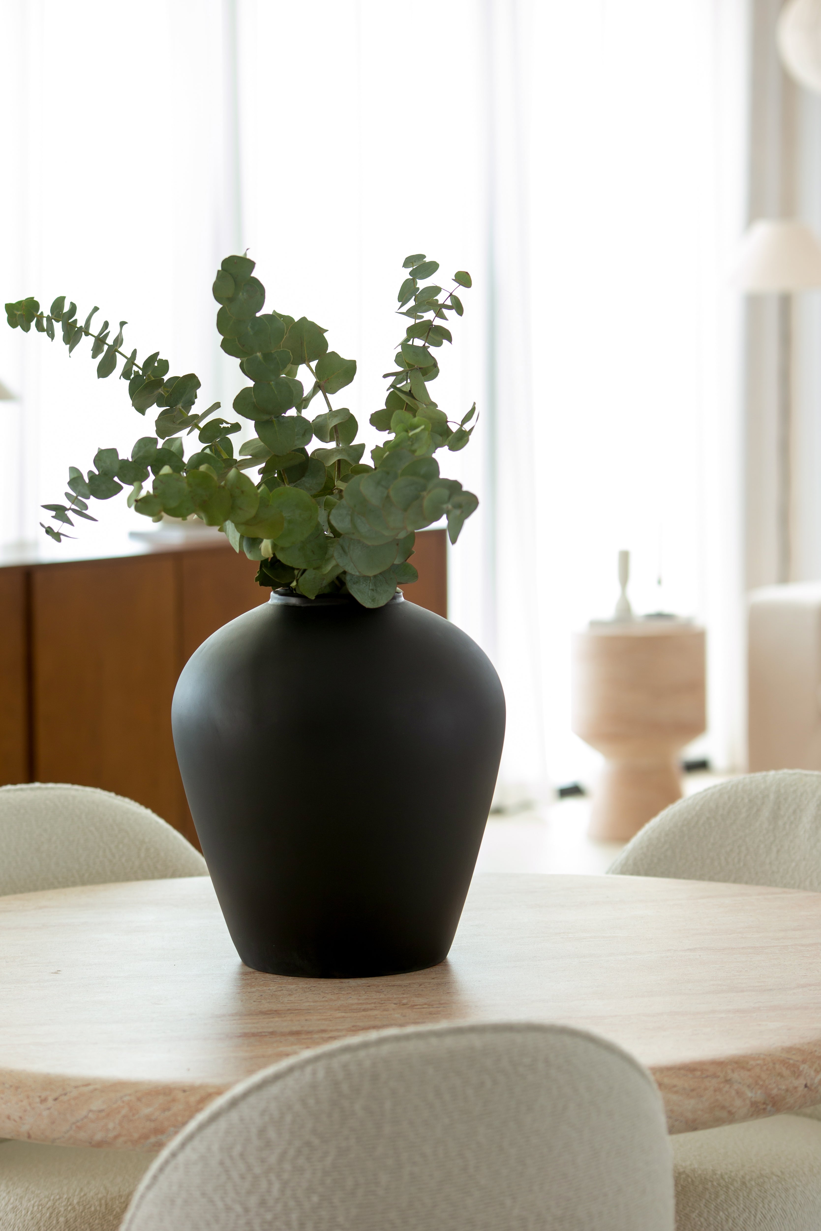 The Alana Black Concrete Vase is a striking addition to any modern decor, boasting a graceful rounded silhouette with a bold matte black finish. Made from durable Glass Reinforced Concrete (GRC), this vase combines contemporary elegance with exceptional sturdiness. Its smooth texture and minimalist design make it a versatile piece, perfect for elevating sideboards, consoles, or shelves. Whether styled as a standalone statement or filled with greenery, the Alana vase brings a touch of sophistication and modern artistry to your living space.