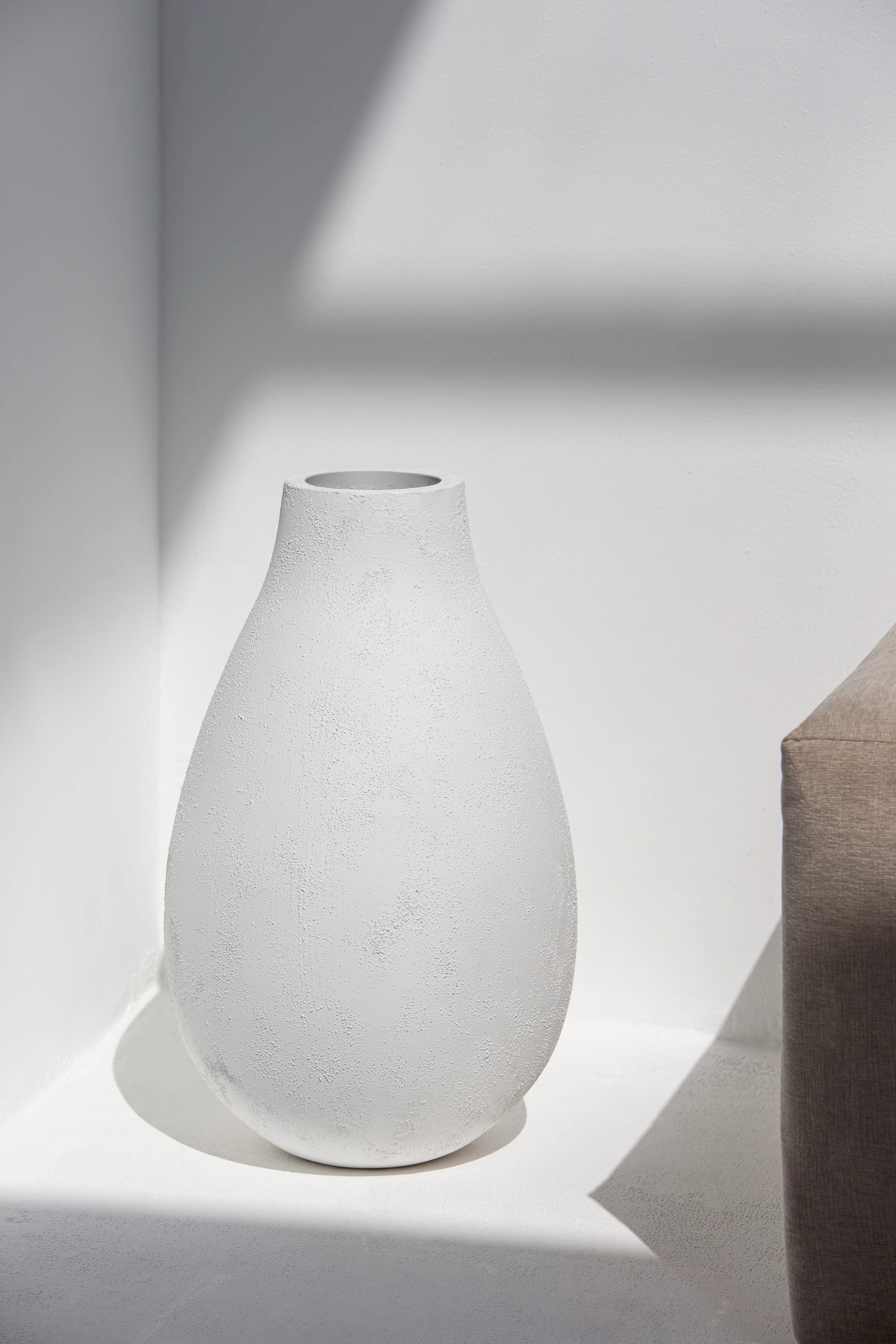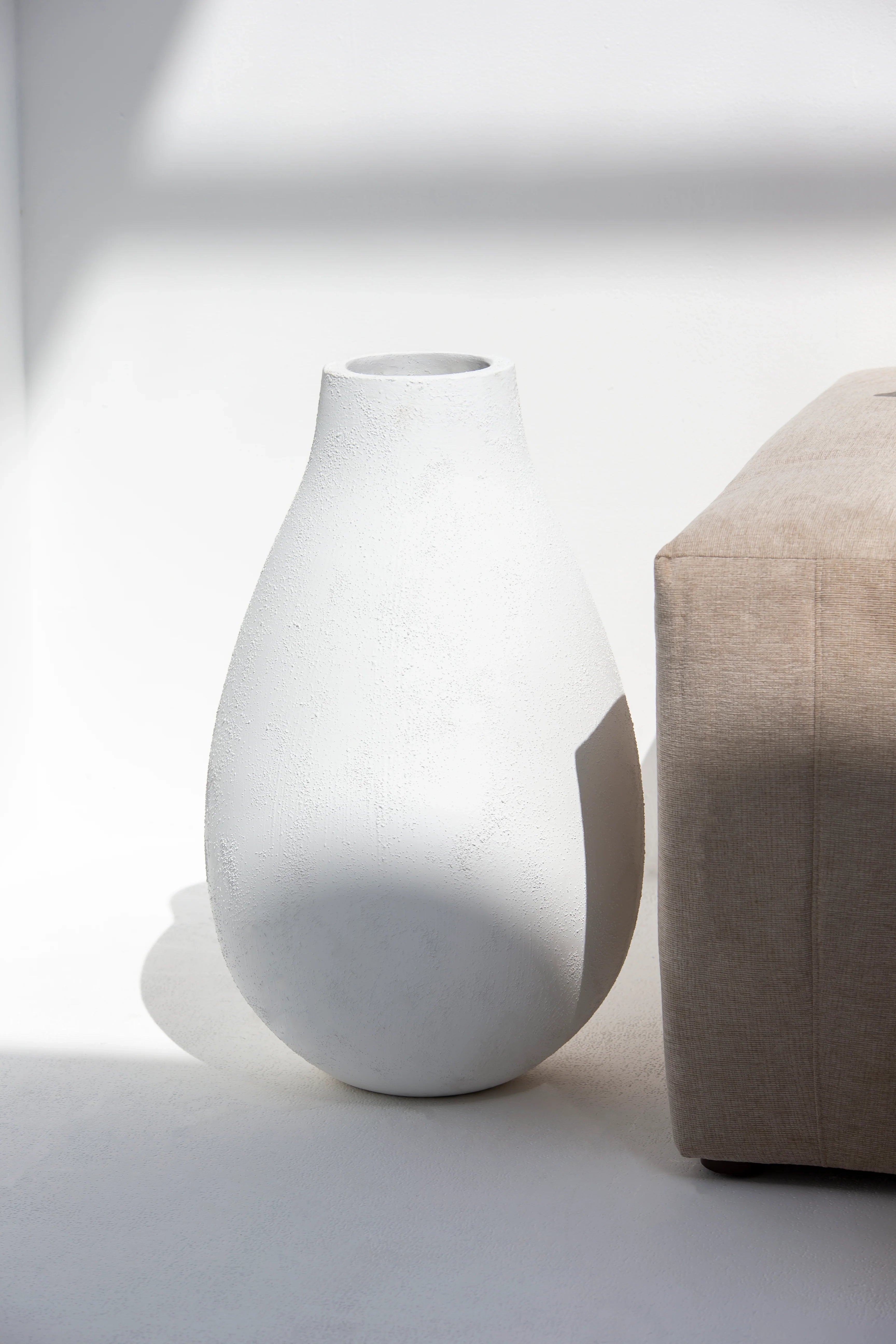 The Tessa White Concrete Vase, crafted from high-quality GRC, boasts a smooth, rounded silhouette that exudes elegance and simplicity. Its pristine white matte finish highlights a textured surface that blends seamlessly with both minimalist and modern interior styles. Designed as a versatile décor piece, this durable vase serves as a stunning standalone feature or as a complement to lush greenery, enhancing any living space with sophistication. Perfect for adding depth and style to your home or office.