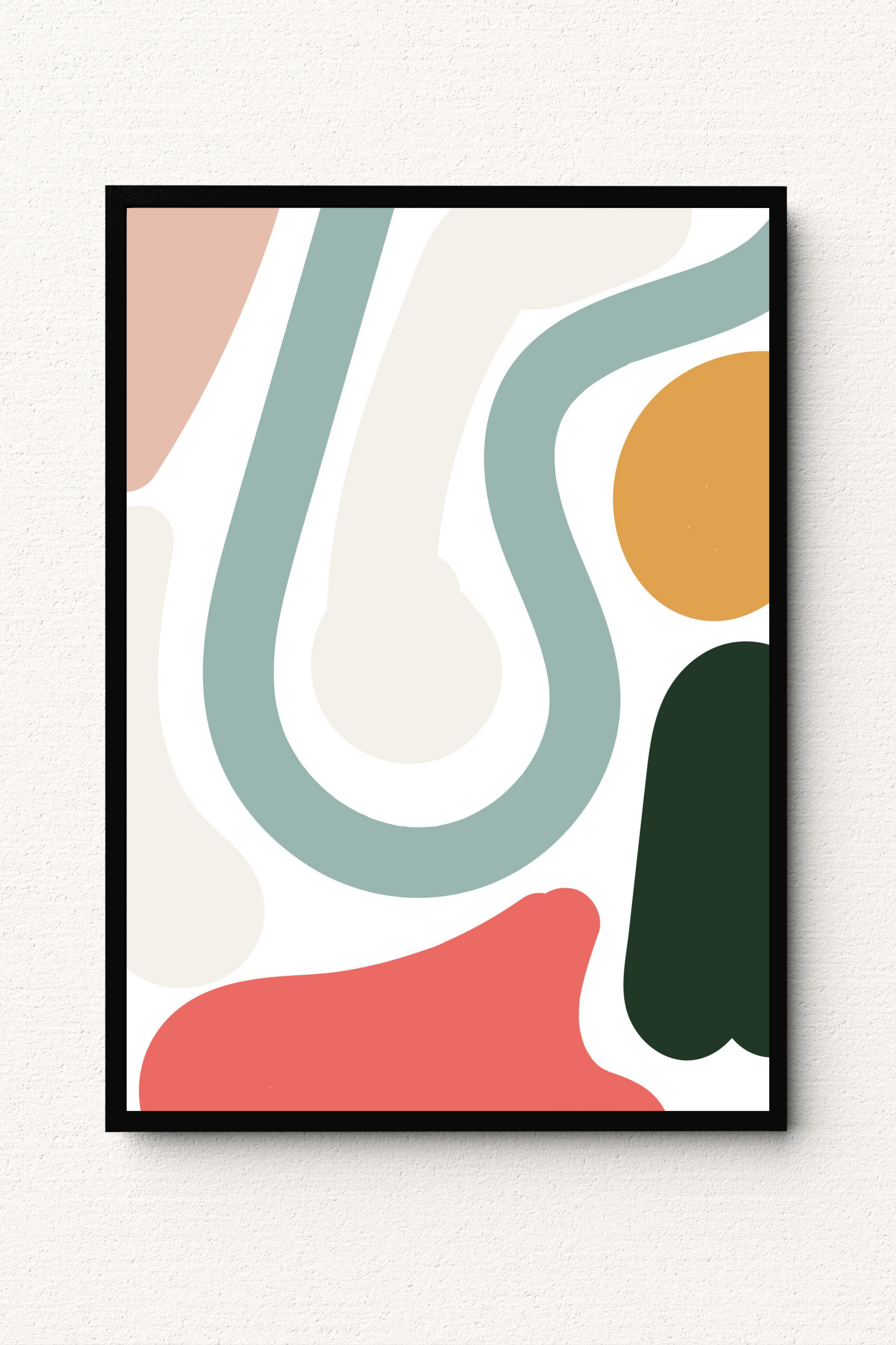 This sleek abstract artwork brings a sense of smooth movement through its soft curves and cool refreshing palette. Gentle shapes flow organically across the canvas, creating a balanced and calming rhythm. Warm accents add contrast without overpowering the piece, making it an ideal choice for modern interiors that blend subtle energy with relaxed elegance. Perfect for brightening living rooms, offices, or creative spaces with a fresh contemporary touch.