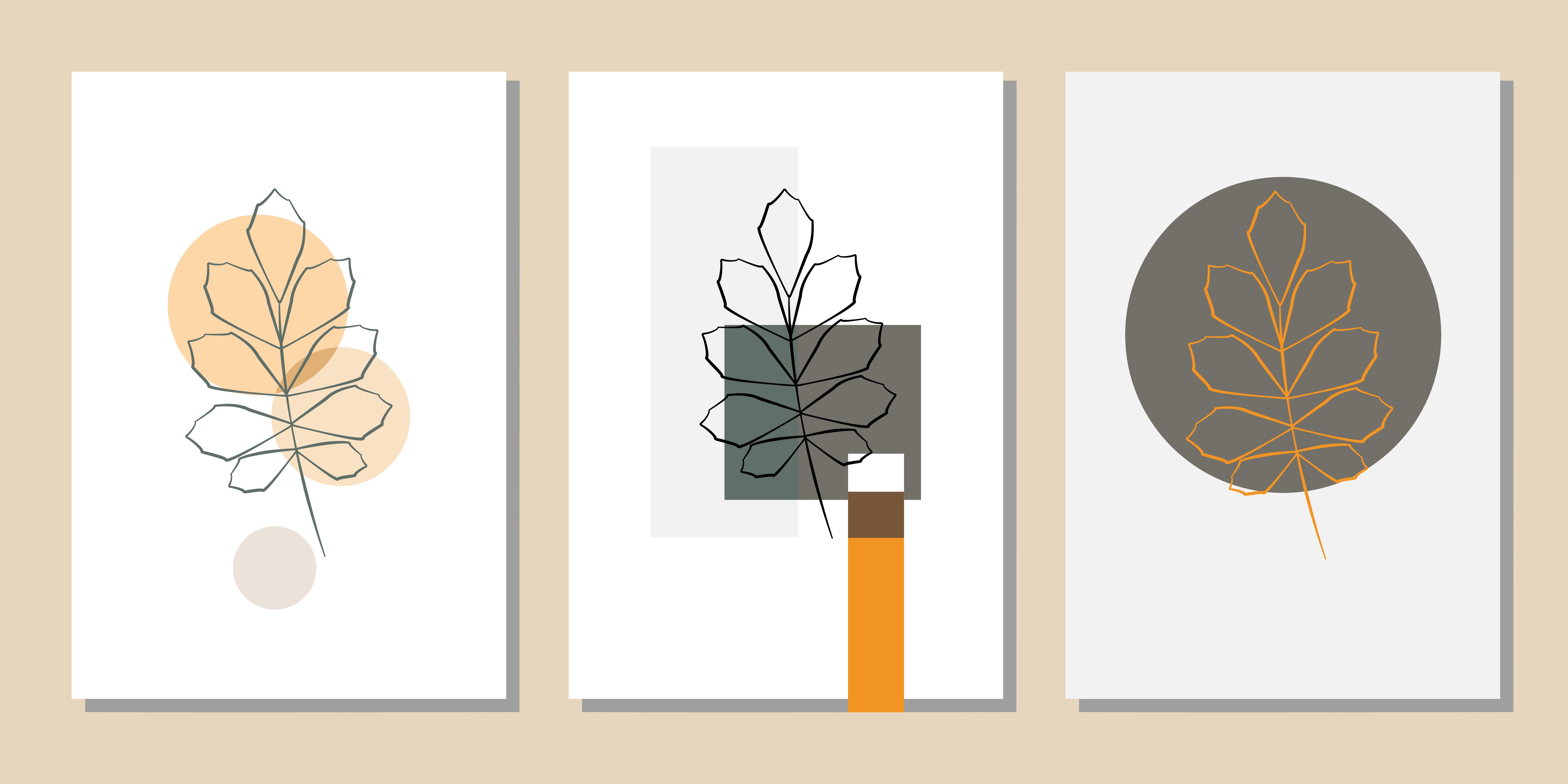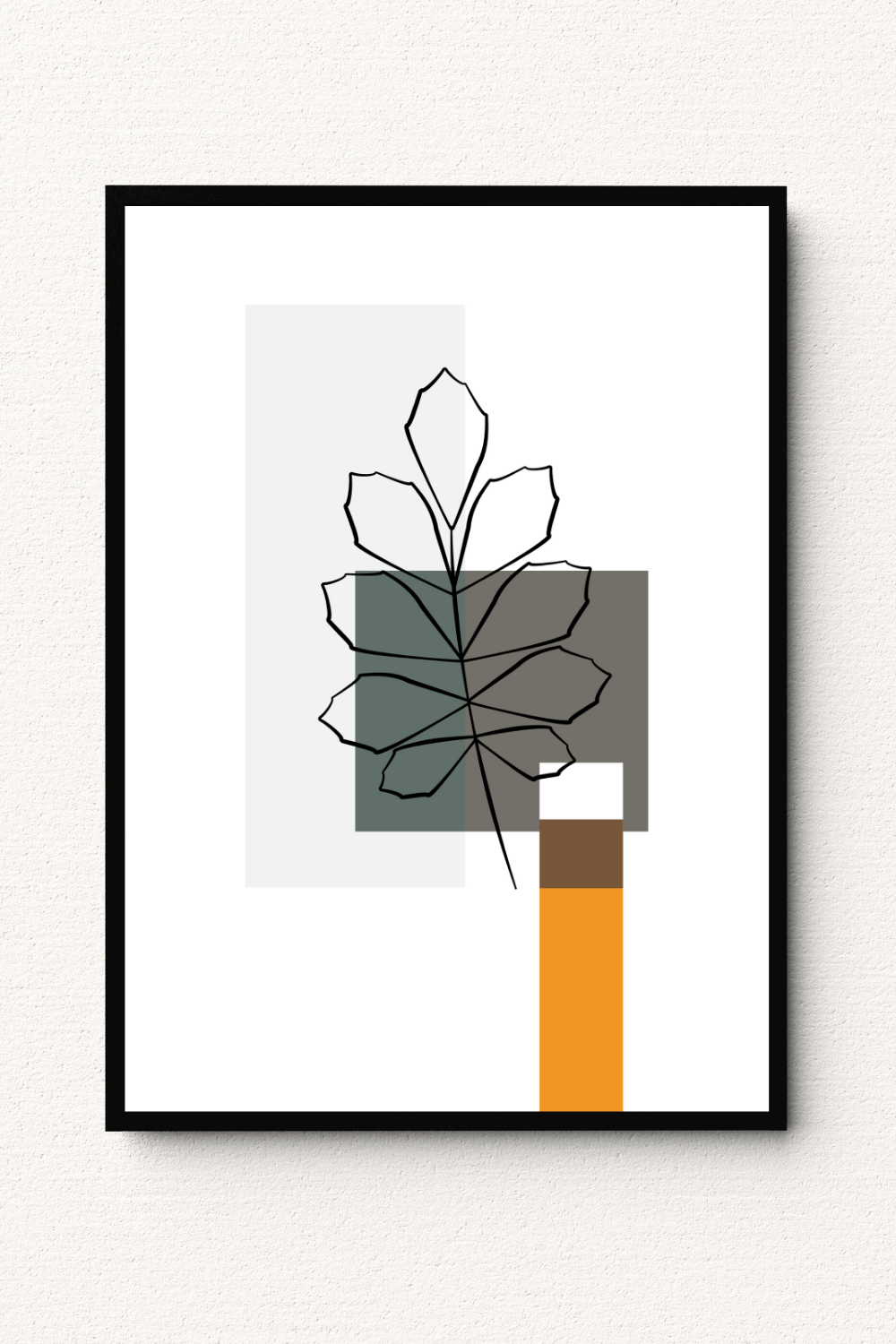 Featuring a bold botanical line illustration layered over geometric blocks in olive green, warm brown, and rich amber tones, this wall art brings modern autumn warmth to your space. The balanced composition and earthy palette allow you to style your interior with depth, contrast, and refined contemporary elegance inspired by nature.