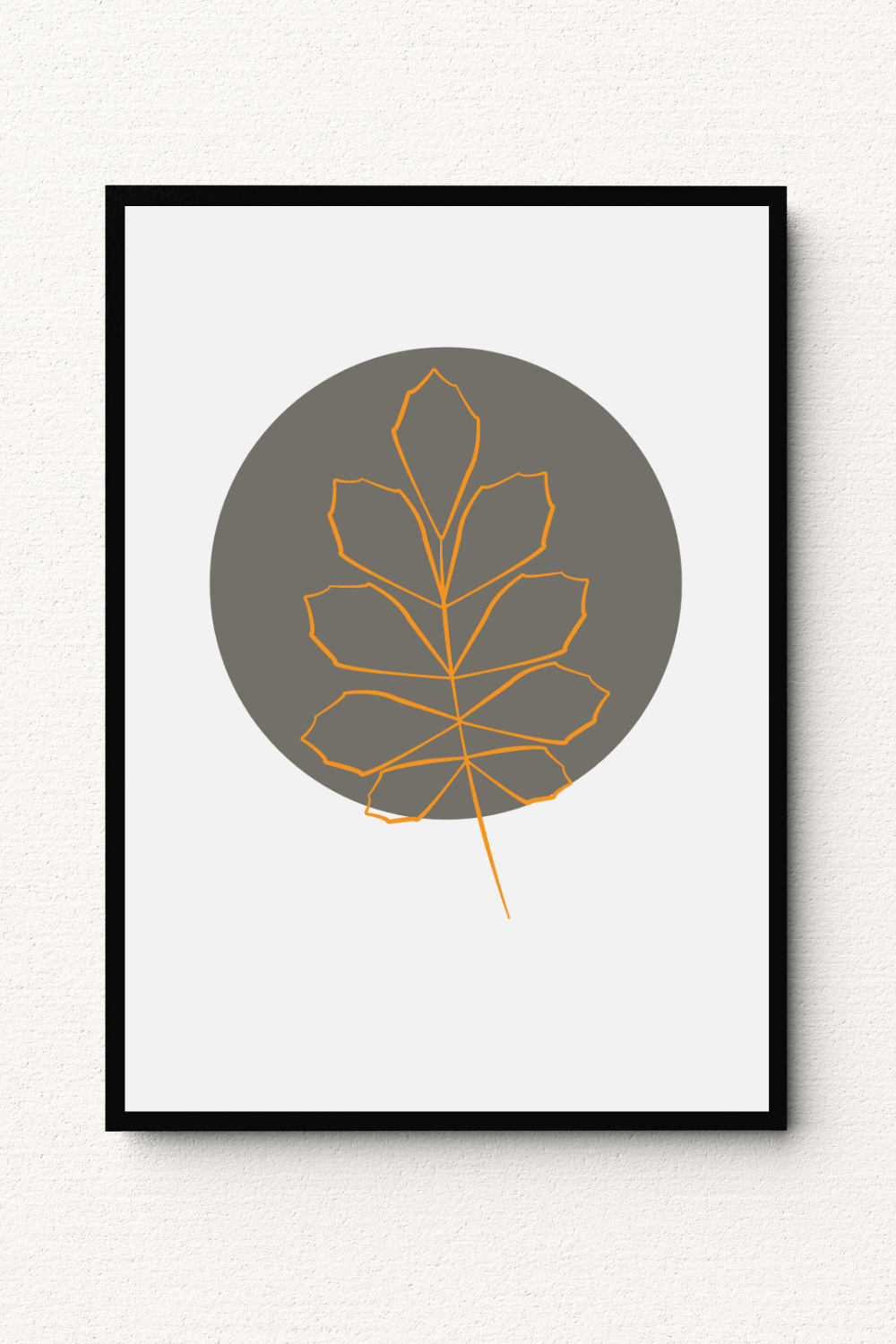 Featuring a bold burnt orange botanical line illustration set against a deep earthy circular backdrop, this wall art brings warmth and modern contrast to your space. The minimalist composition and rich autumn tones allow you to style your interior with depth, organic character, and refined contemporary elegance inspired by nature.