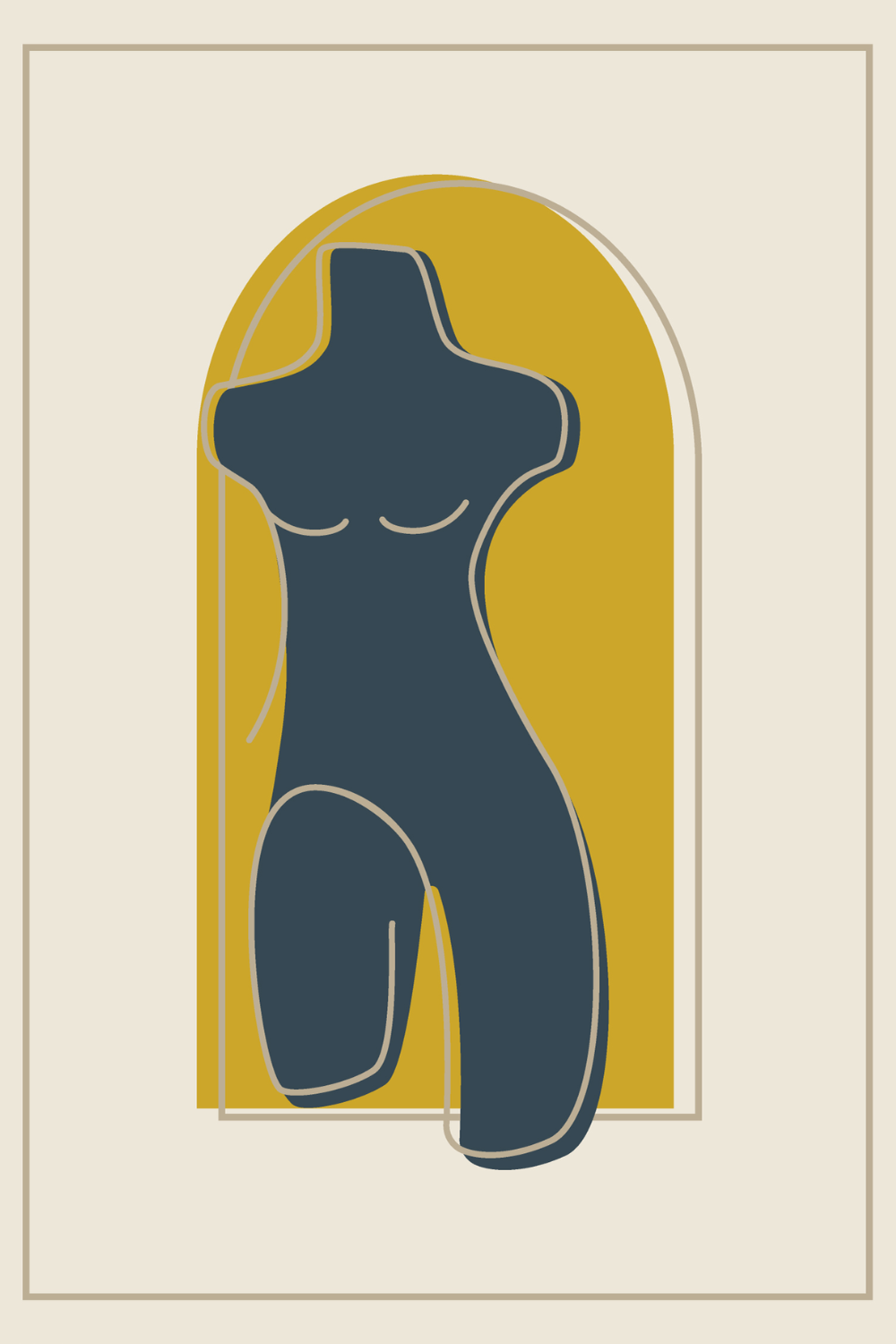 A bold indigo feminine silhouette stands gracefully within a rich mustard arch, creating a striking contrast of warmth and depth. Soft contour lines highlight fluid curves while the structured frame adds modern balance and refinement. You introduce confident elegance and artistic presence into your space with this contemporary statement piece.