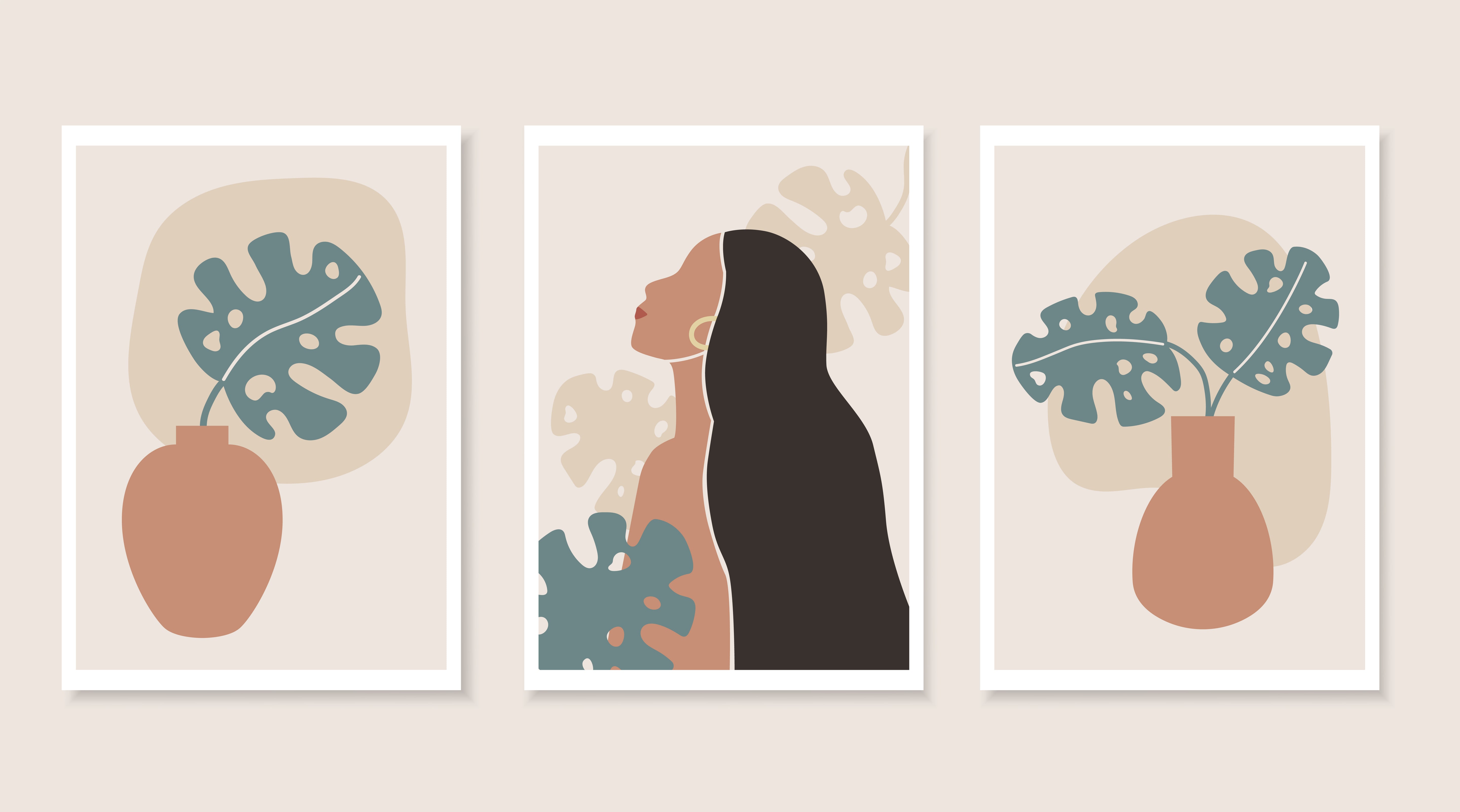 A sculptural terracotta vase anchors a soft neutral backdrop, holding a bold sage leaf with organic cutouts and a delicate ivory vein. The muted palette of clay, sand, and green creates a harmonious, modern botanical statement. You bring warmth and effortless elegance into your space with this refined minimalist composition.