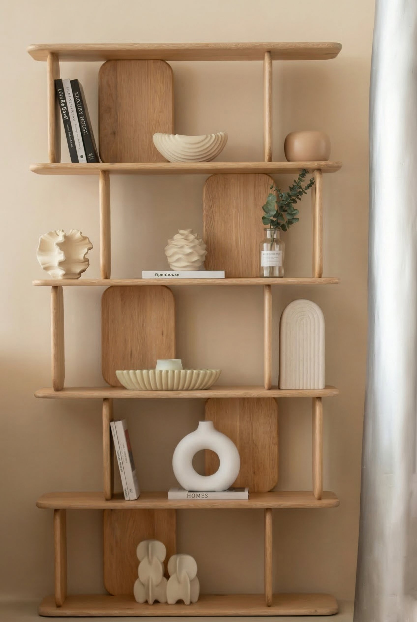 Create an atmosphere of pure calm with pale ash tones and sculpted elegance. The light wood finish reflects soft daylight, enhancing every ceramic piece, art book, or minimalist ornament you choose to place. Each shelf offers gentle contrast against your décor, allowing your styling to take center stage. Refined yet airy, it transforms your room into a gallery of curated intention and quiet luxury.